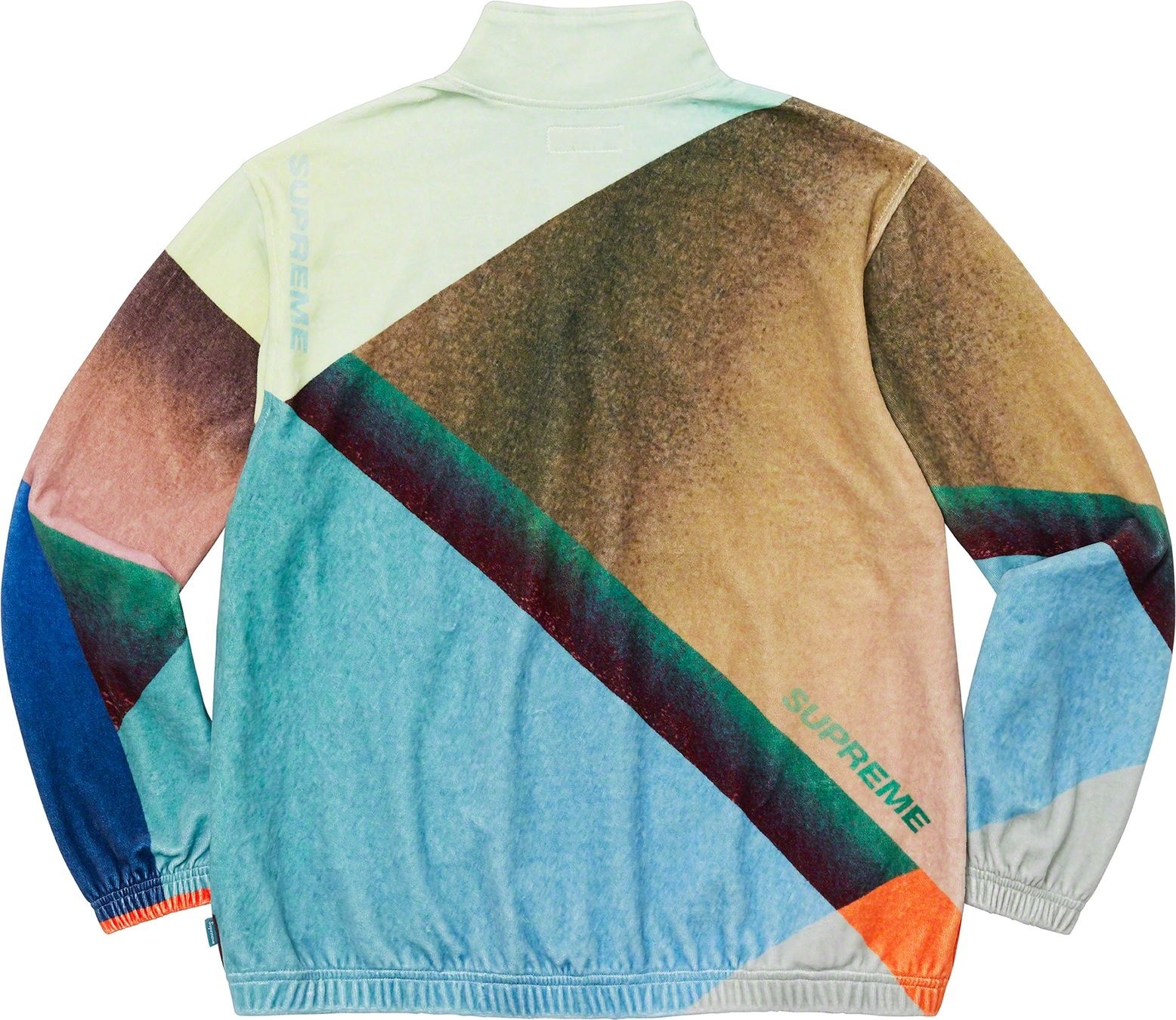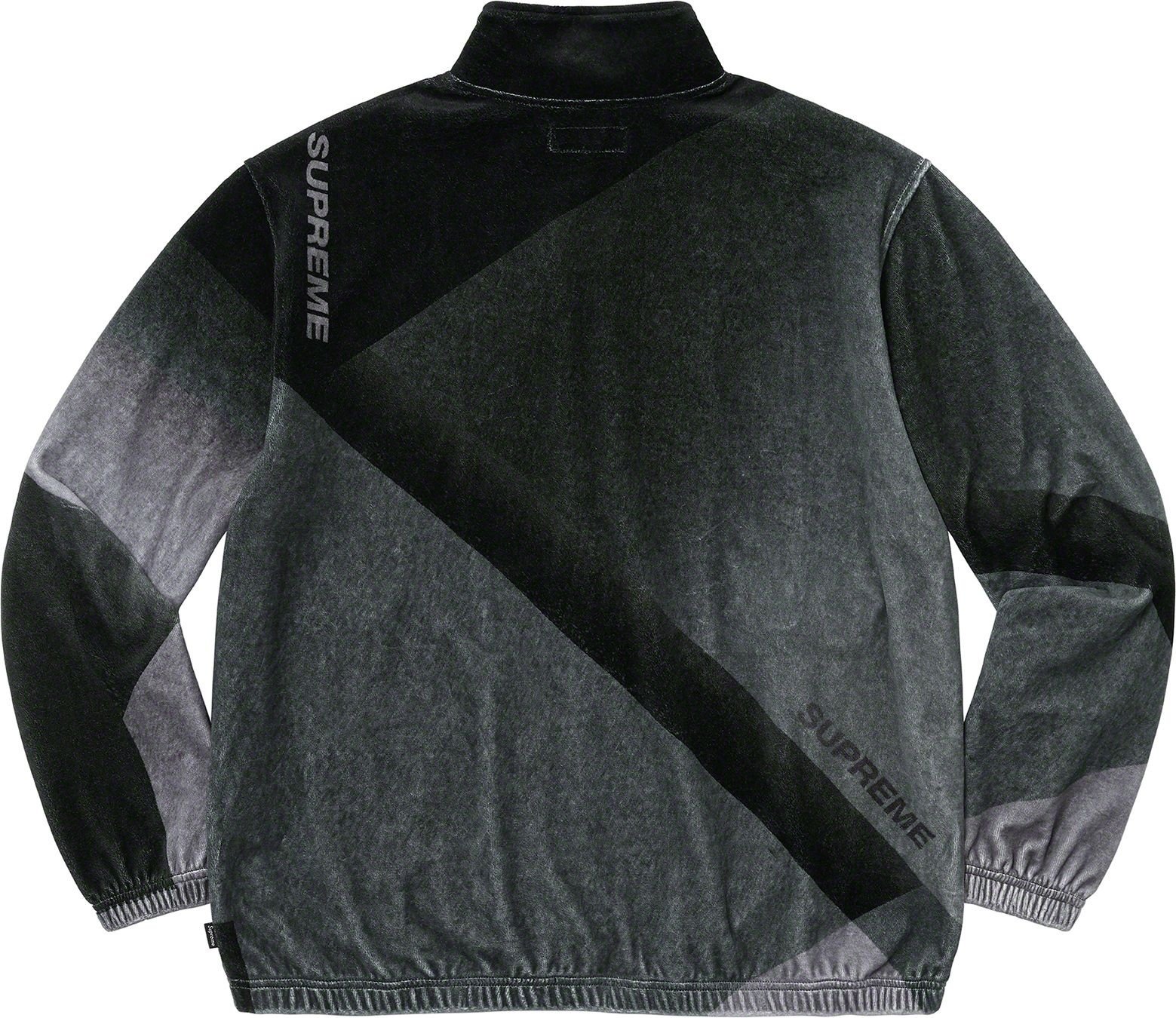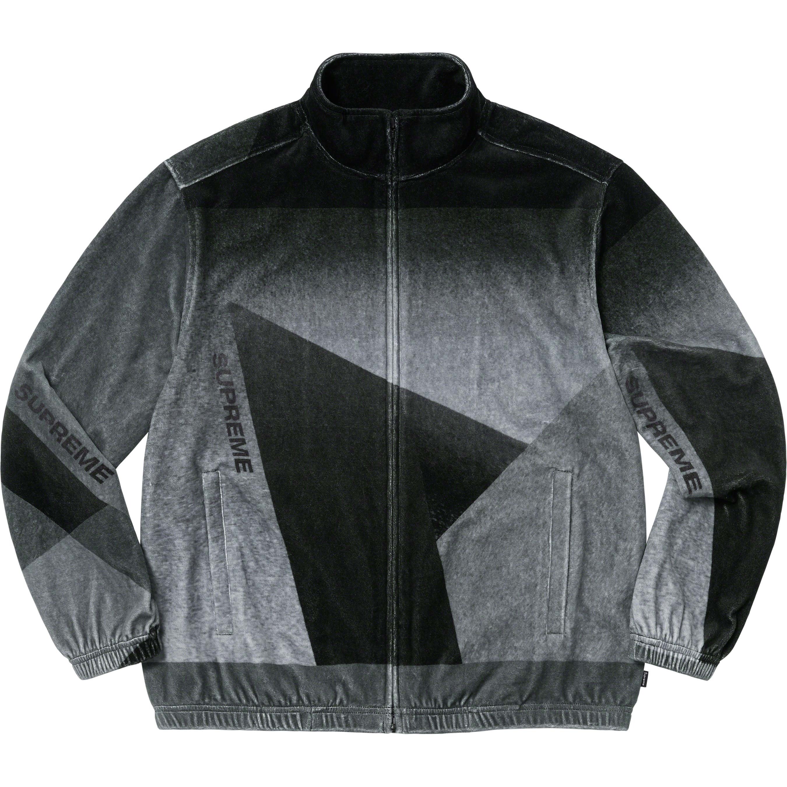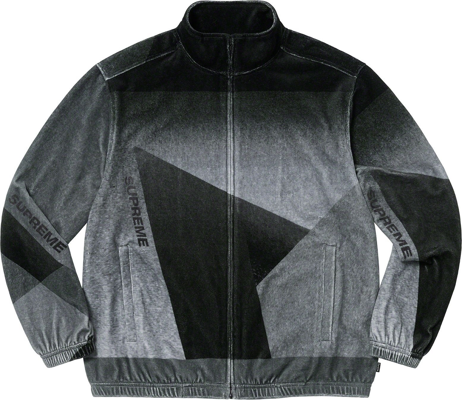 Cotton blend velour with full zip closure. Welt zip hand pockets at lower front. Elastic cuffs and hem. Printed logos at front and back.