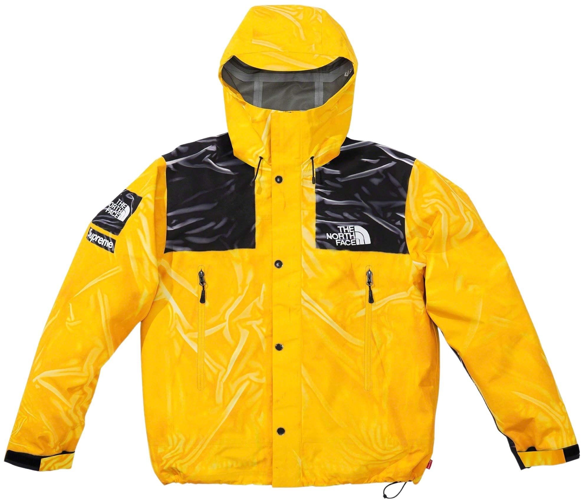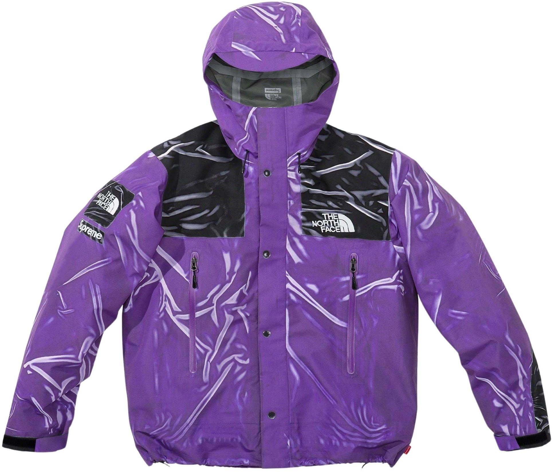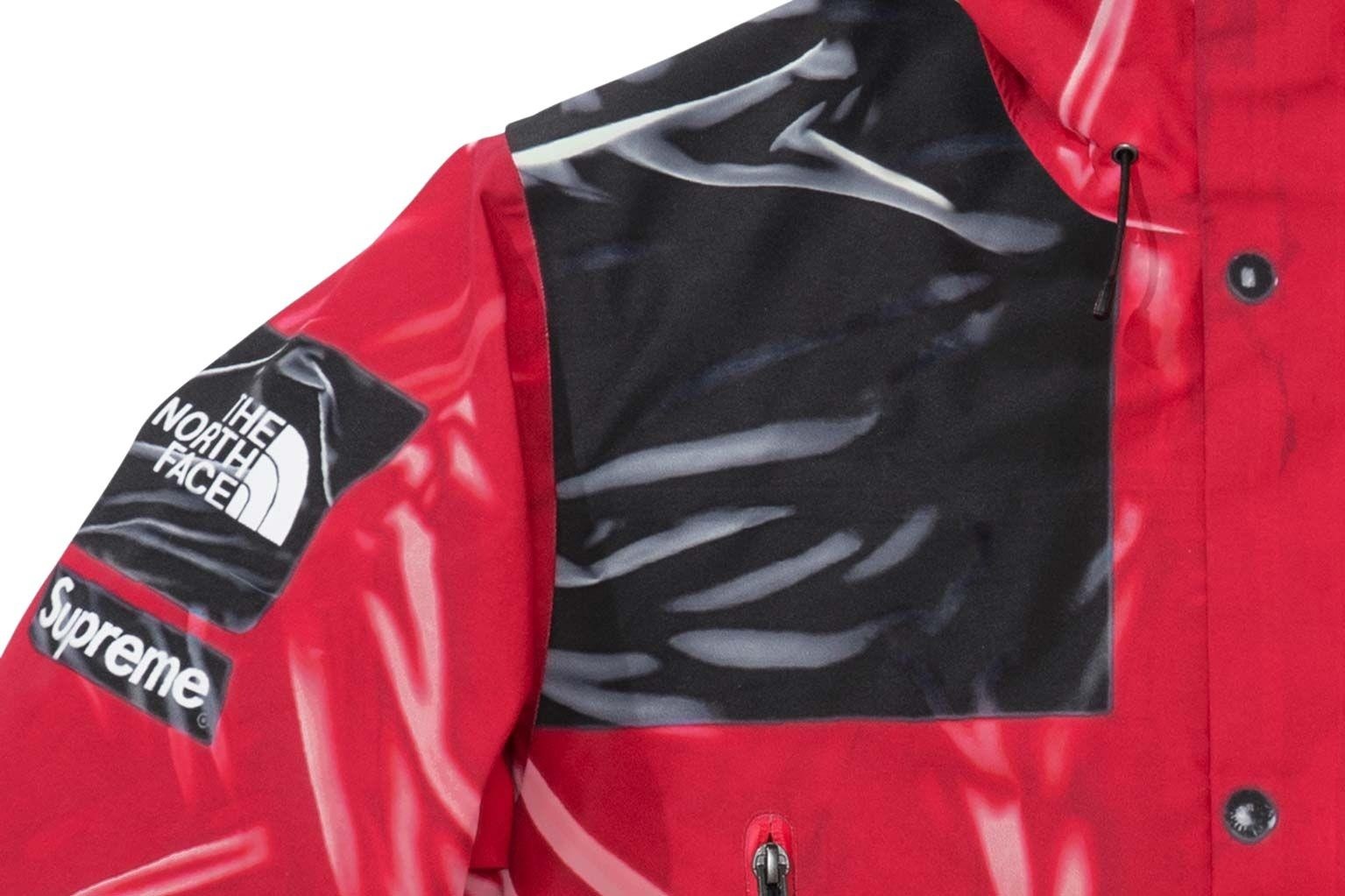 Water resistant recycled poly shell with trompe l’oeil printed graphic, taped seams and printed logo tricot backing. Full zip closure with velcro placket and Aquaguard zip Alpine pockets. Interior elastic shockcords at fixed hood and hem with velcro closures at cuffs. Printed logos on chest, back shoulder and sleeve. Made exclusively for Supreme.