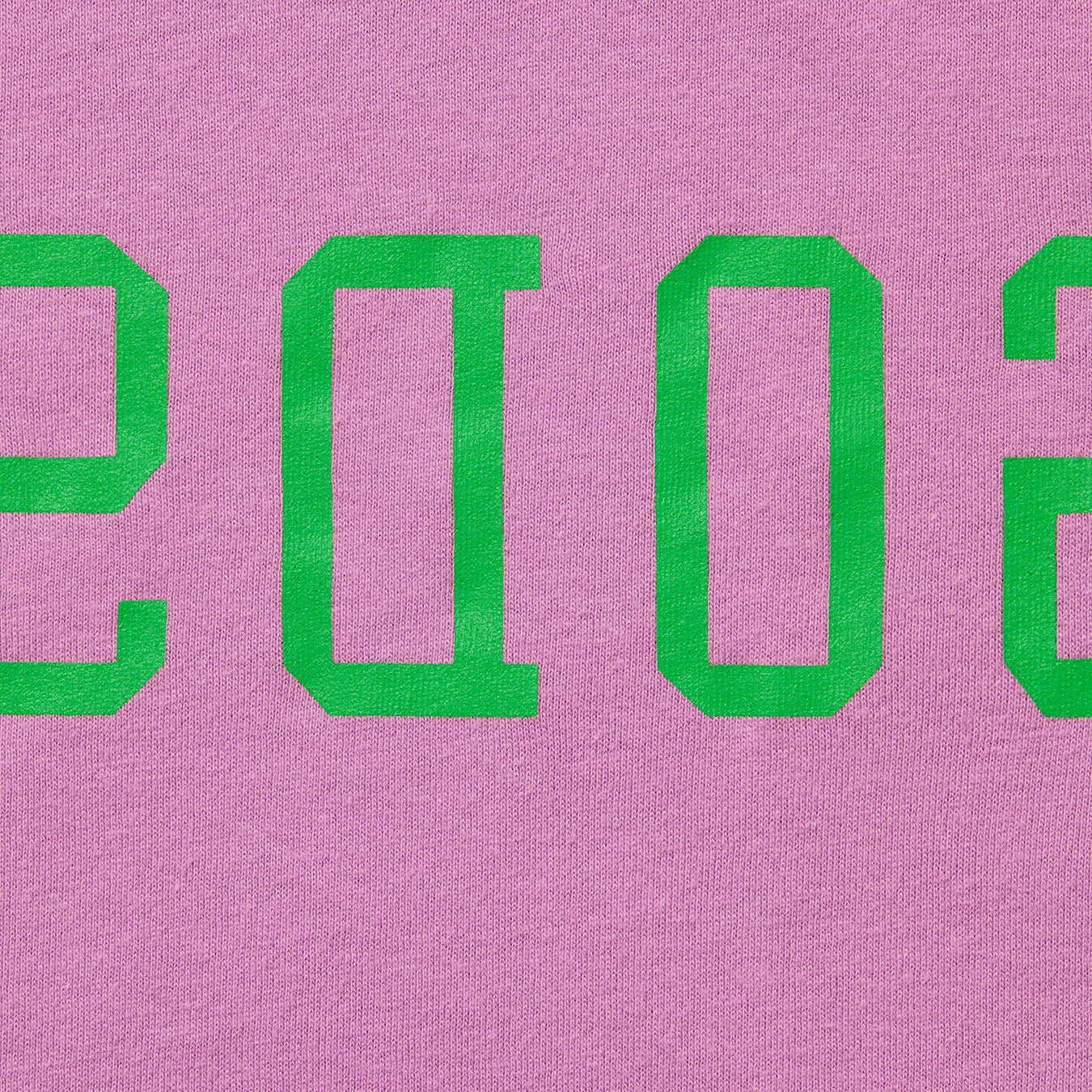 Cotton blend jersey crewneck with printed graphic and logos on chest.