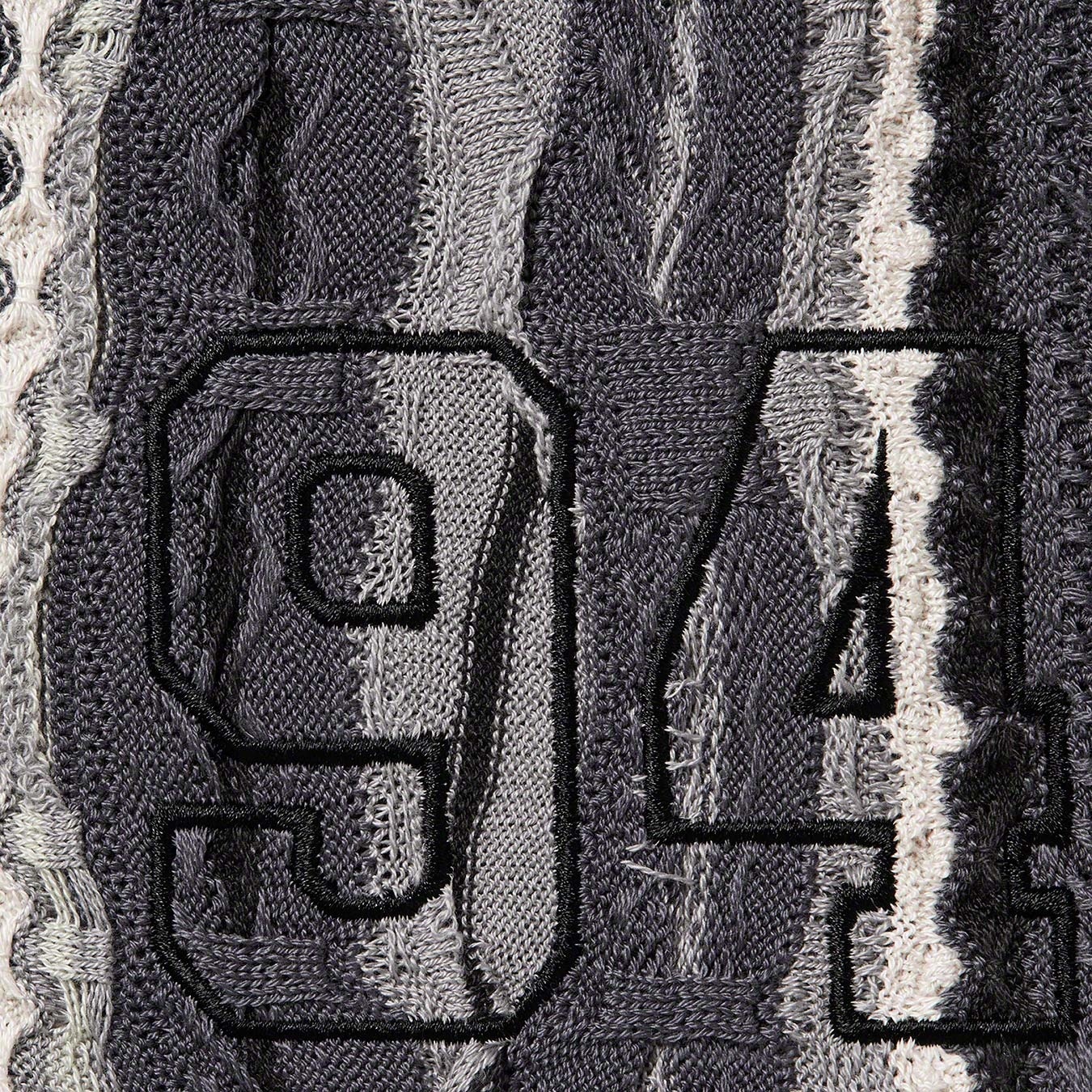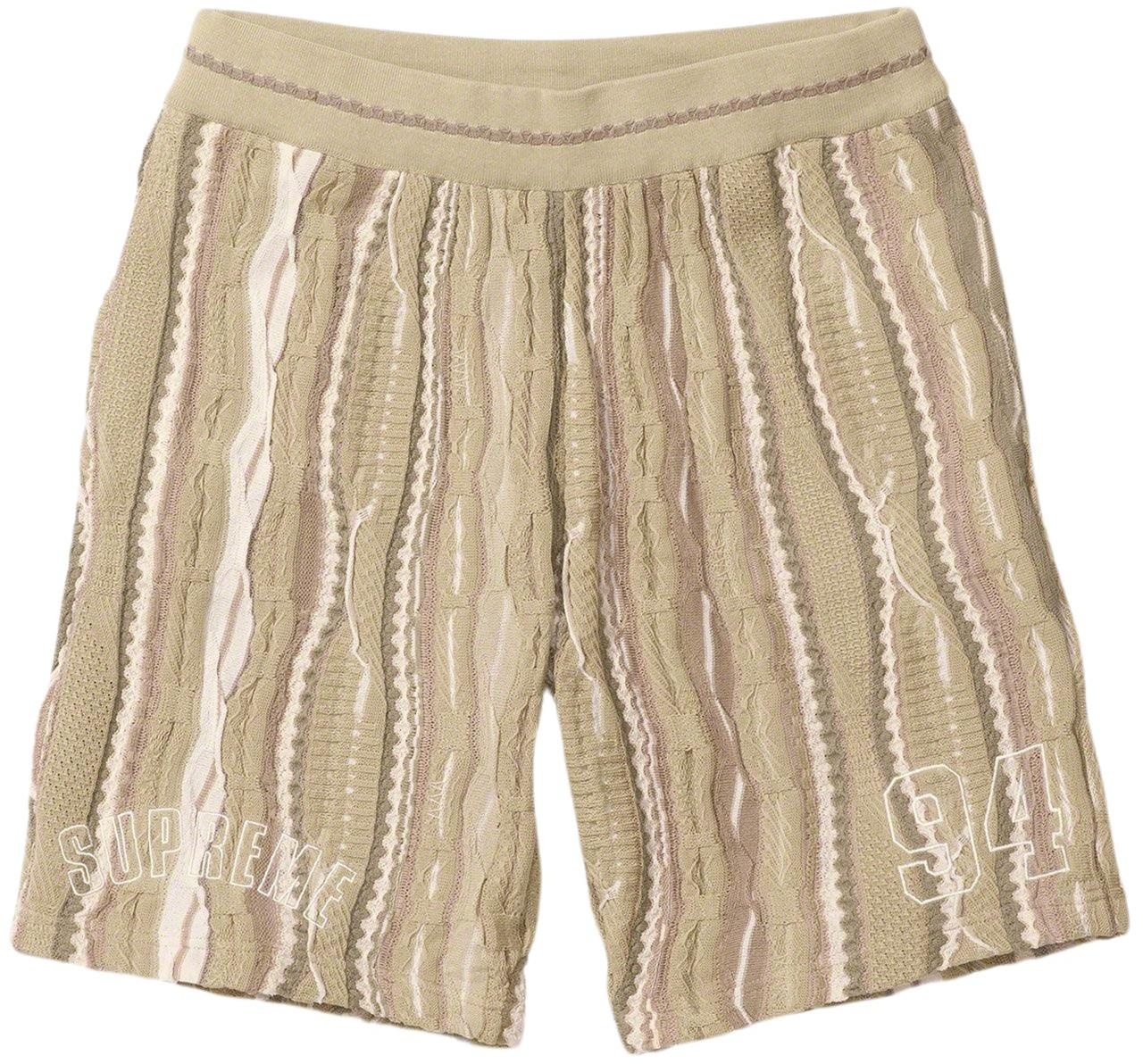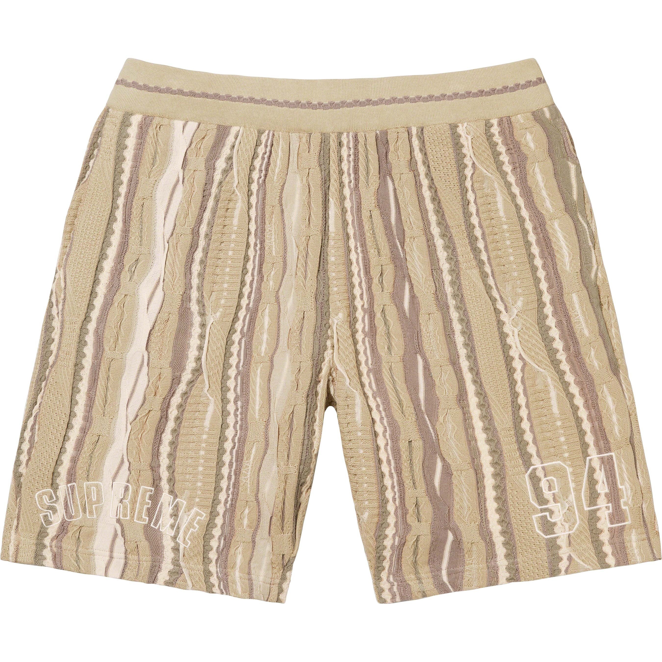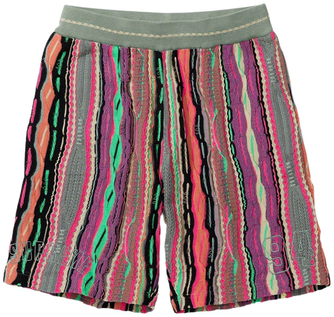 Coogi® knit cotton with on seam hand pockets and single back patch pocket. Knit rib waistband with interior drawcord. Logo and graphic appliqué thighs.