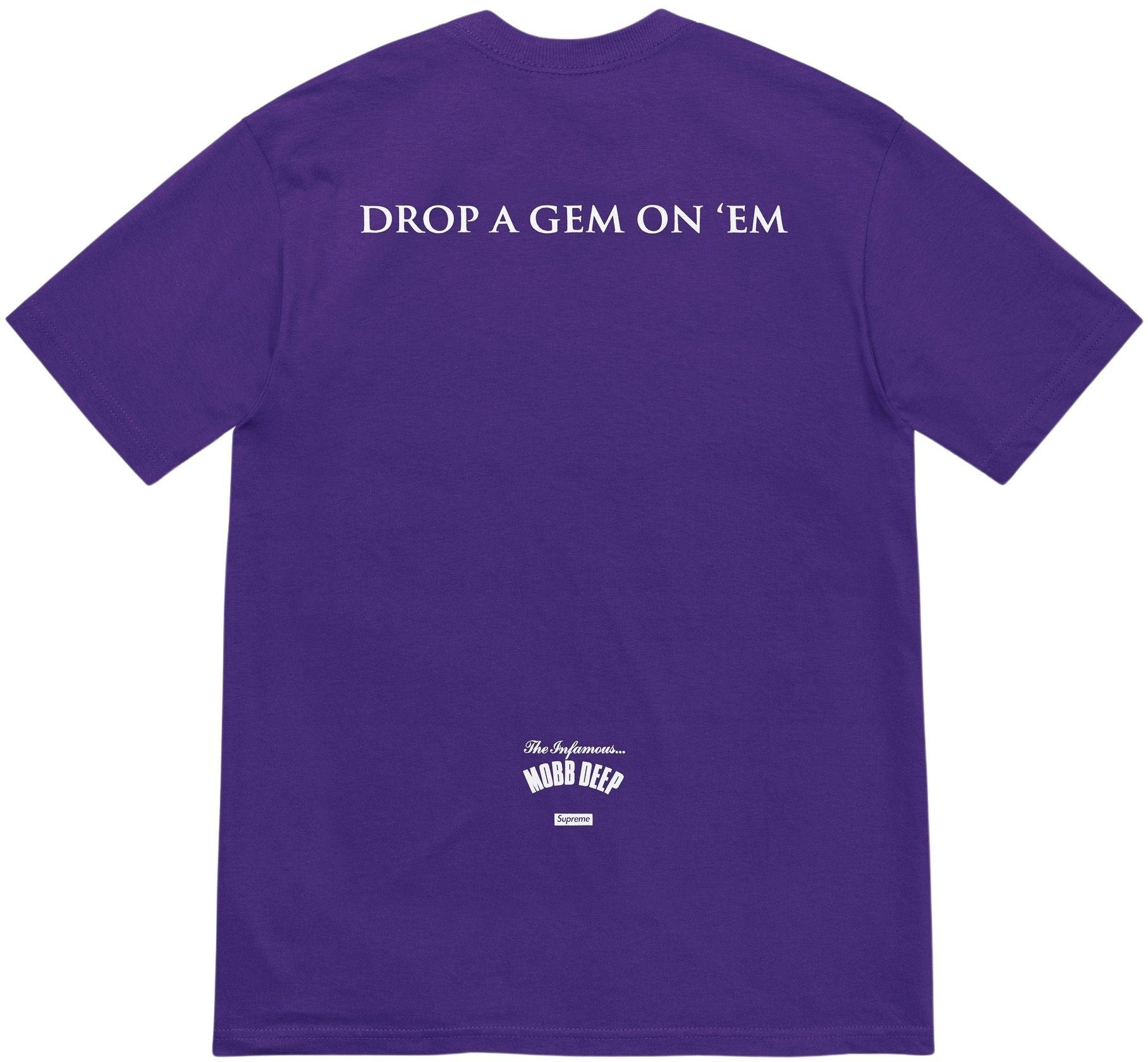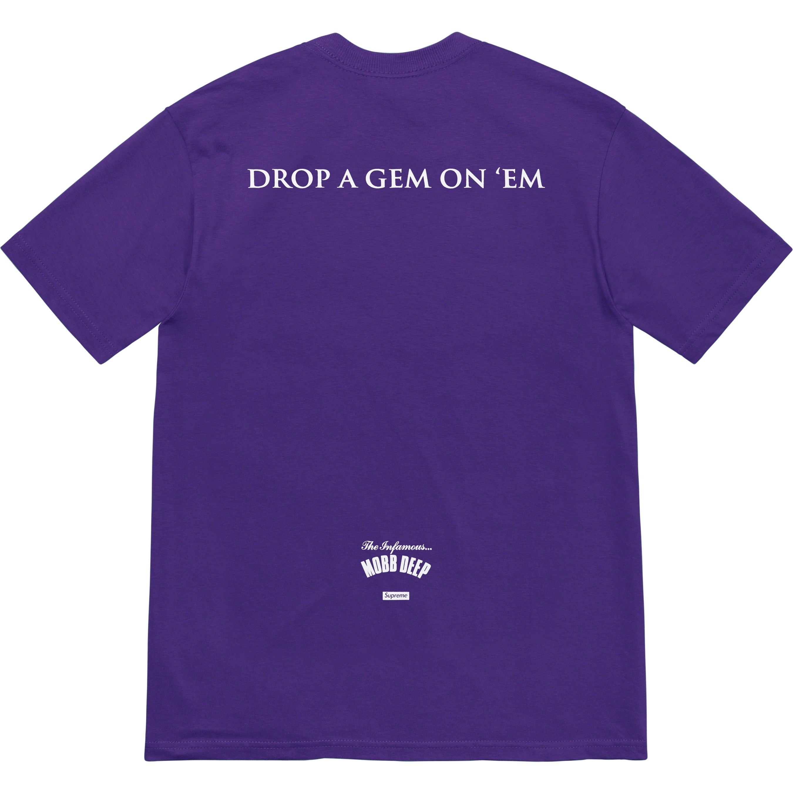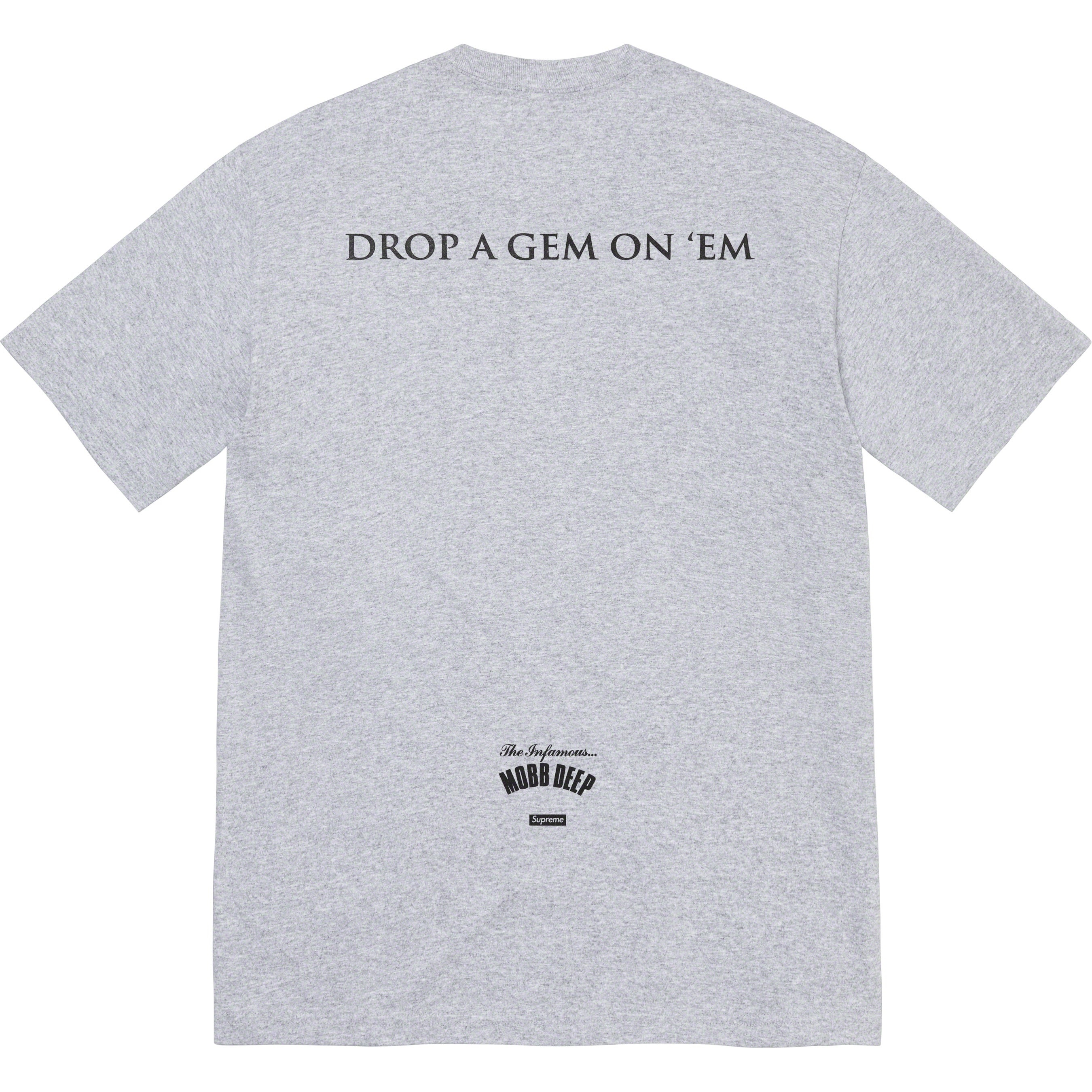 All cotton classic Supreme t-shirt with printed graphic on front and back. Original artwork from Mobb Deep's single Drop a Gem on ‘Em.