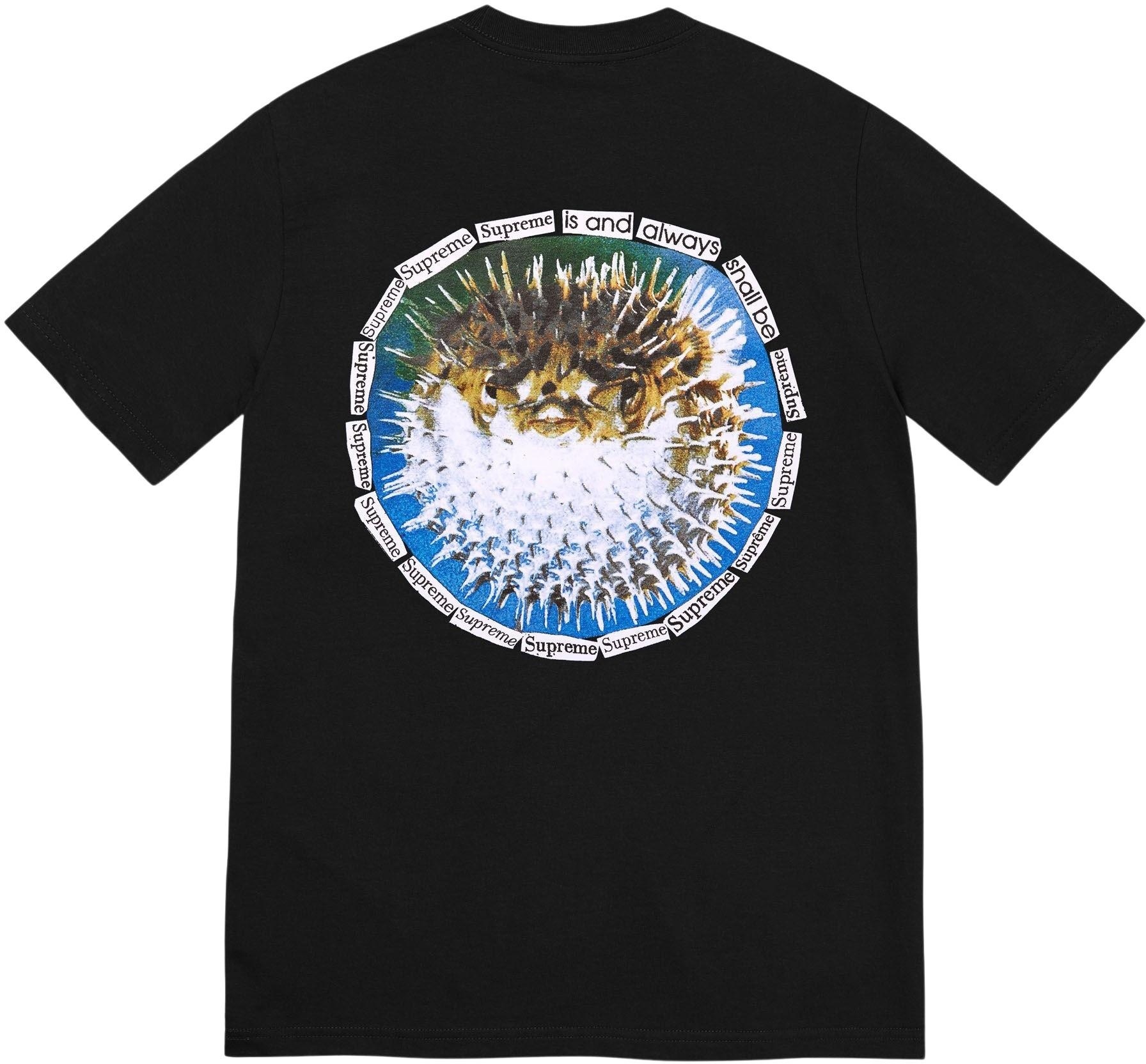 All cotton classic Supreme t-shirt with printed logo on chest and printed graphic on back. Original artwork by Weirdo Dave.