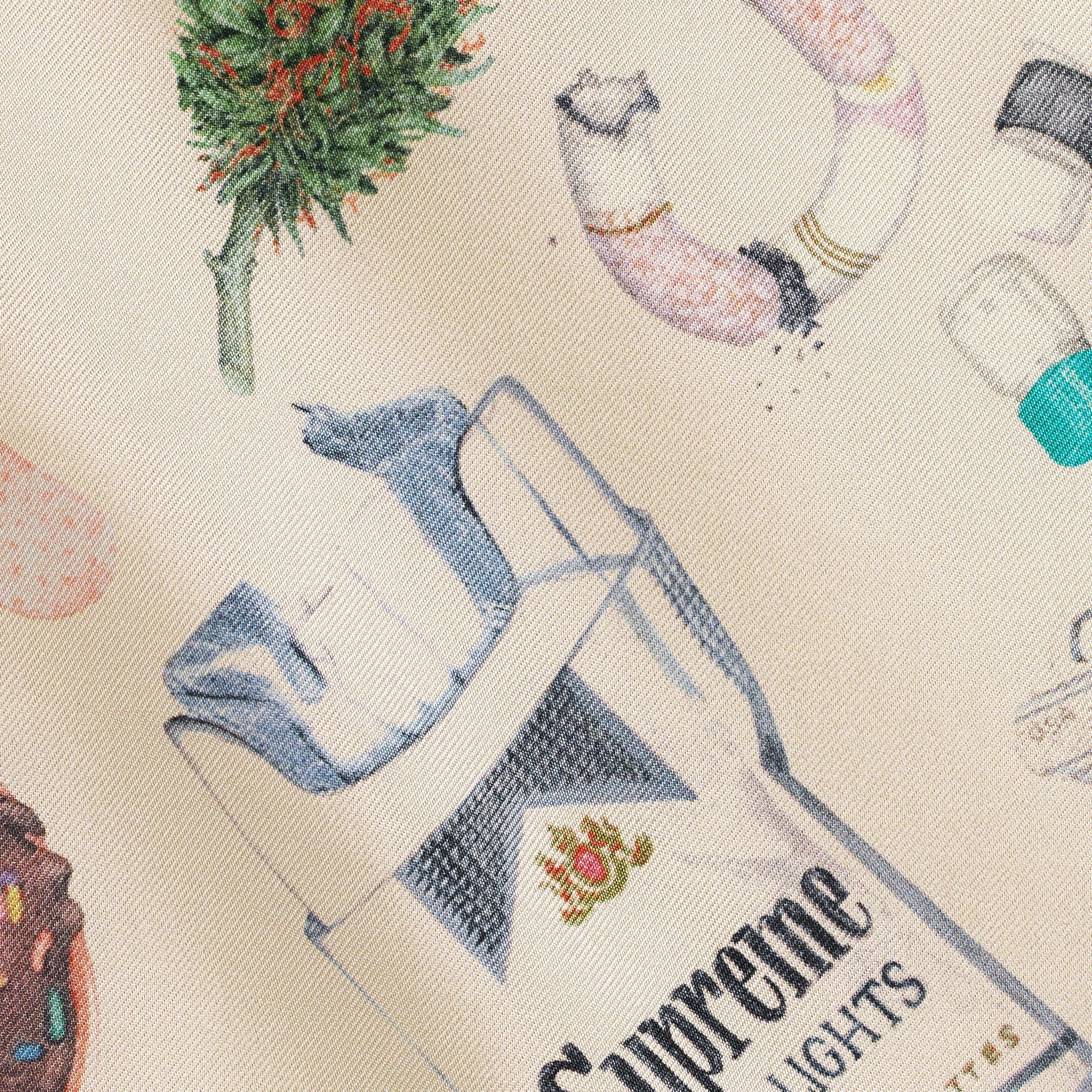 Silk scarf with printed graphic. 33.5" x 33.5". Original artwork by Aurel Schmidt.
