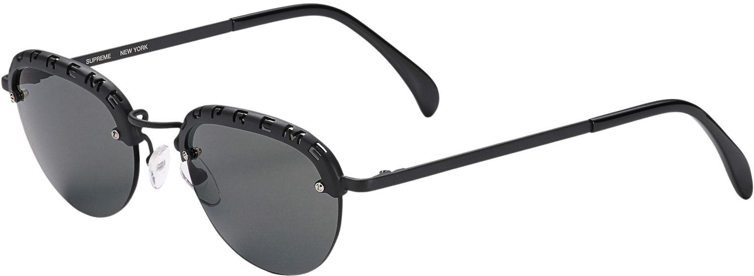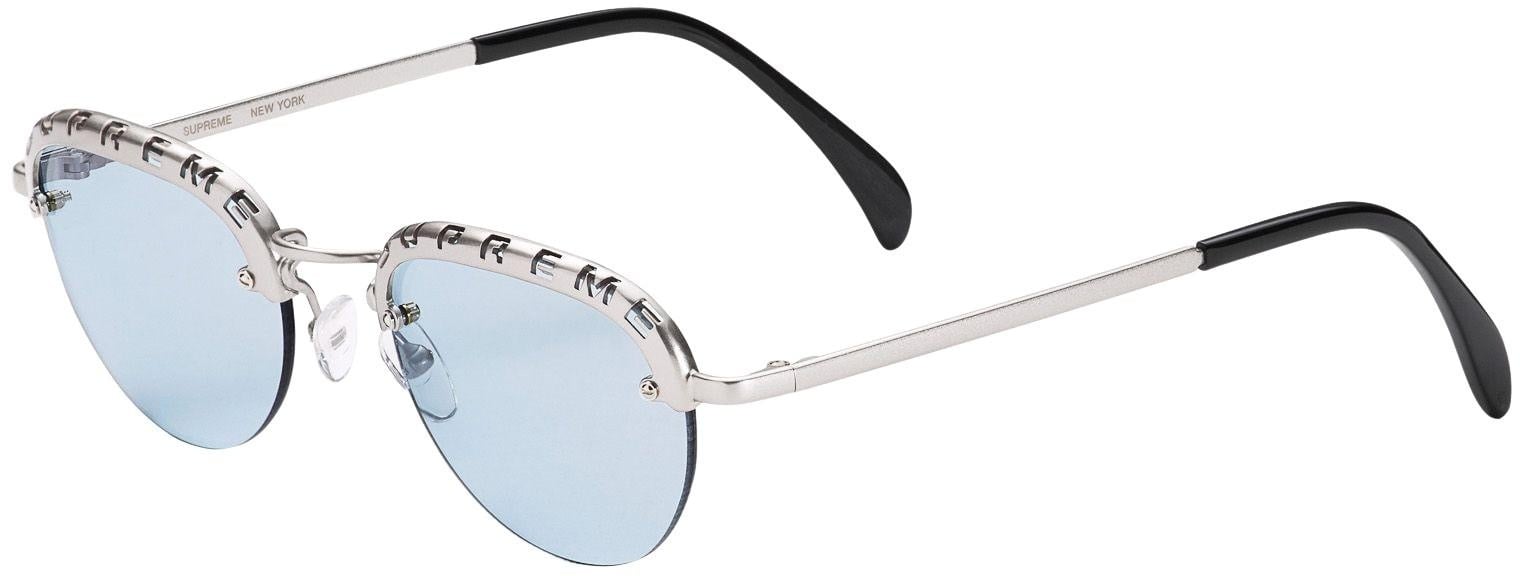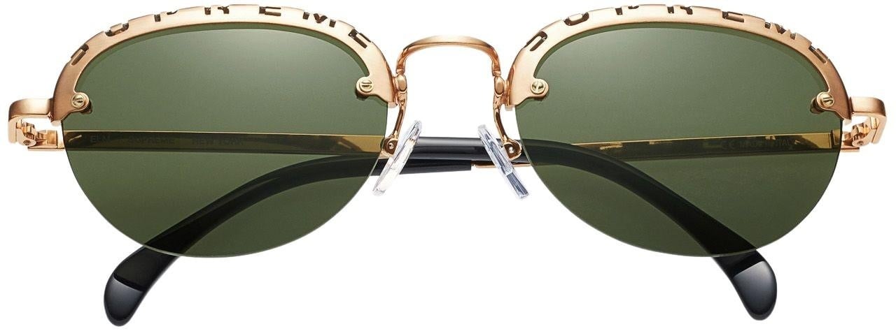 Handmade Italian metal frames with anti-reflective coated lenses. Cut-out logos at top rims.