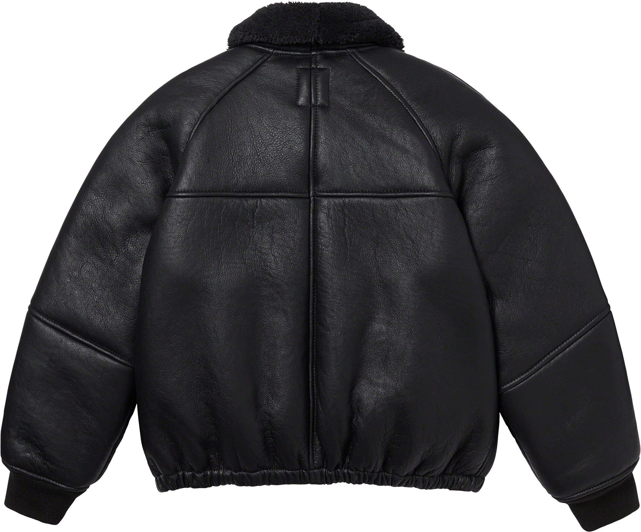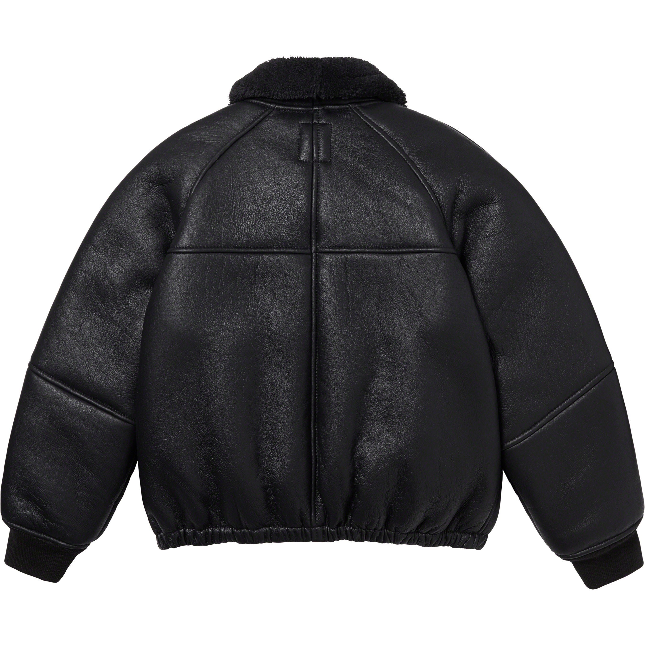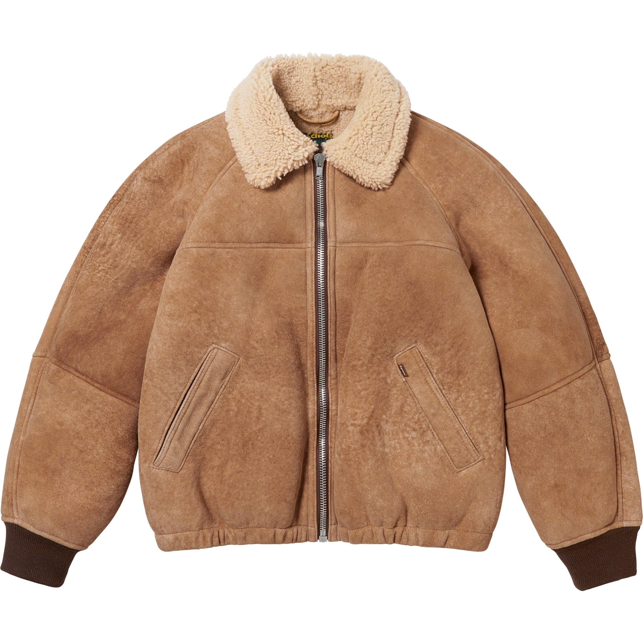 Sheepskin suede with shearling lining and collar. Full zip closure with welt hand pockets at lower front and interior patch pocket. Knit rib cuffs and elastic hem. Jacquard logo taping at interior. Made exclusively for Supreme.