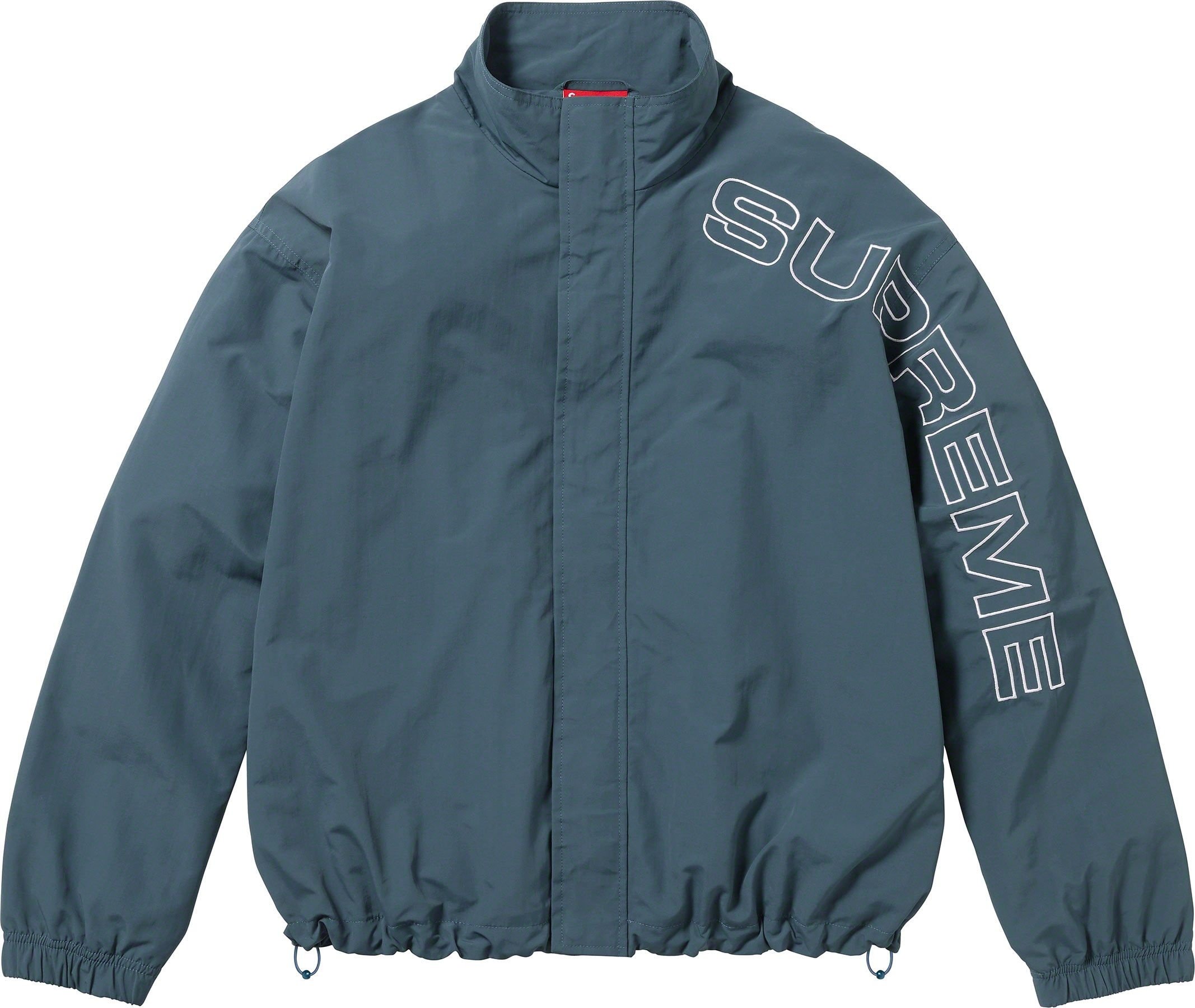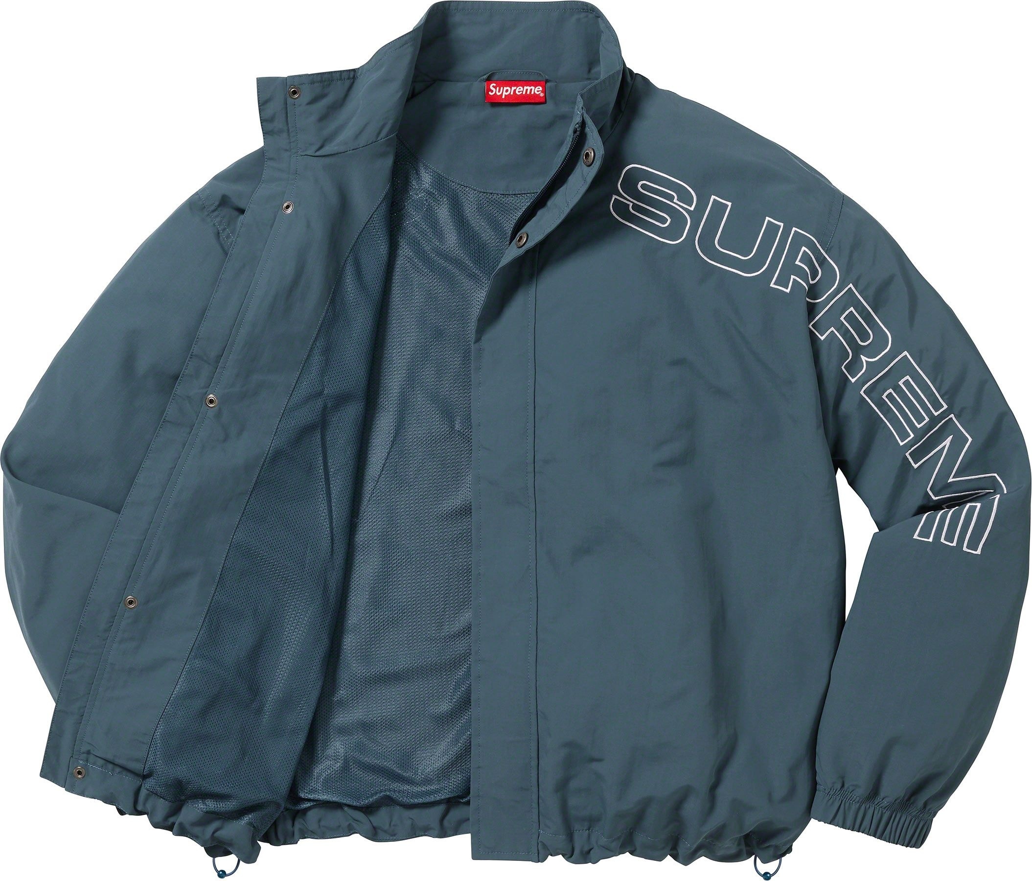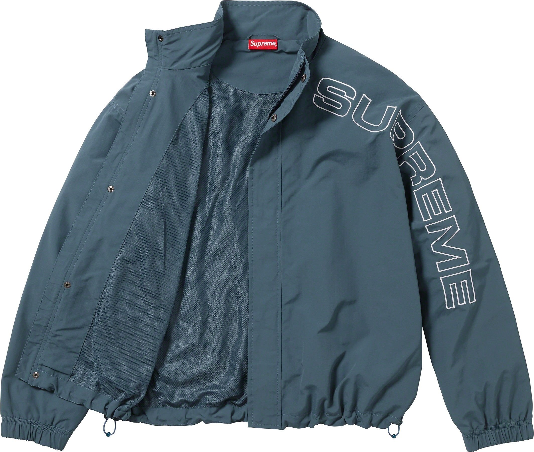 Water resistant Supplex® nylon taslan with mesh lining and taffeta sleeve lining. Full zip closure with hidden snap placket. On seam hand pockets at lower front and interior chest pocket. Interior elastic shockcord at hem with elastic cuffs. Embroidered logos on front and back shoulder and sleeve.