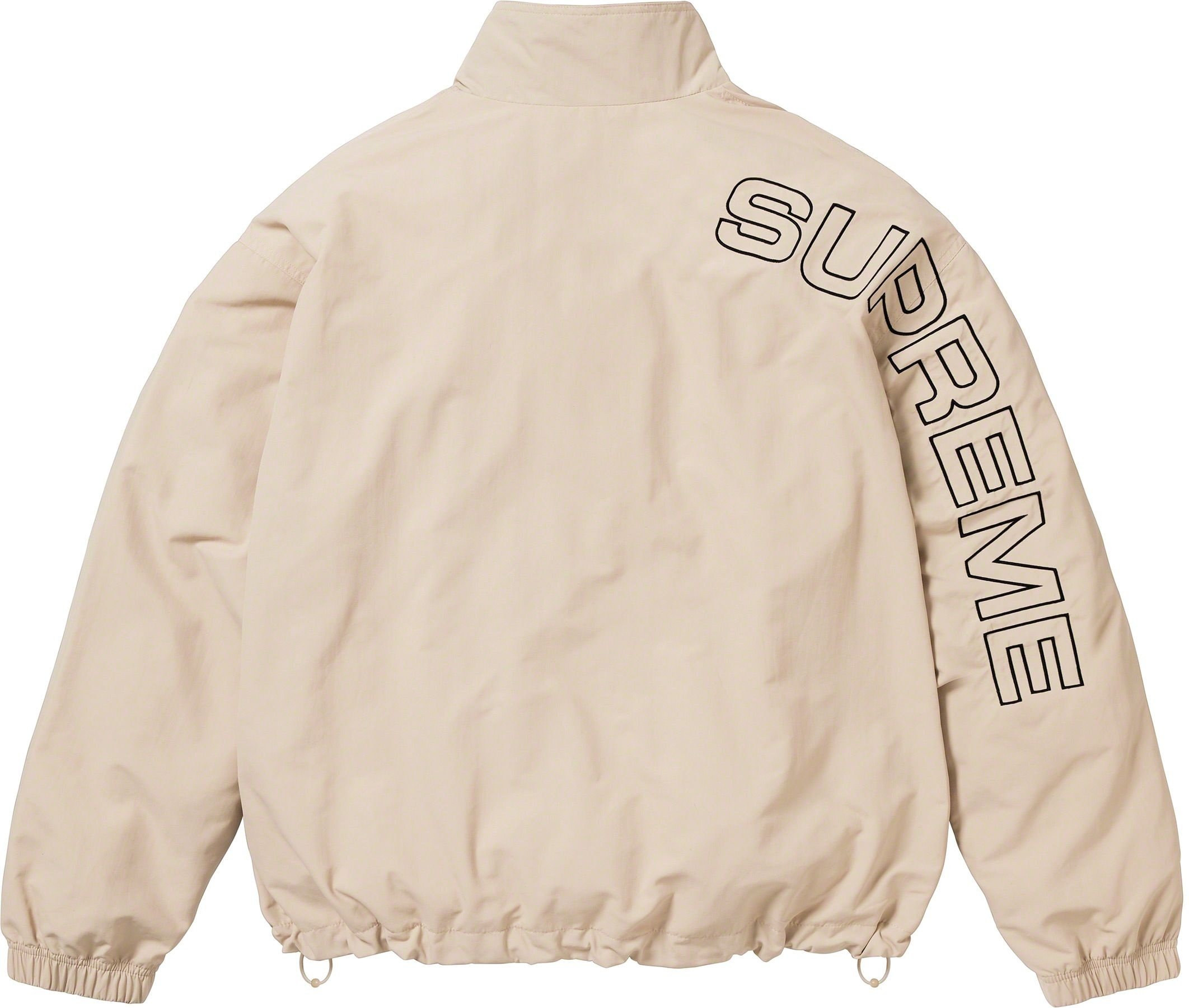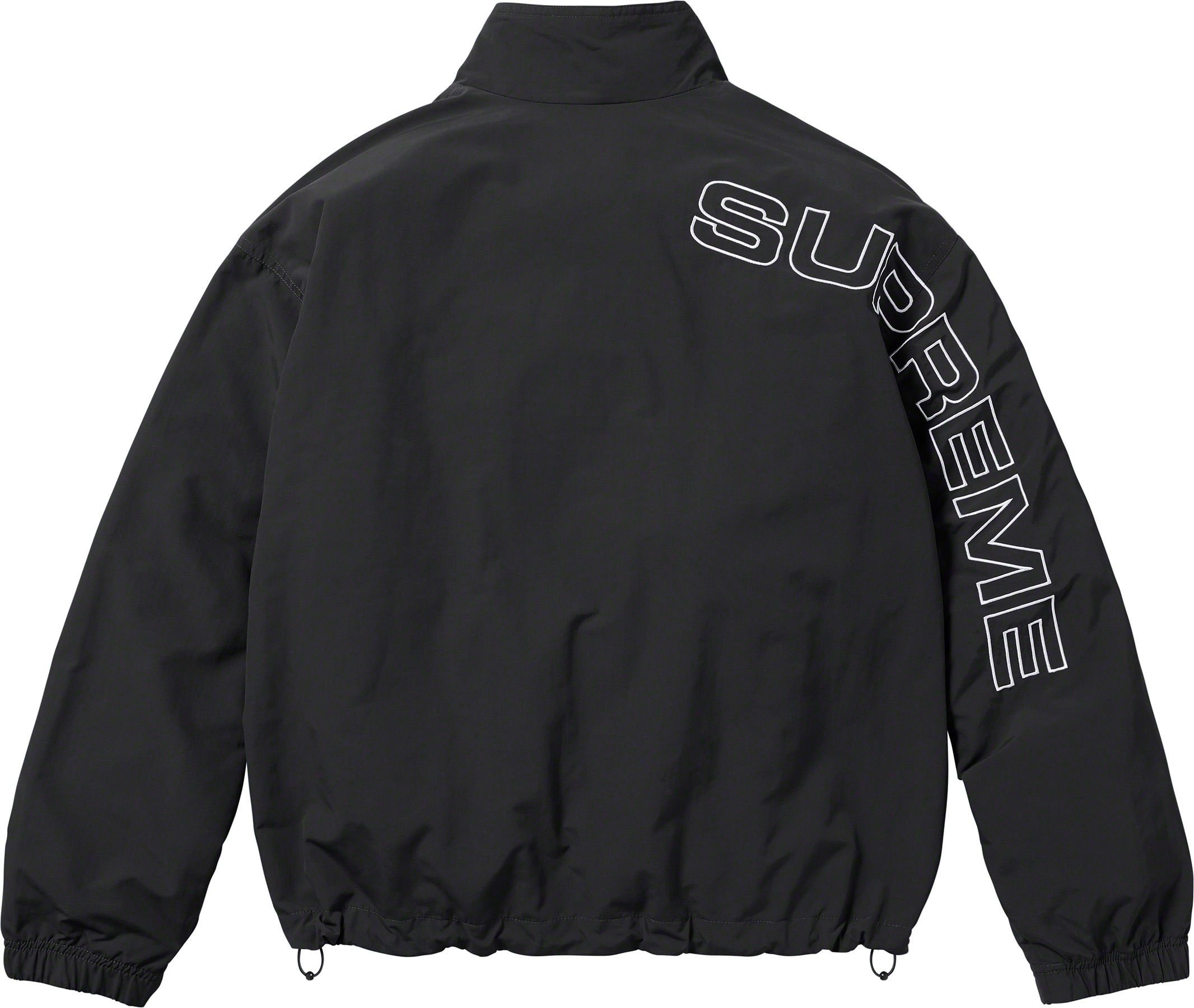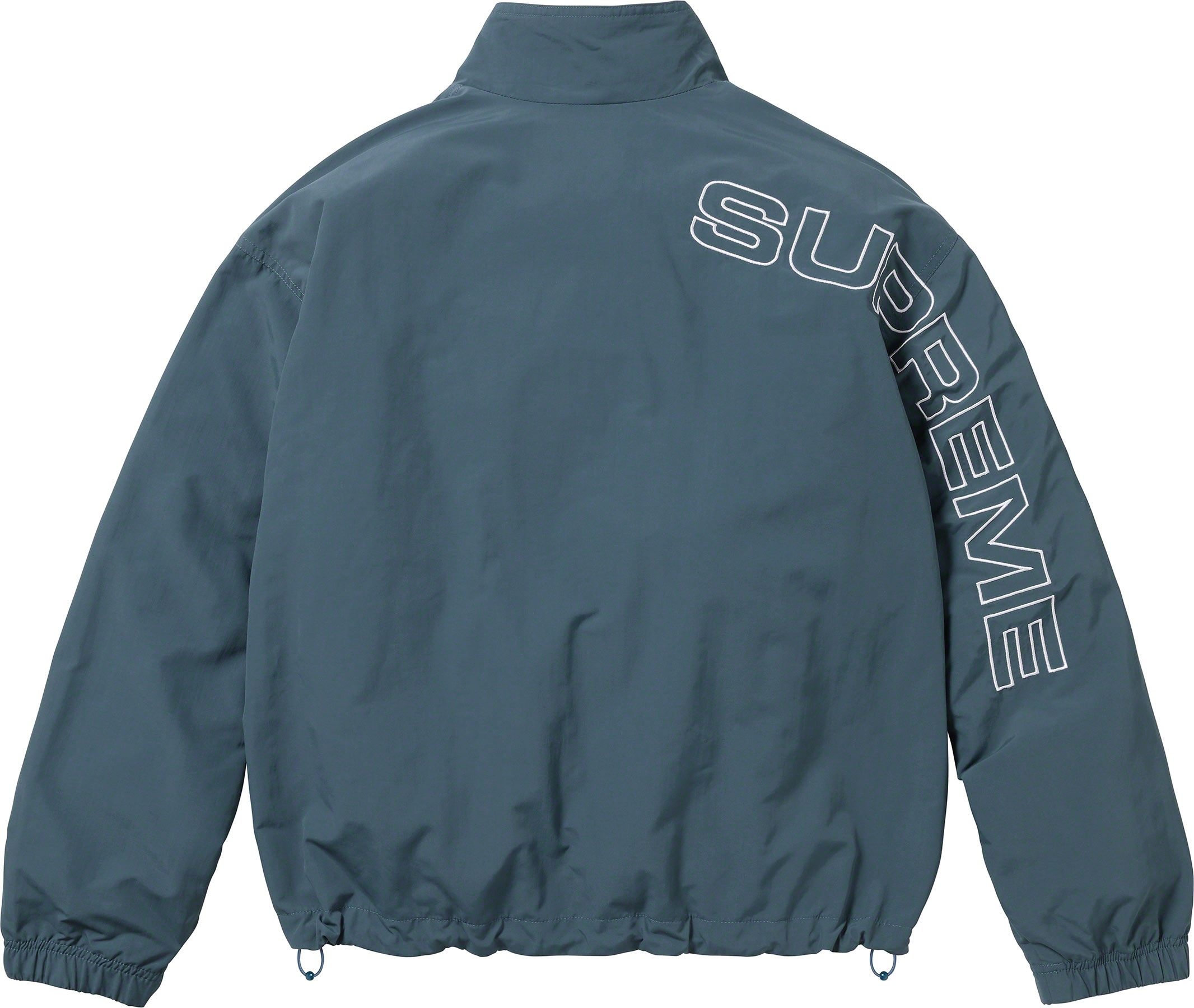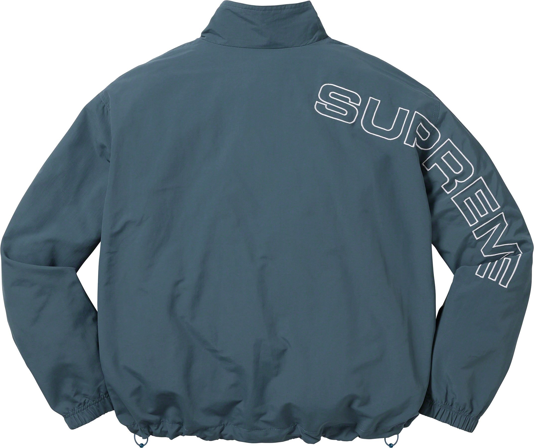 Water resistant Supplex® nylon taslan with mesh lining and taffeta sleeve lining. Full zip closure with hidden snap placket. On seam hand pockets at lower front and interior chest pocket. Interior elastic shockcord at hem with elastic cuffs. Embroidered logos on front and back shoulder and sleeve.