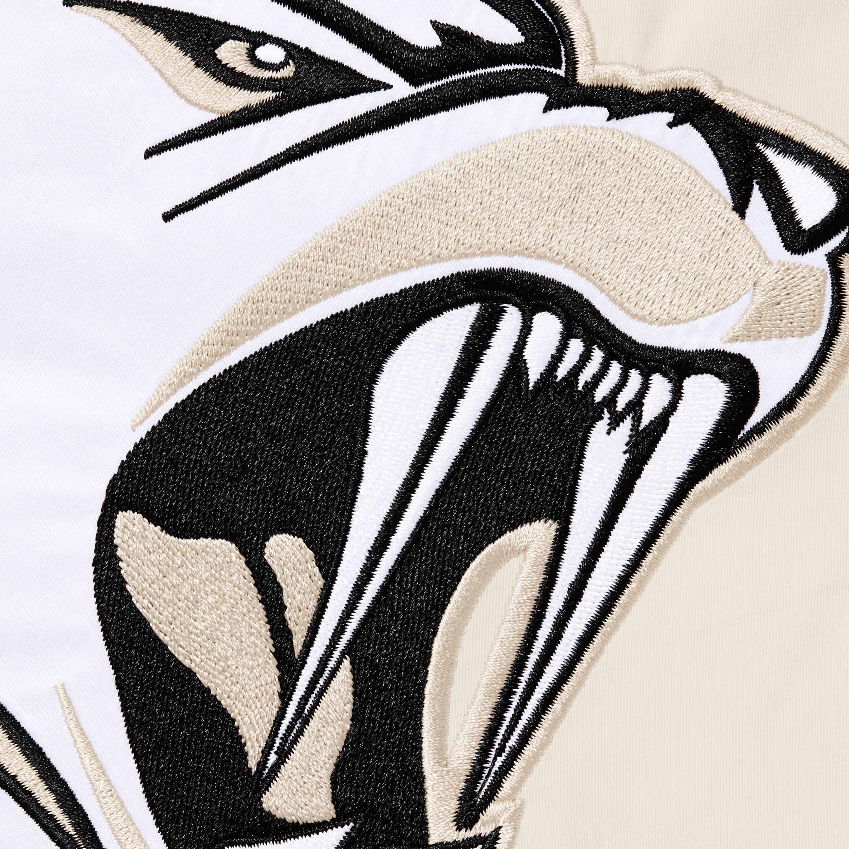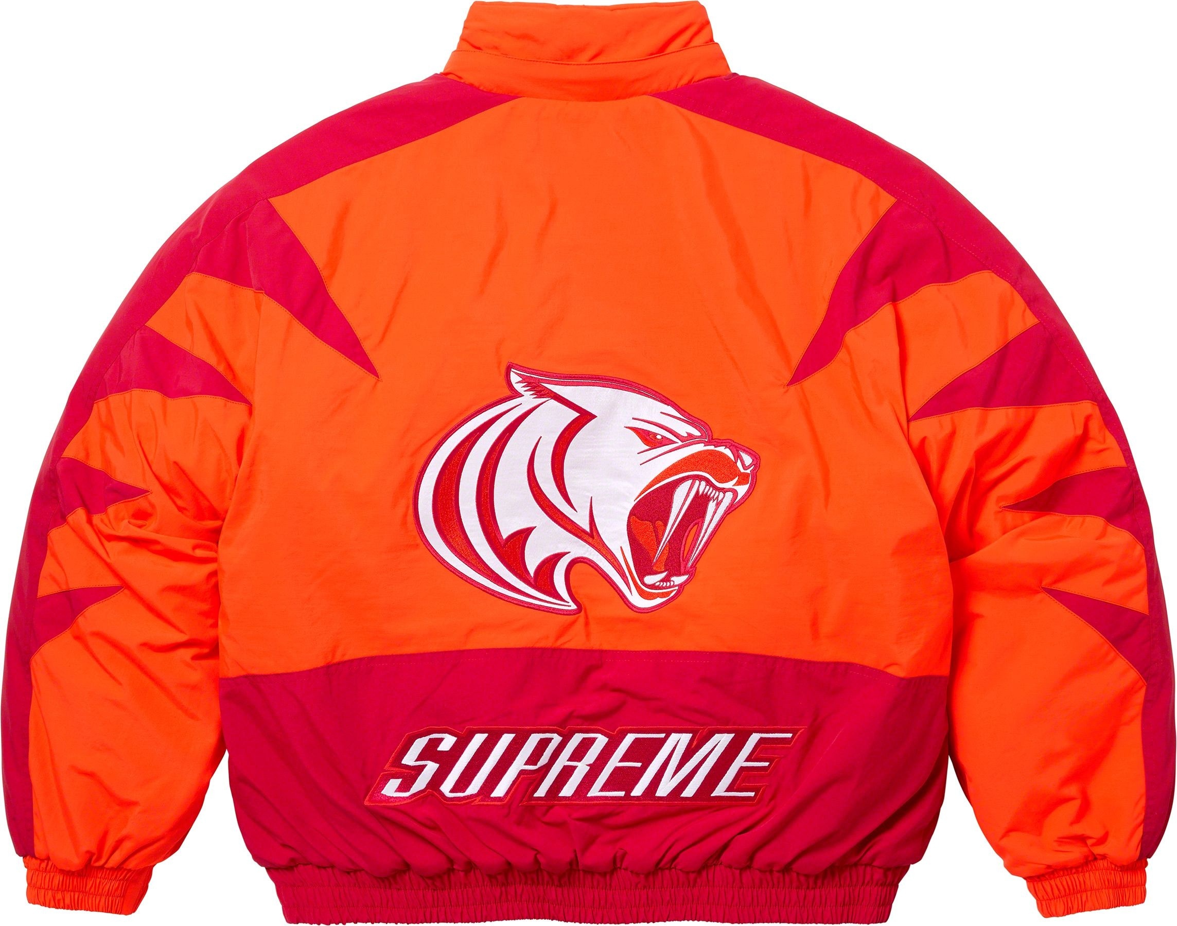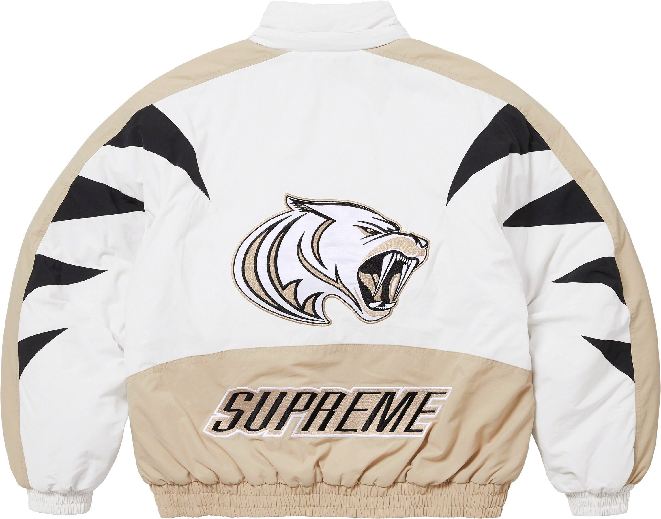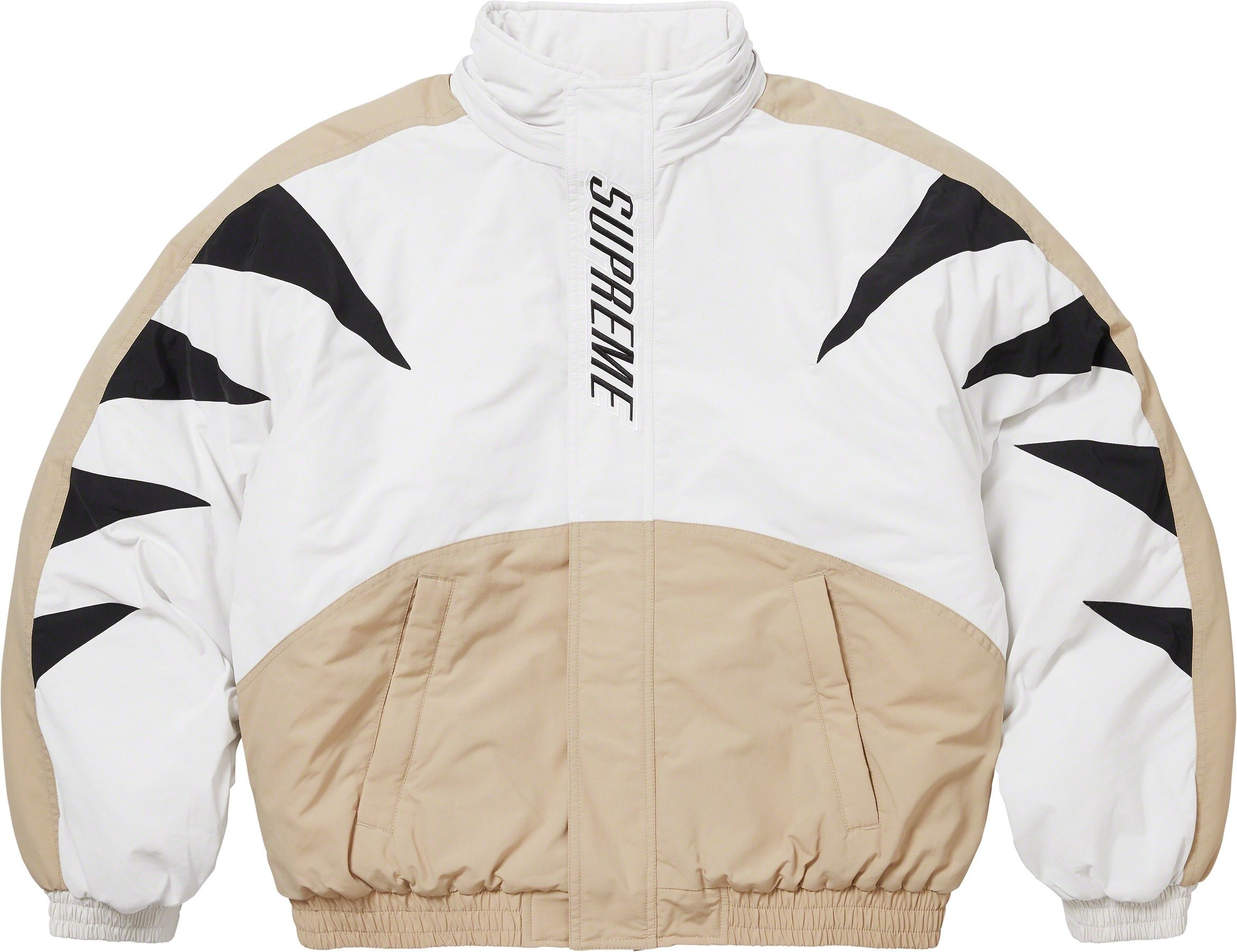 Water resistant Supplex® nylon taslan with fill and quilted taffeta lining. Full zip closure with hidden snap placket. Welt zip hand pockets at lower front and interior chest pocket. Removable hood with elastic cuffs and hem. Embroidered logos on placket and back with satin appliqué at back.