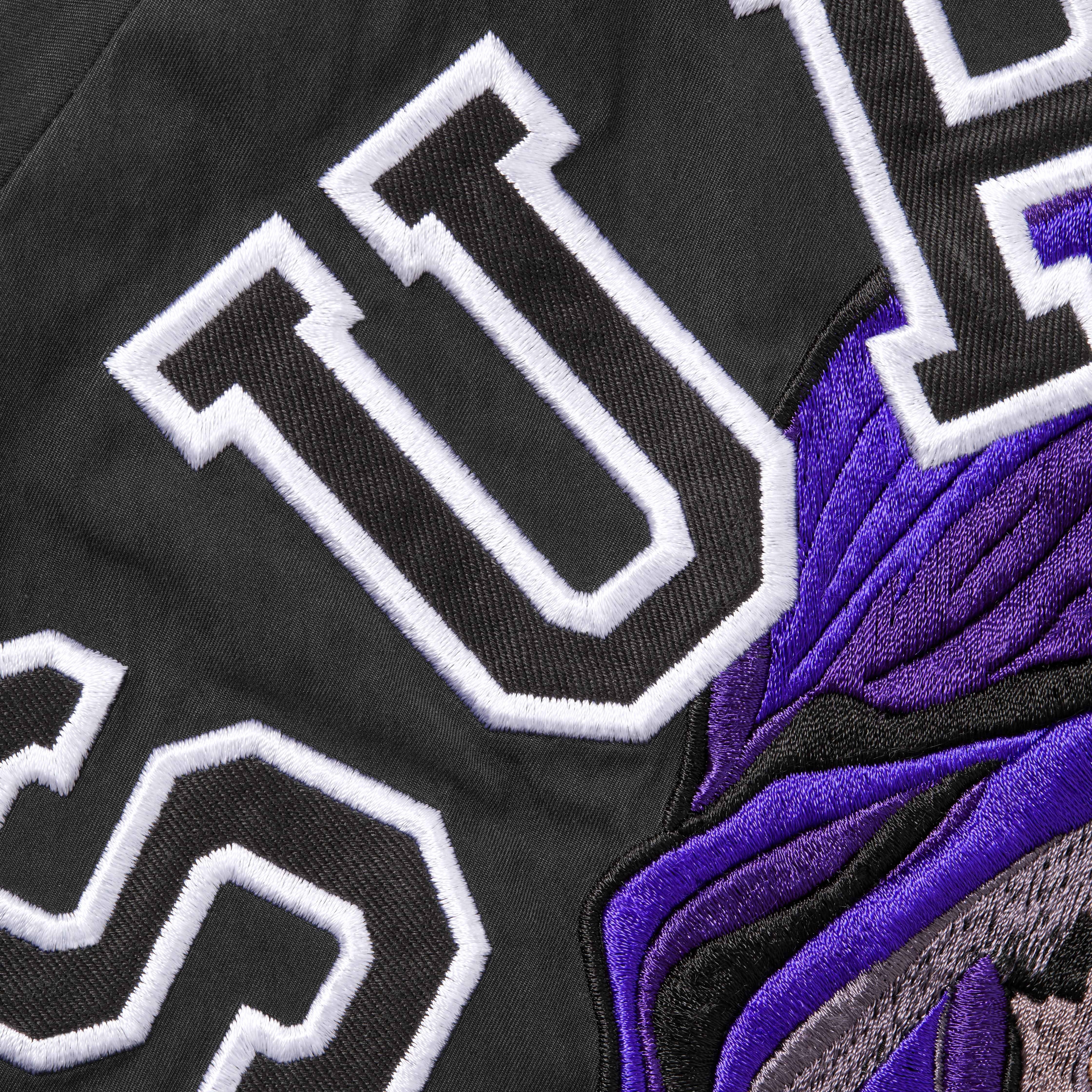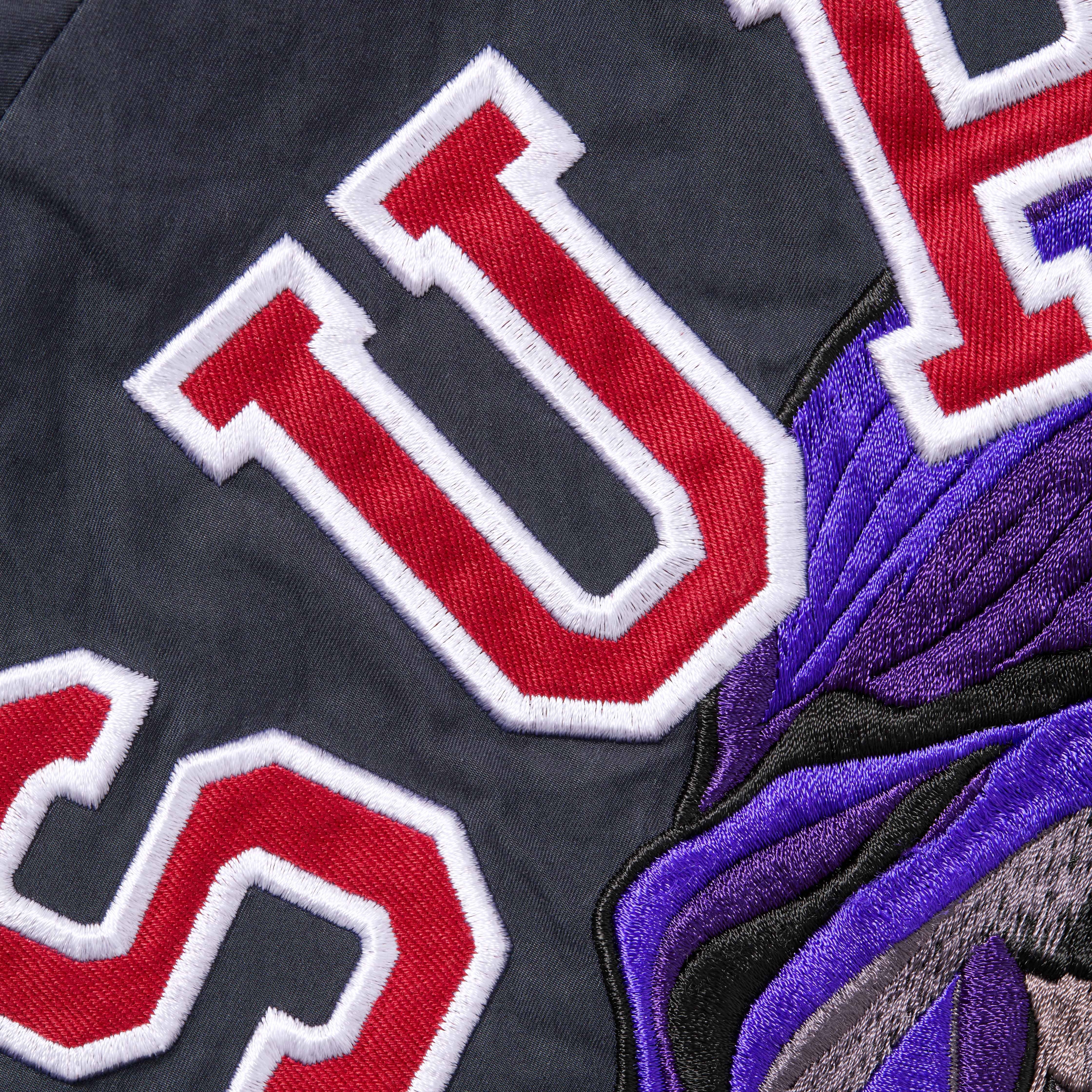 Water resistant cotton blend with 3M® Thinsulate™ insulation and quilted taffeta lining. Full zip closure with hidden velcro placket. Welt hand pockets at lower front and interior chest pocket. Knit rib cuffs and hem. Embroidered logo on chest. Embroidered graphic with twill appliqué on back. Original embroidered artwork by AOI.