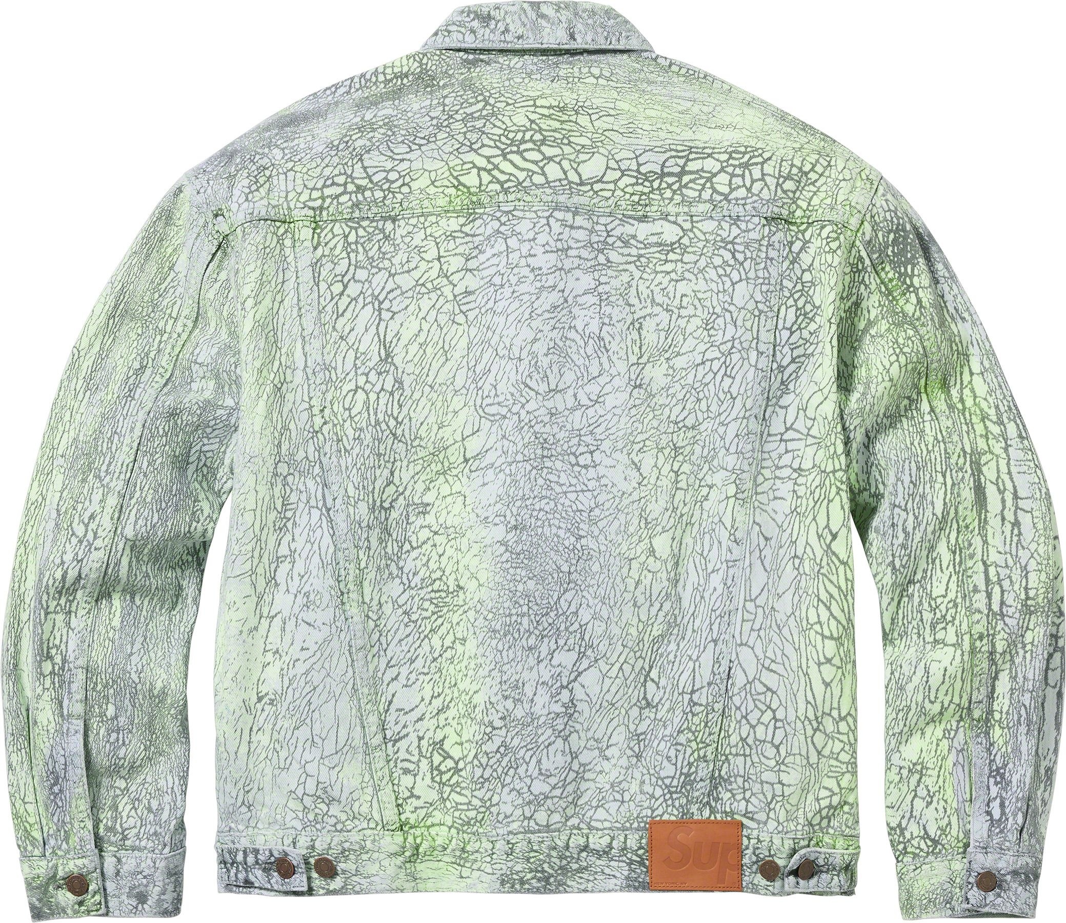 All cotton 13 oz. denim with hand-applied crackle treatment. Button front closure with welt hand pockets at lower front and button flap patch pockets at chest. Tab adjusters at cuffs and back hem with leather logo patch.