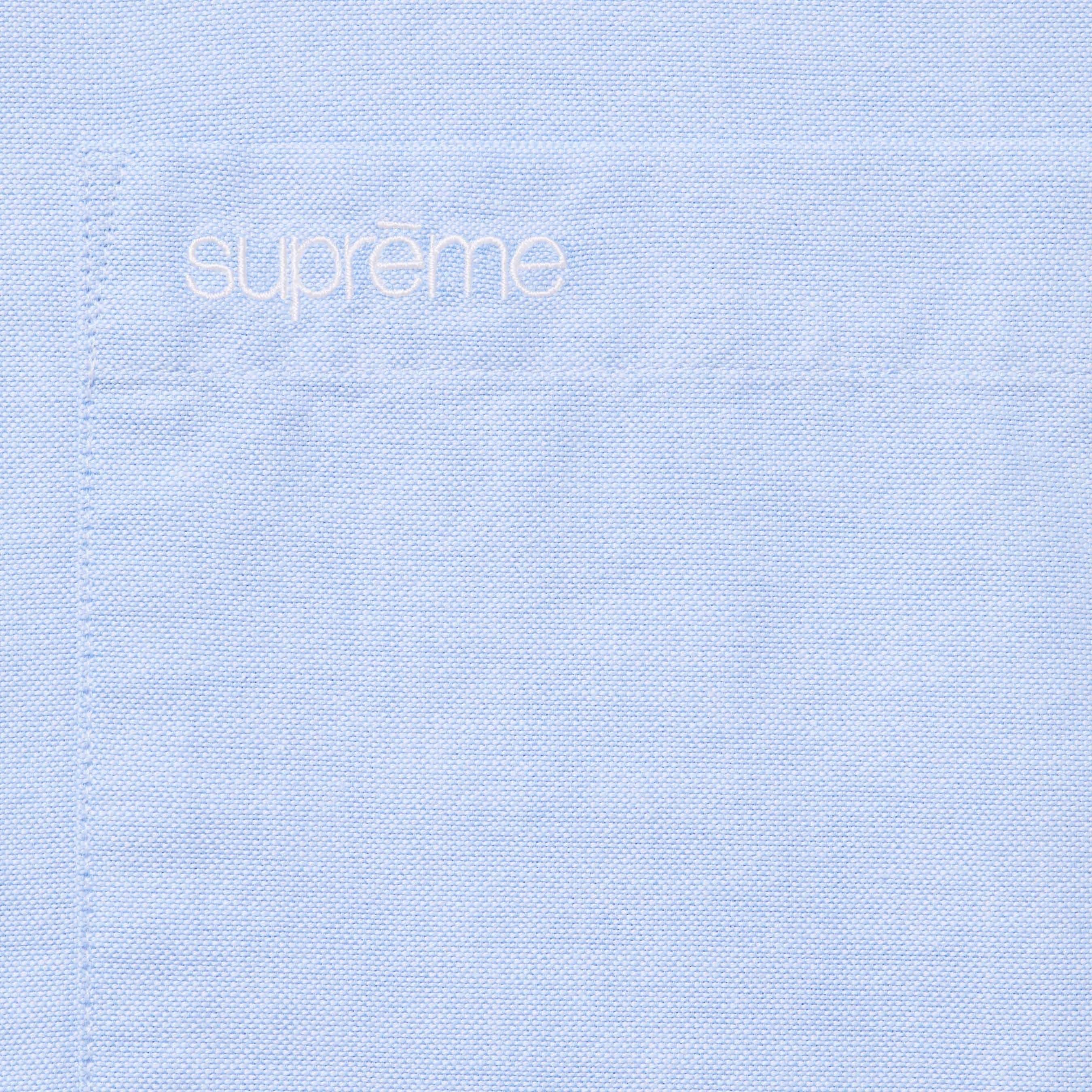 All cotton oxford with oversized fit and button down collar. Embroidered logo on single chest pocket.