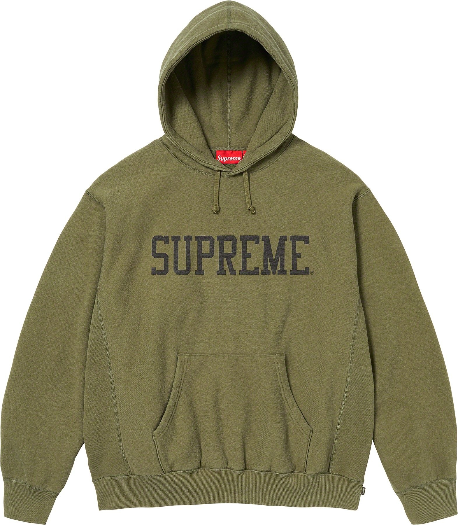 Heavyweight crossgrain brushed-back fleece with rib gussets and pouch pocket. Printed logo on chest.