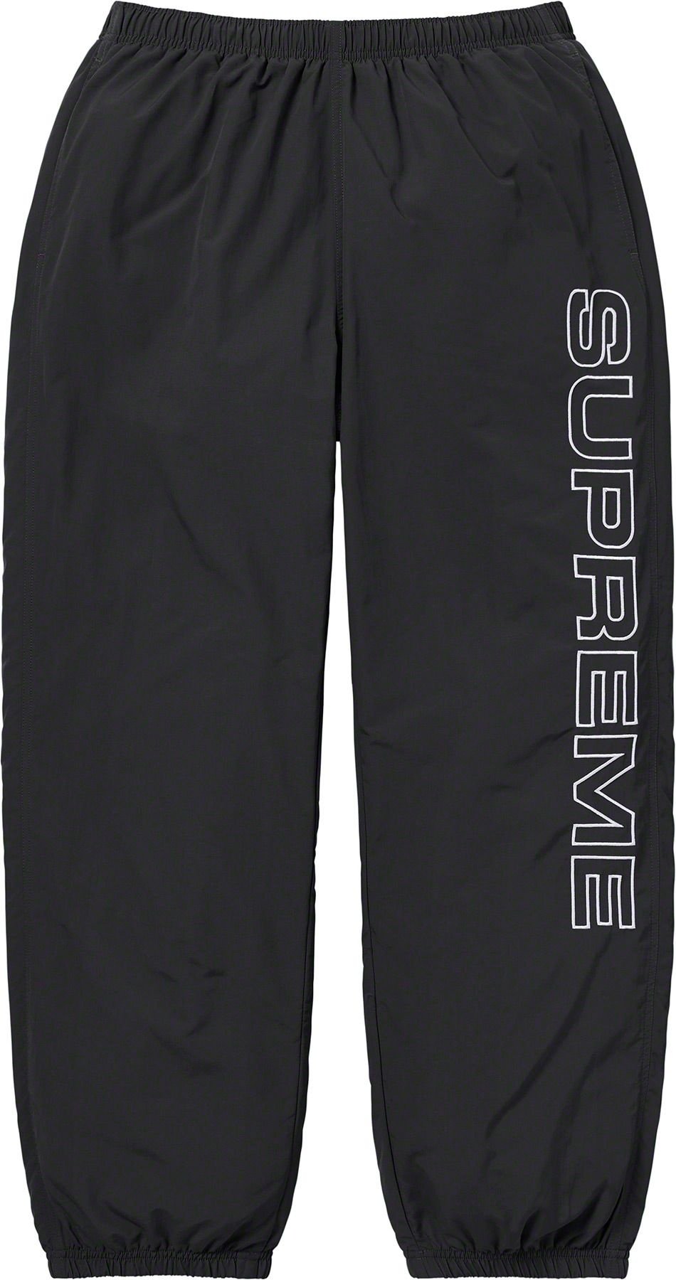 Water resistant Supplex® nylon taslan with mesh and taffeta lining. On seam hand pockets and single back zip pocket. Elastic cuffs and waistband with interior drawcord and interior hanging key pocket. Embroidered logo on front left leg and back right leg.