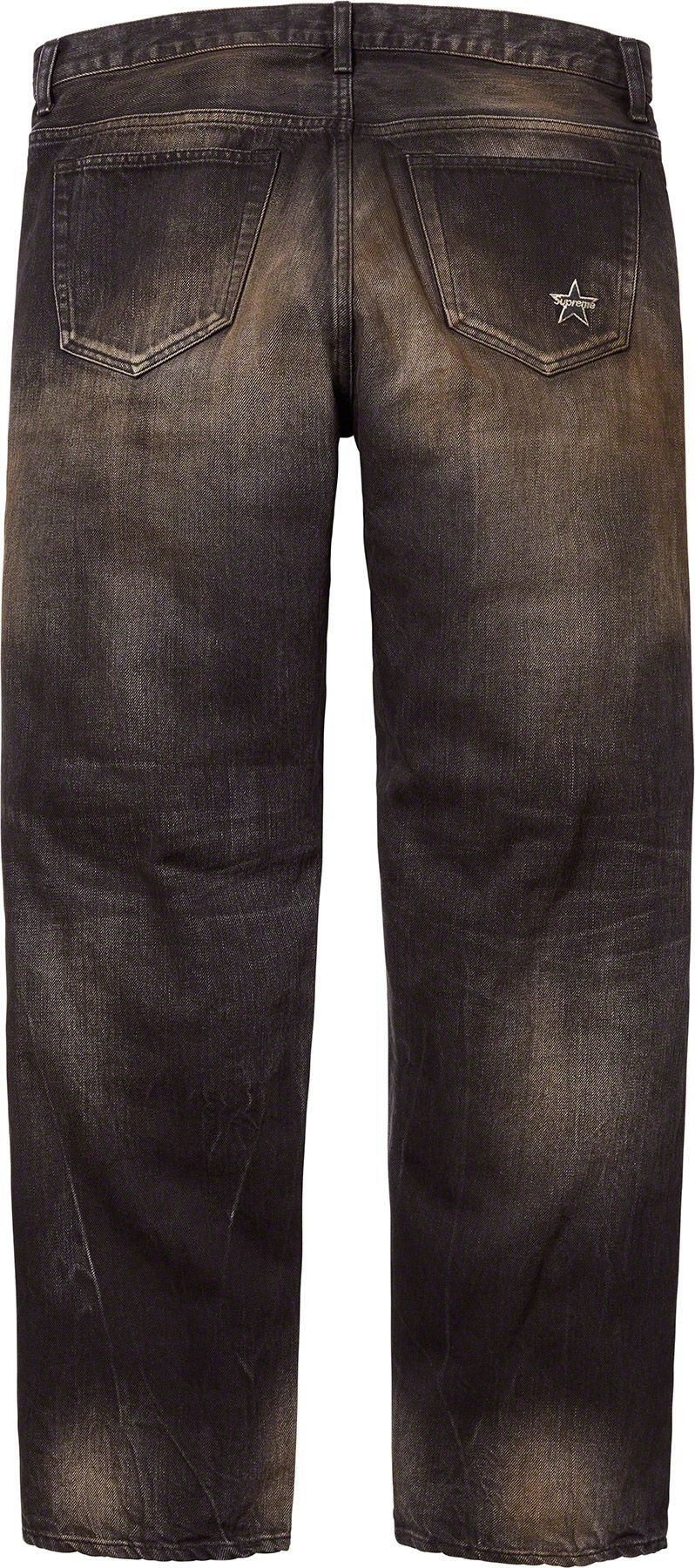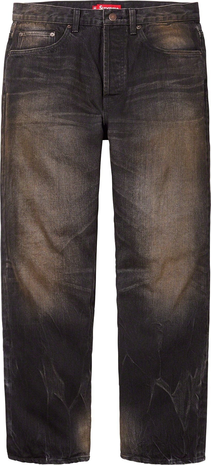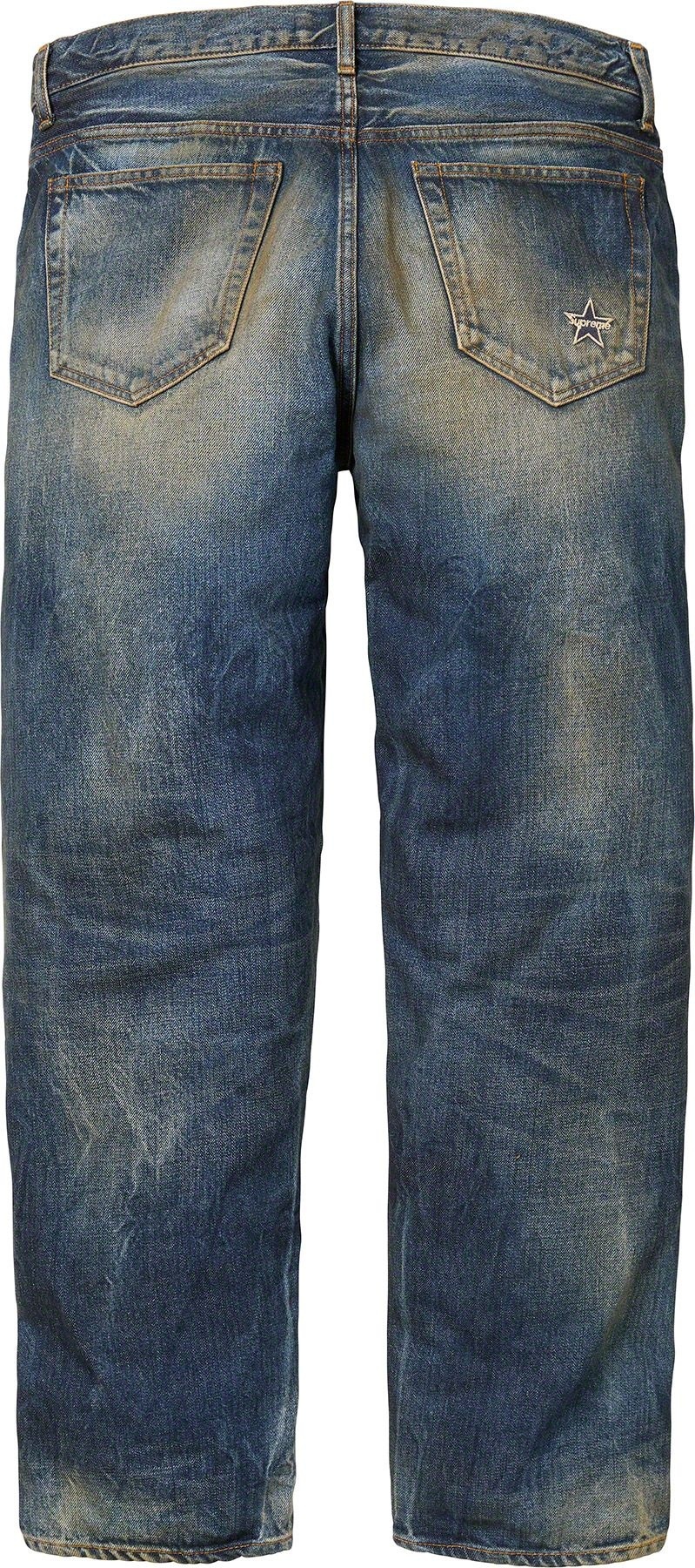 All cotton 13 oz. Japanese English denim with loose fit, heavy wash and hand-applied distressed treatment. Classic 5-pocket style with button fly, single coin pocket, copper oxide rivets and embroidered logo on back pocket. Made in Japan.