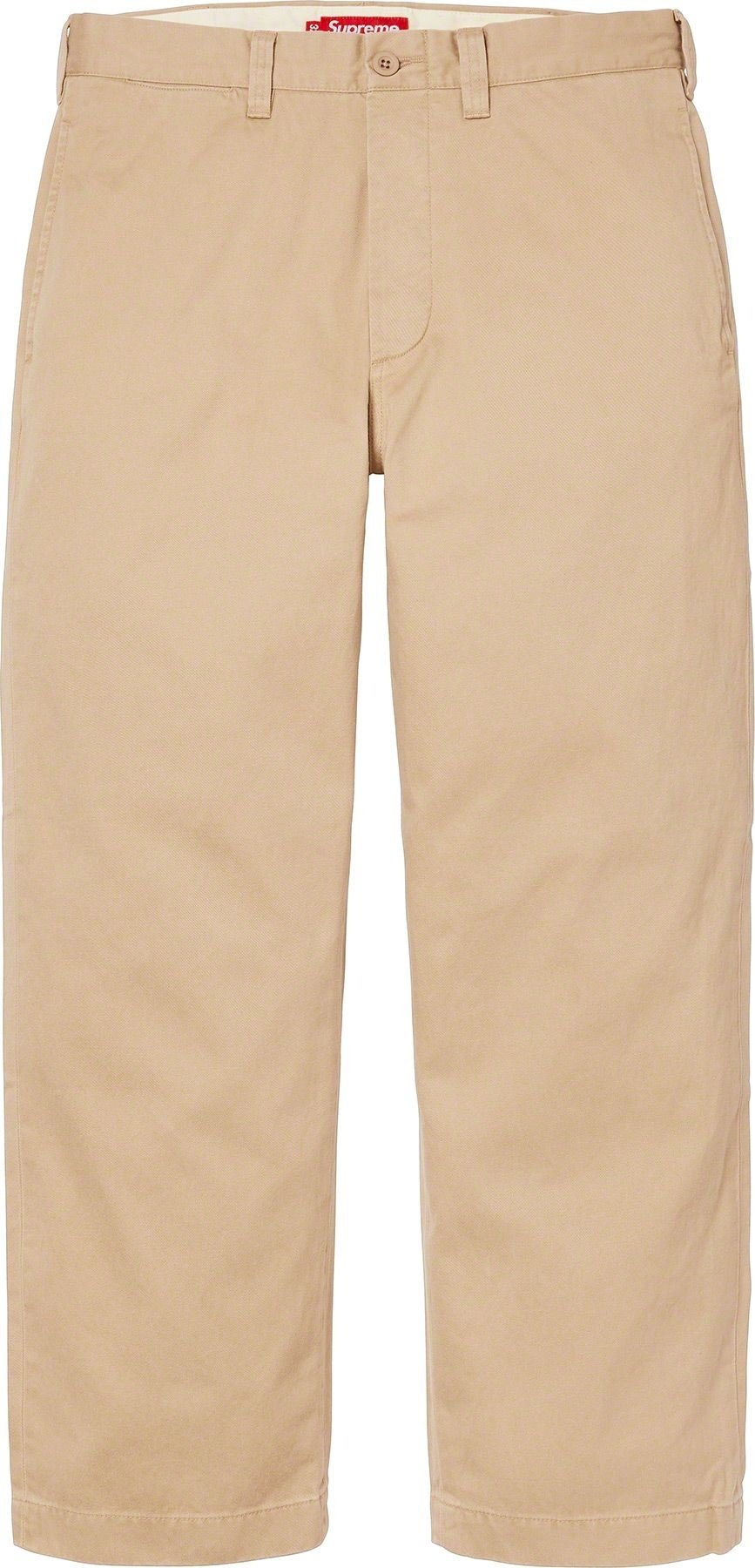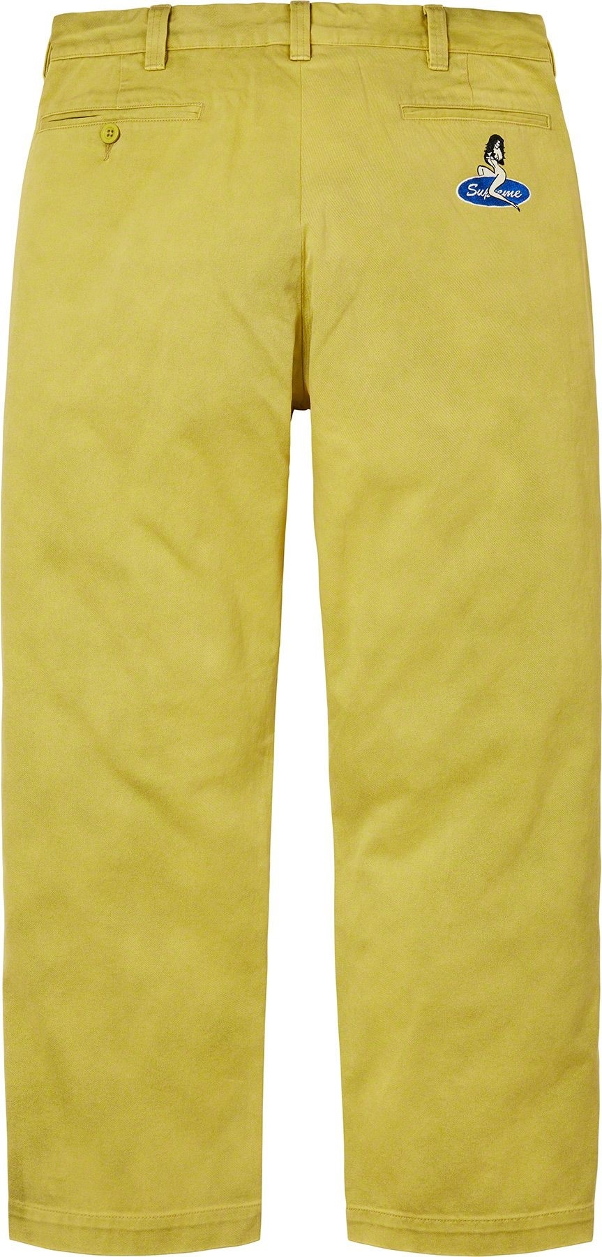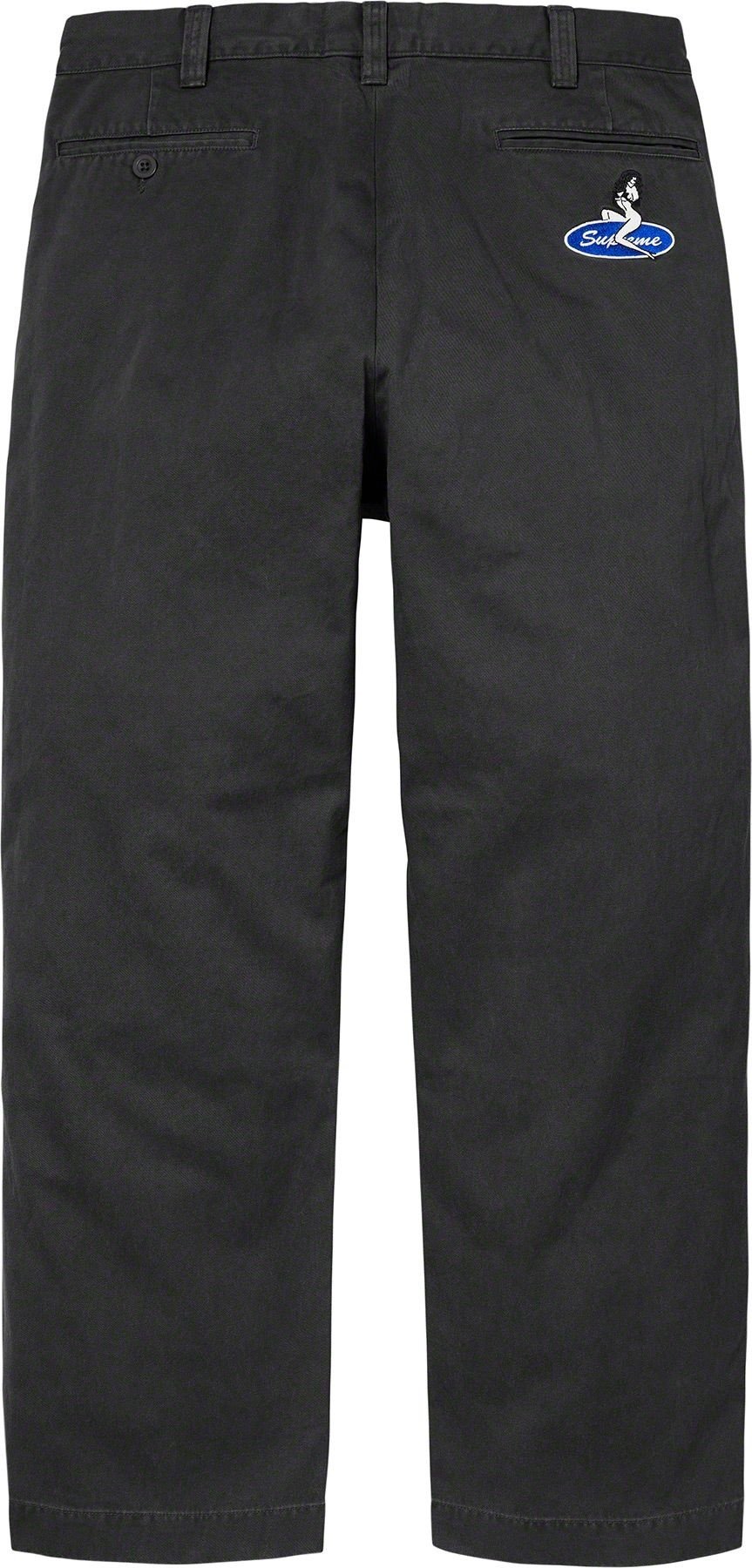 All cotton chino twill with enzyme wash. Relaxed fit with on seam hand pockets, welt back pockets, hidden coin pocket and button fly closure. Embroidered logo on back pocket.