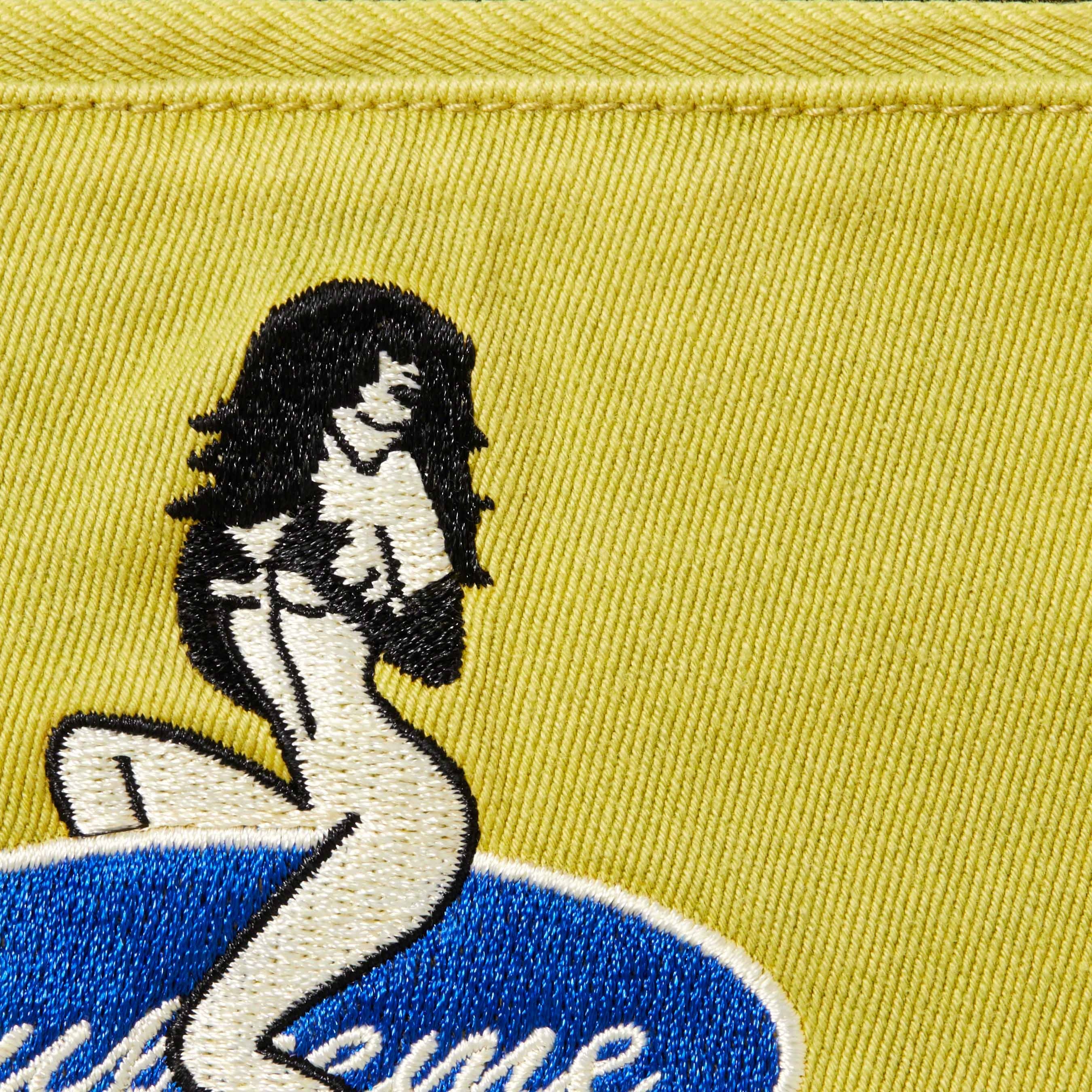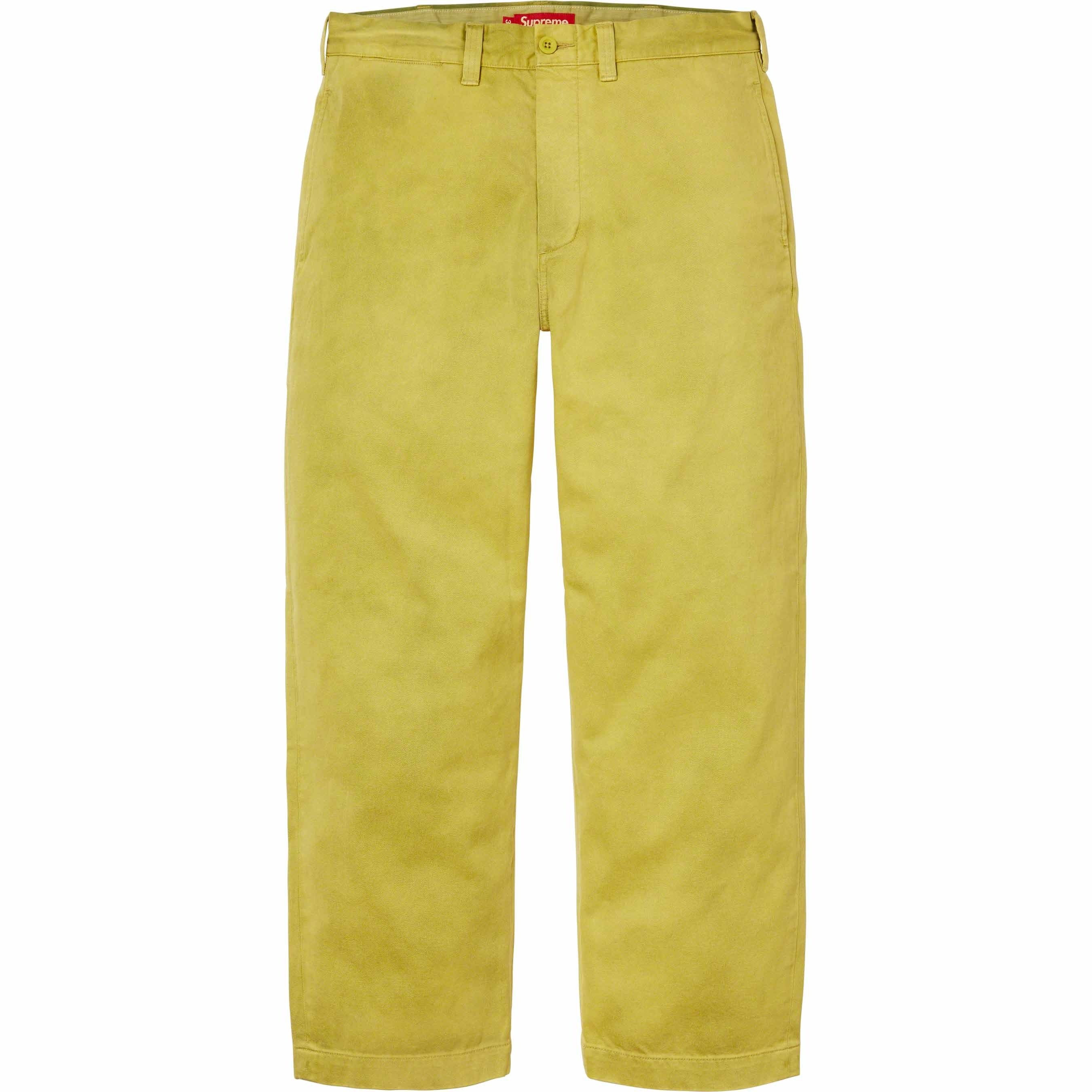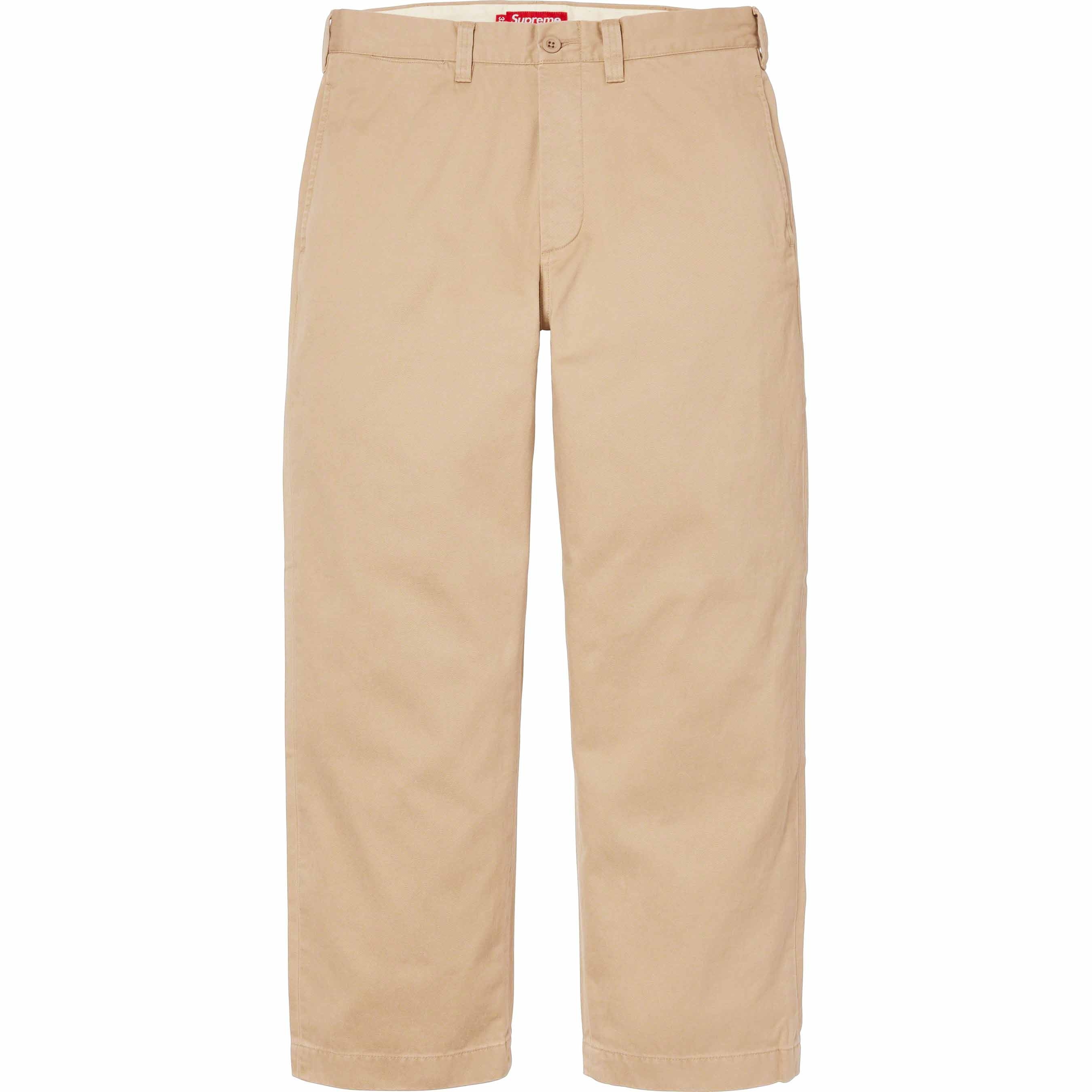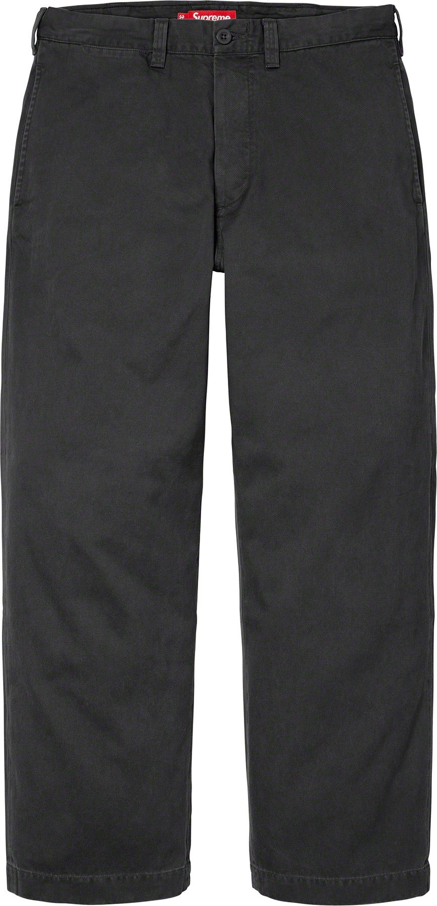 All cotton chino twill with enzyme wash. Relaxed fit with on seam hand pockets, welt back pockets, hidden coin pocket and button fly closure. Embroidered logo on back pocket.