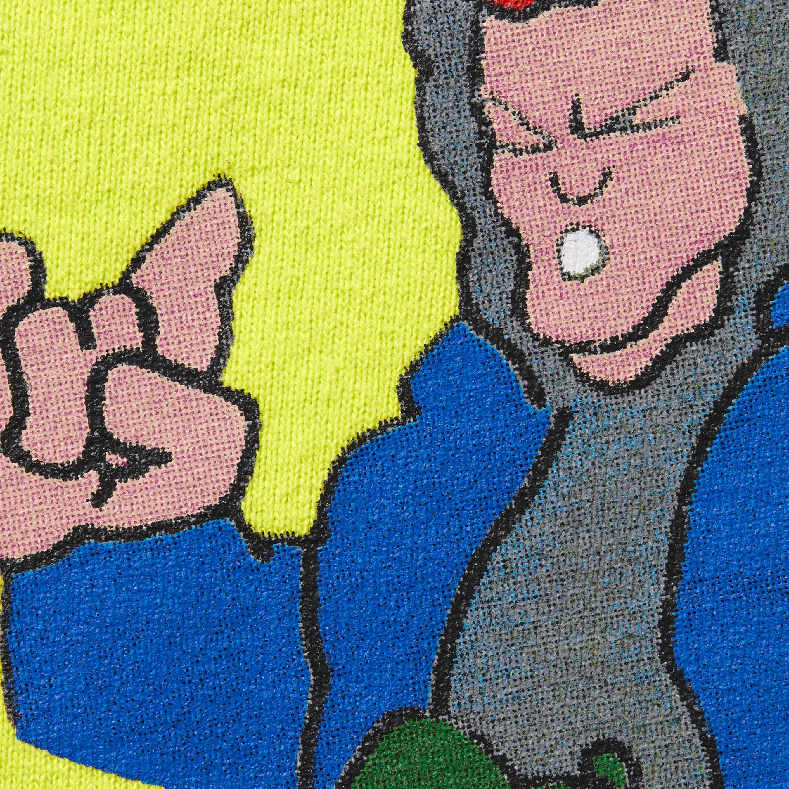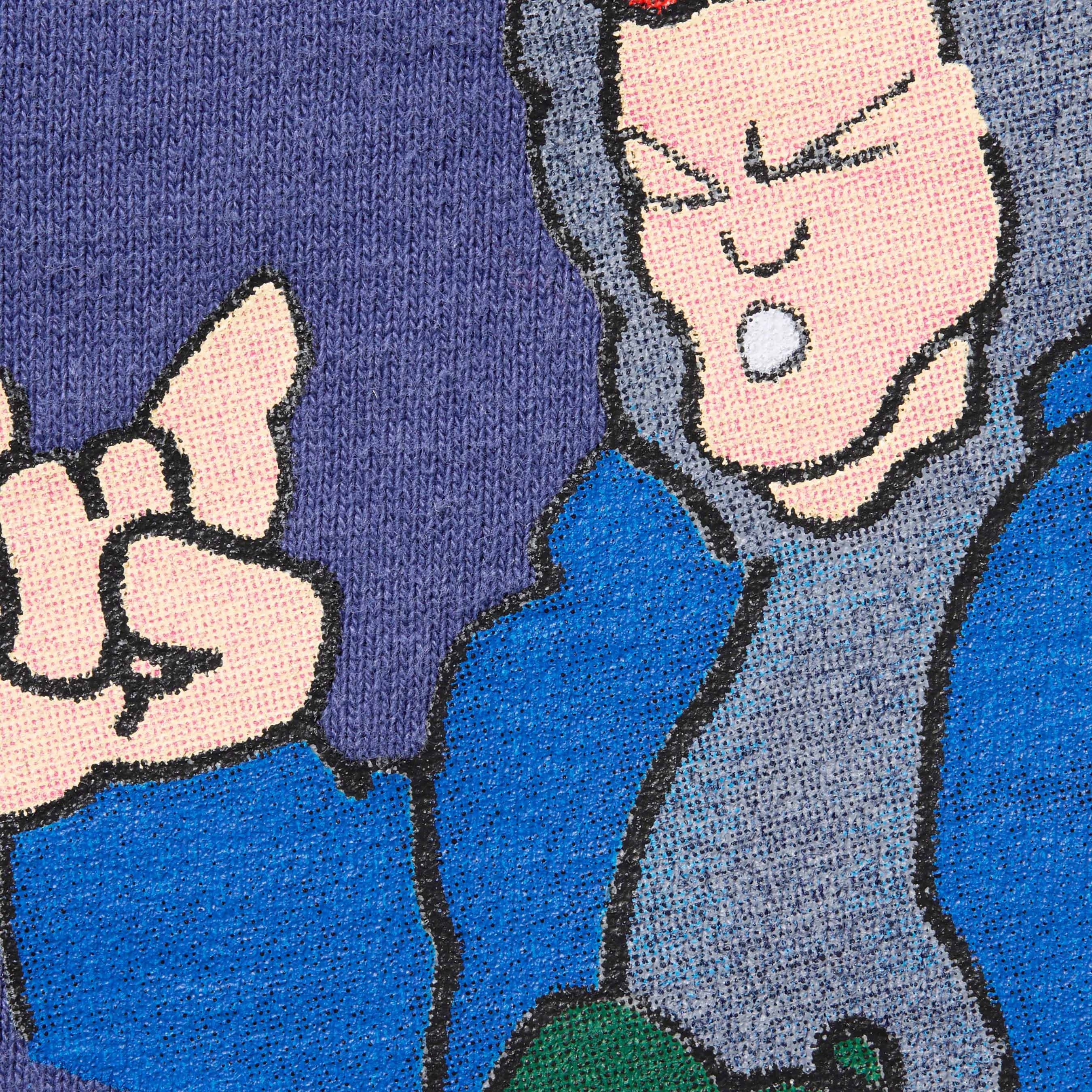 Brushed-back fleece with printed graphics on front and back. On seam hand pockets and single back patch pocket. Interior drawcord at elastic waistband and cuffs. Original artwork by Andre Thompson.