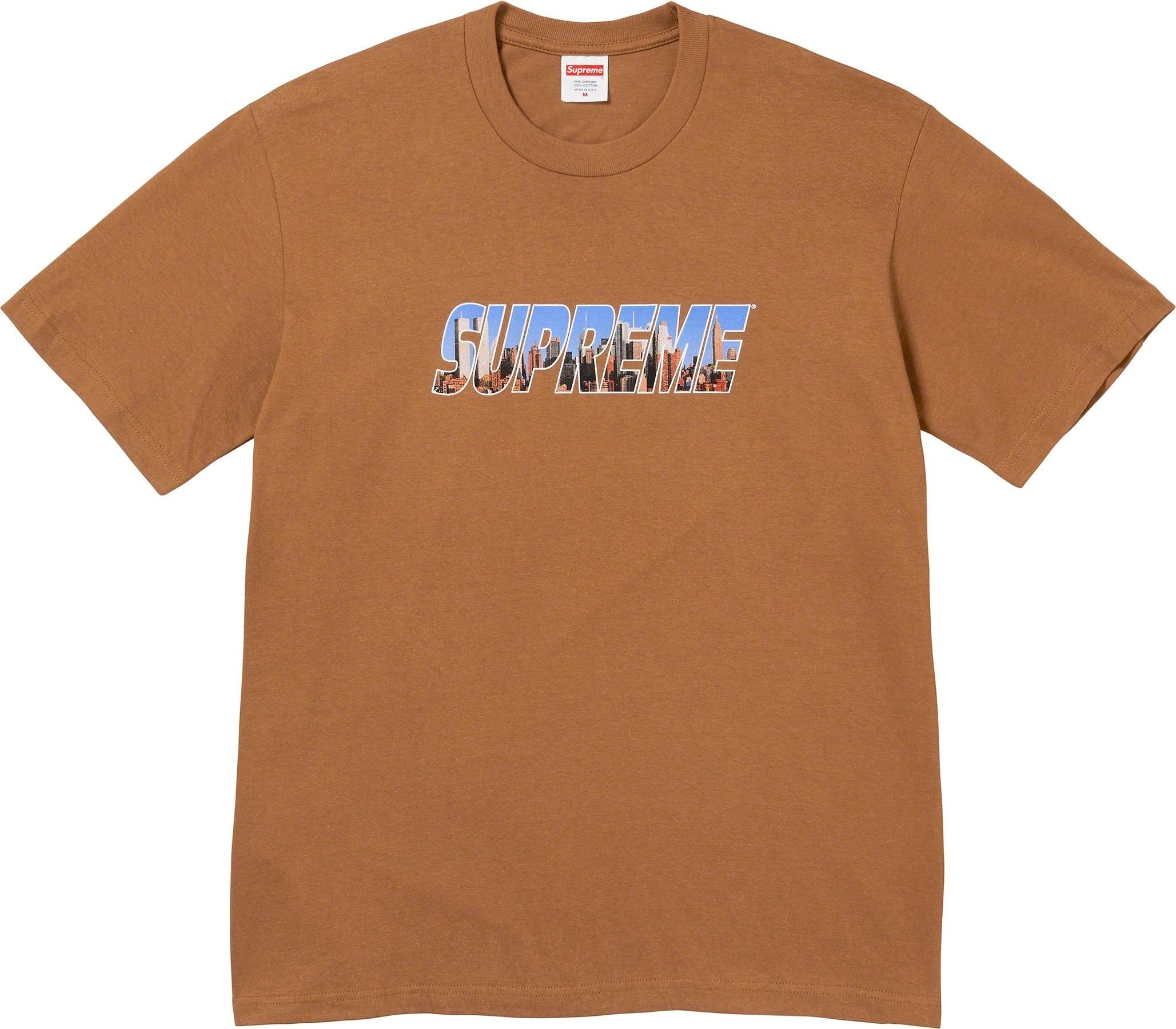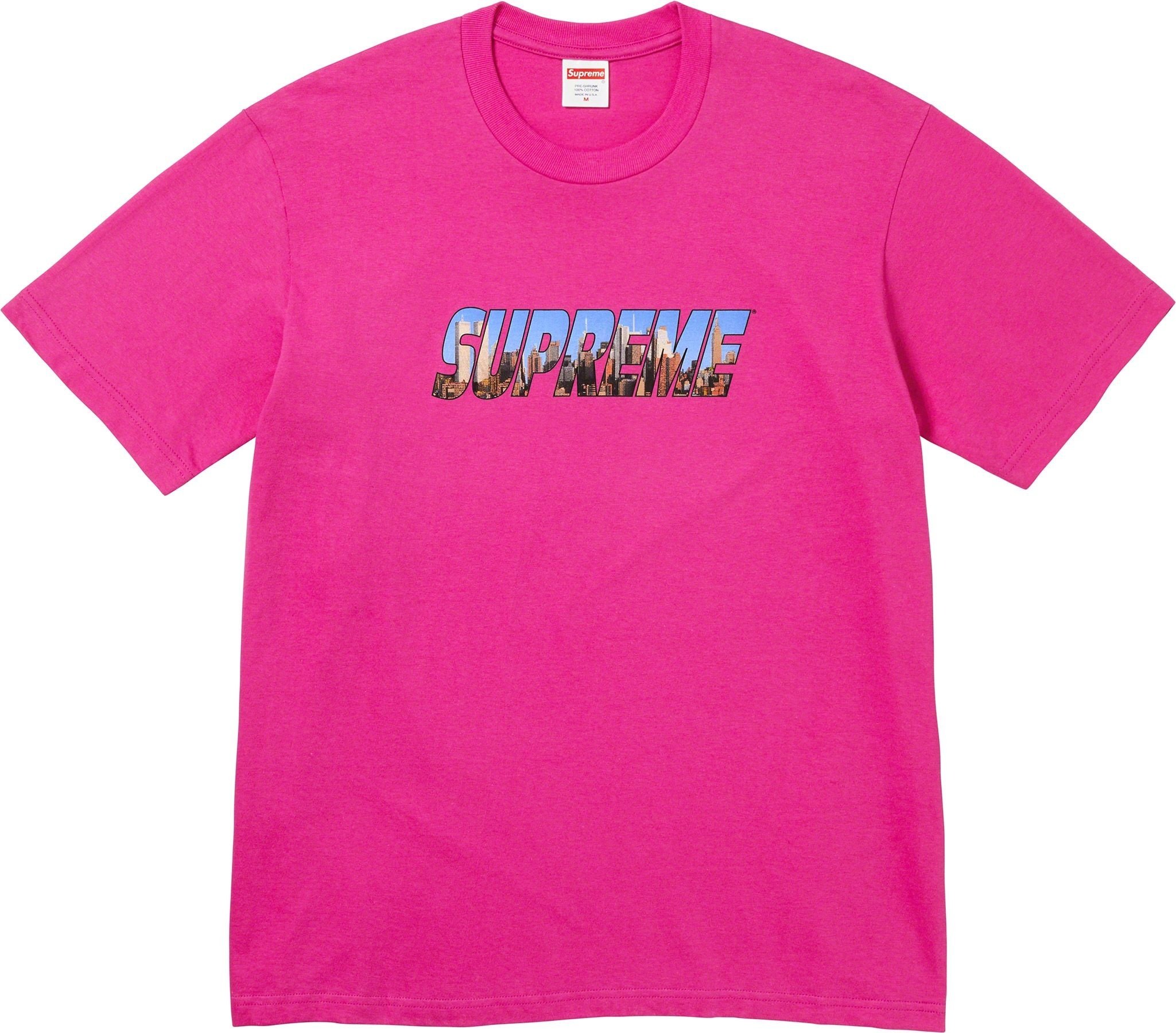 All cotton classic Supreme t-shirt with printed logo on front.