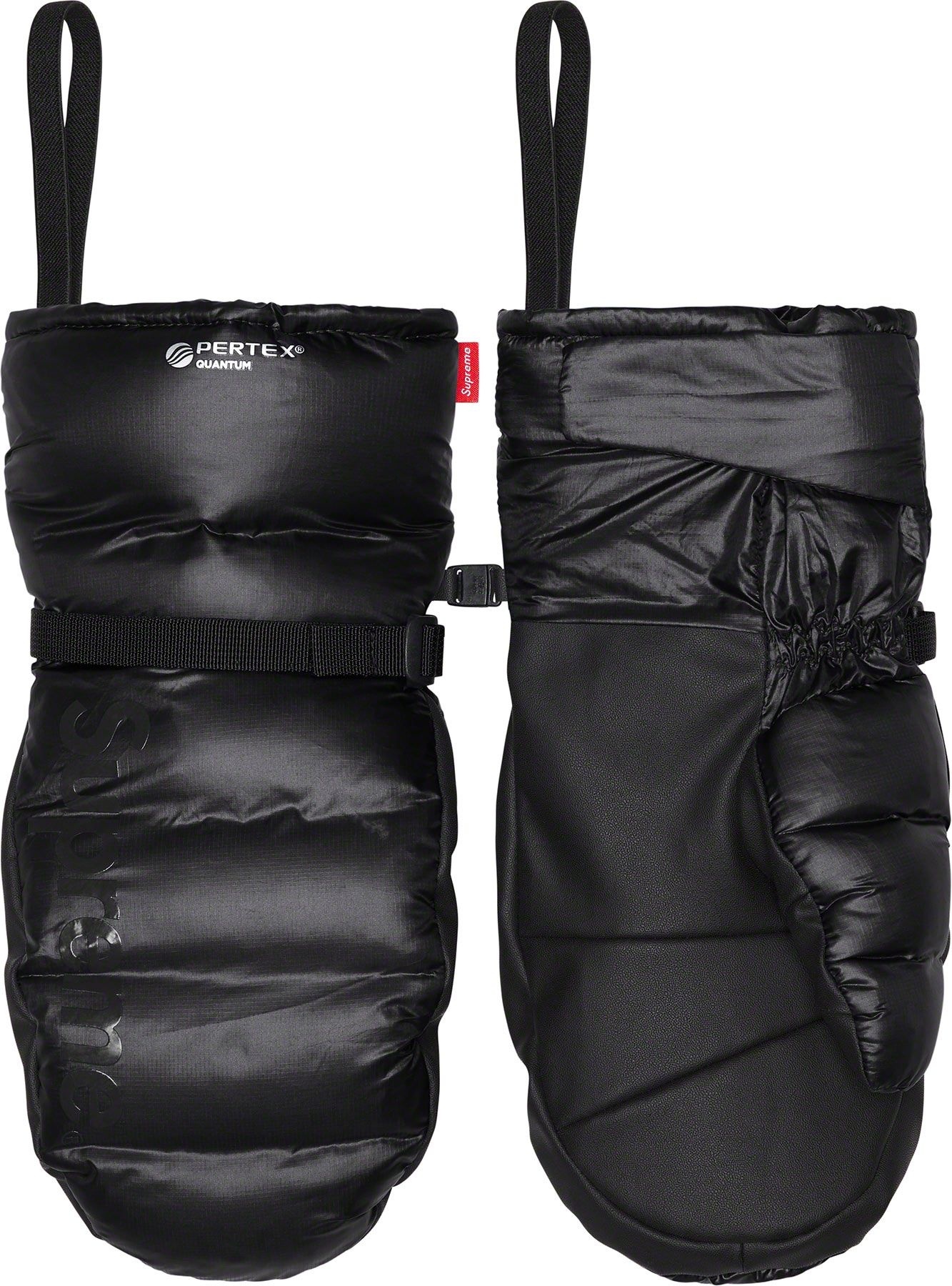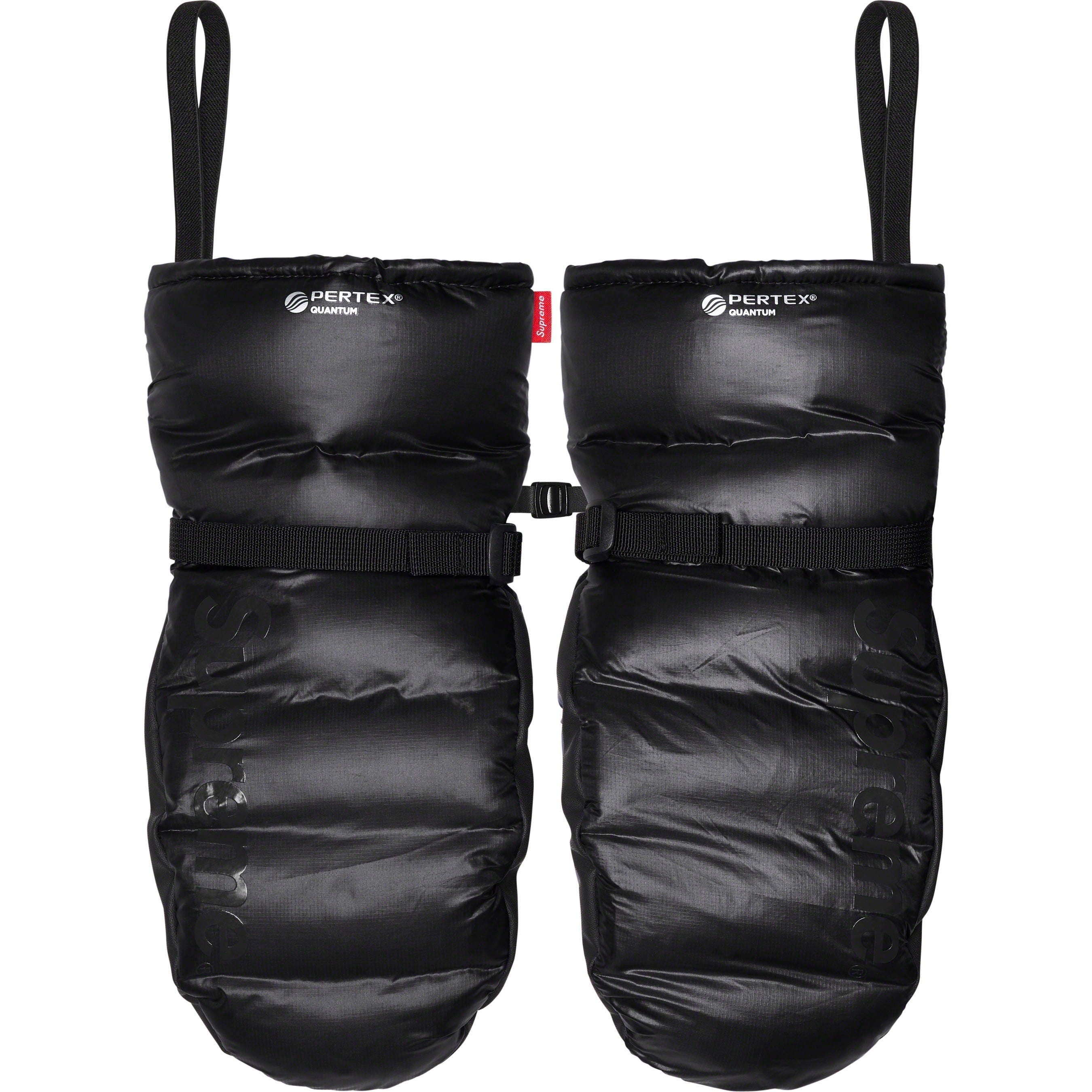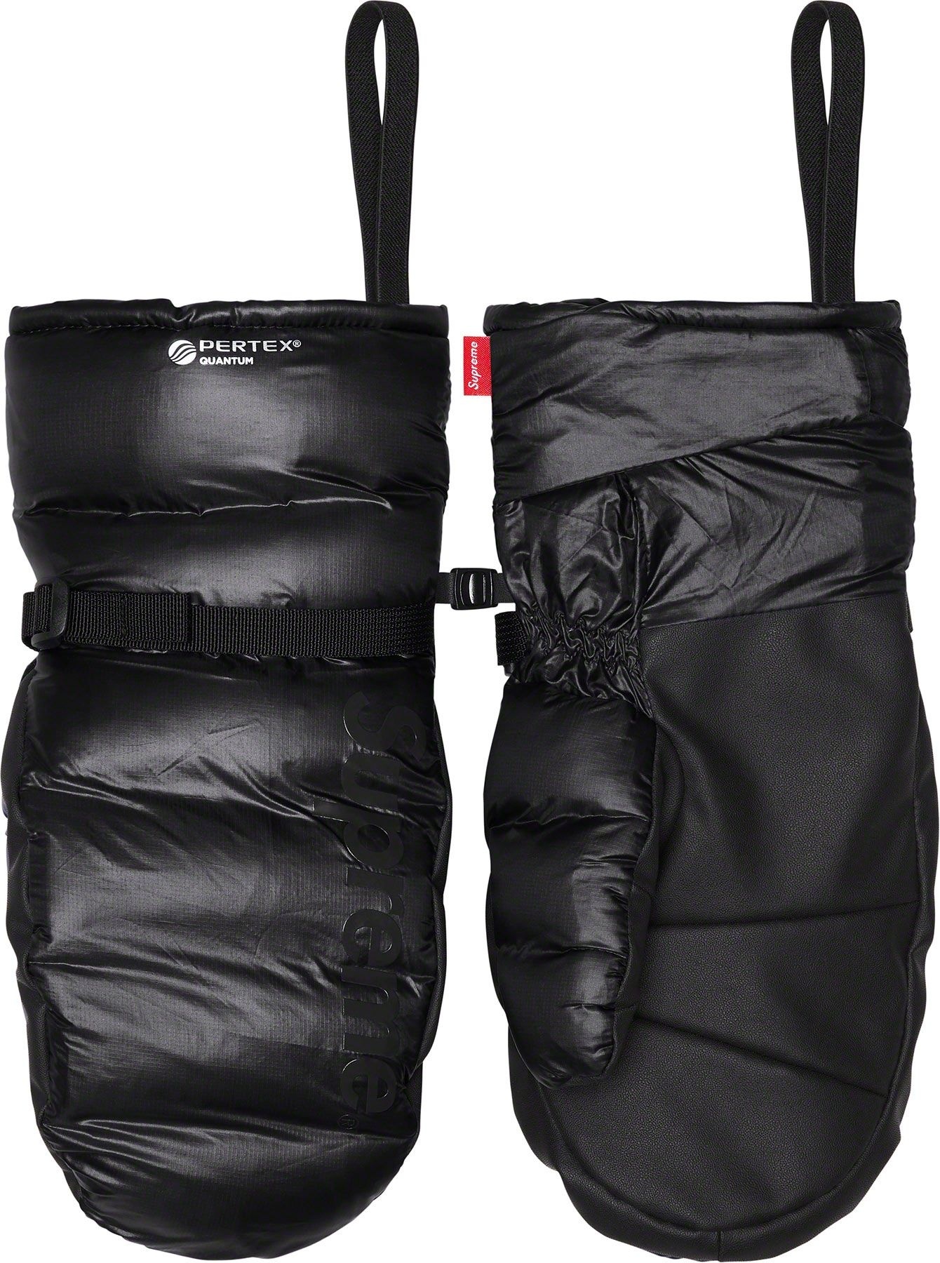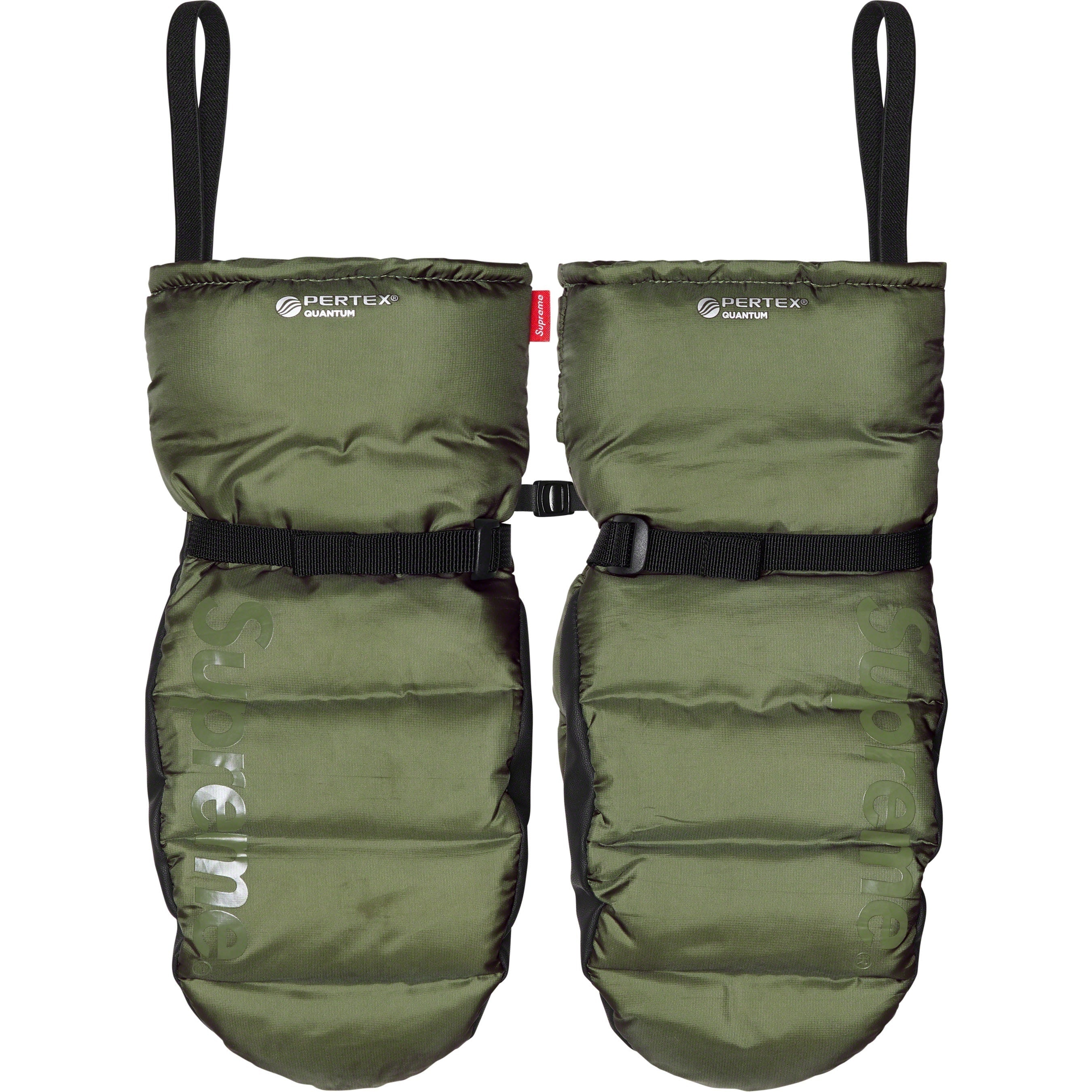 Water resistant Pertex® nylon with down insulation. Webbing strap and velcro flap closure at wrist. Printed logos on top and wrist.
