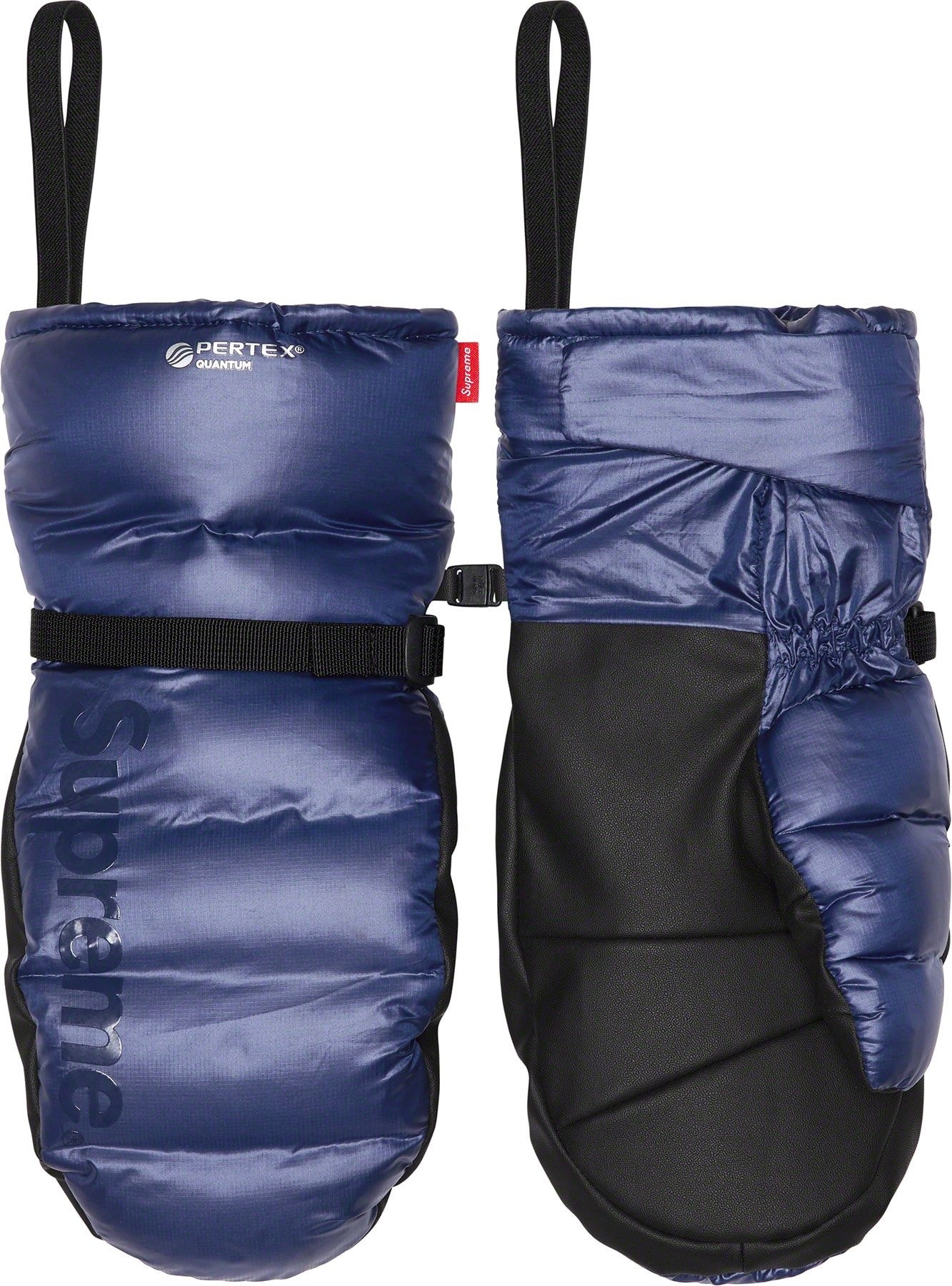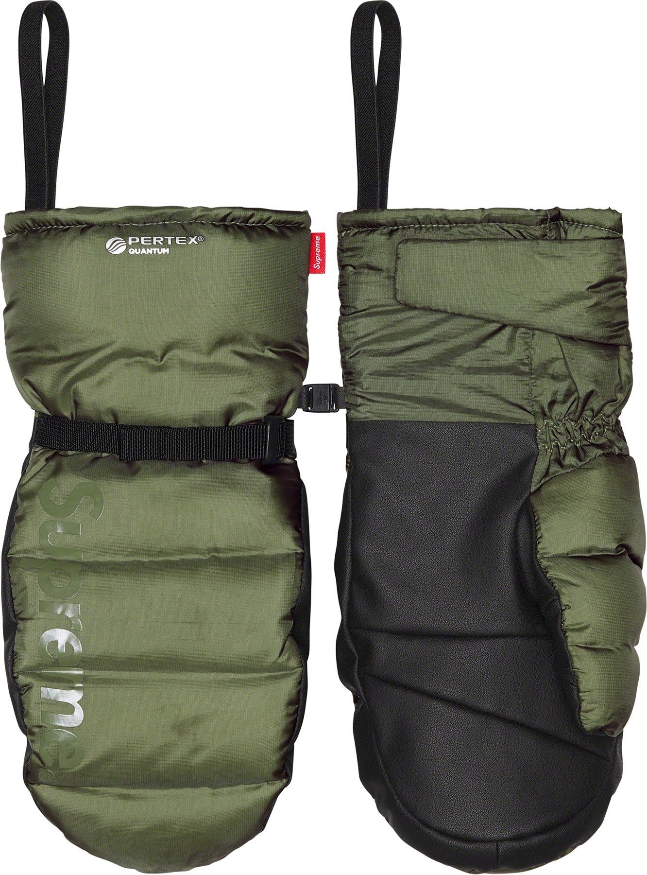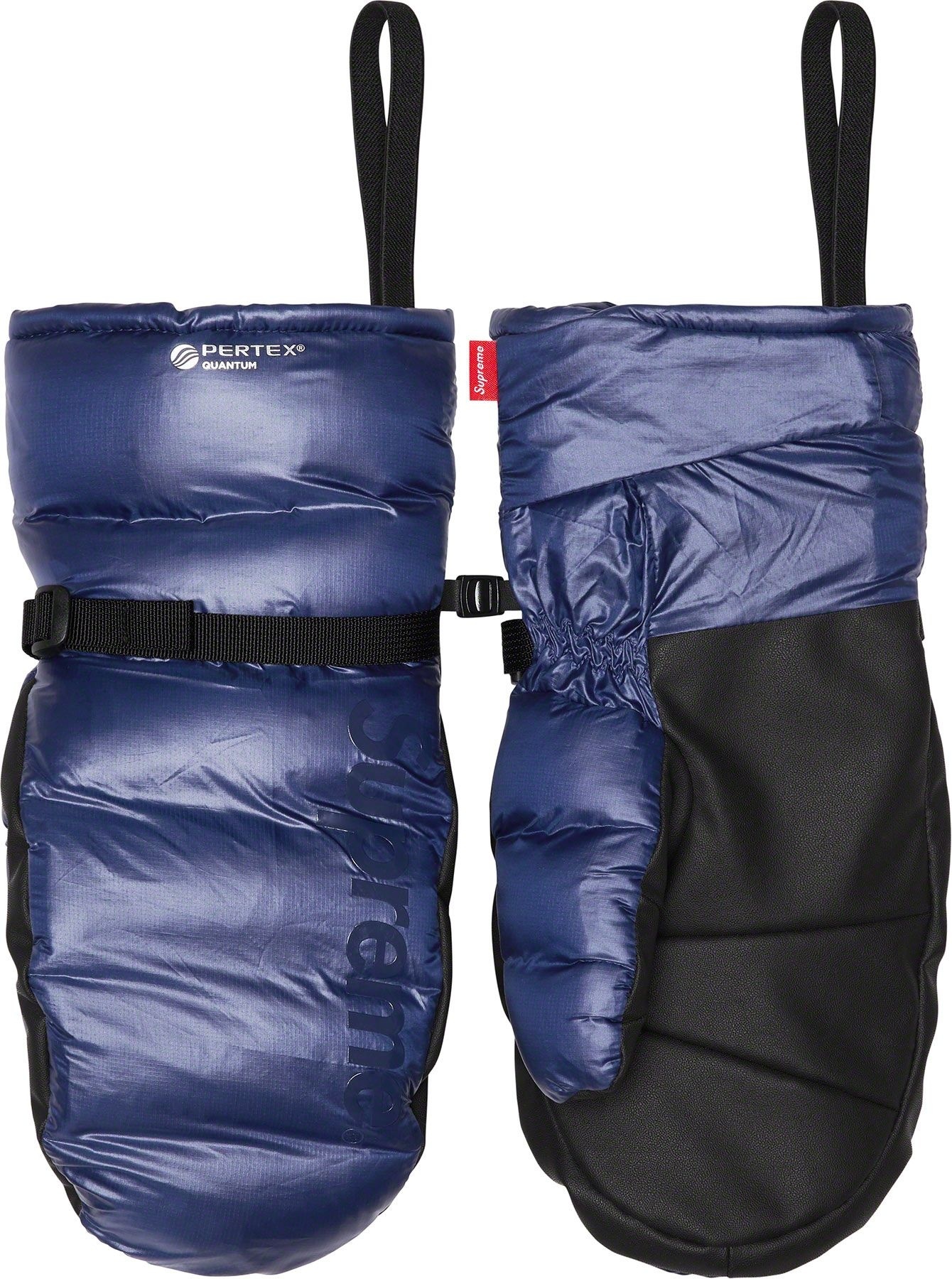 Water resistant Pertex® nylon with down insulation. Webbing strap and velcro flap closure at wrist. Printed logos on top and wrist.