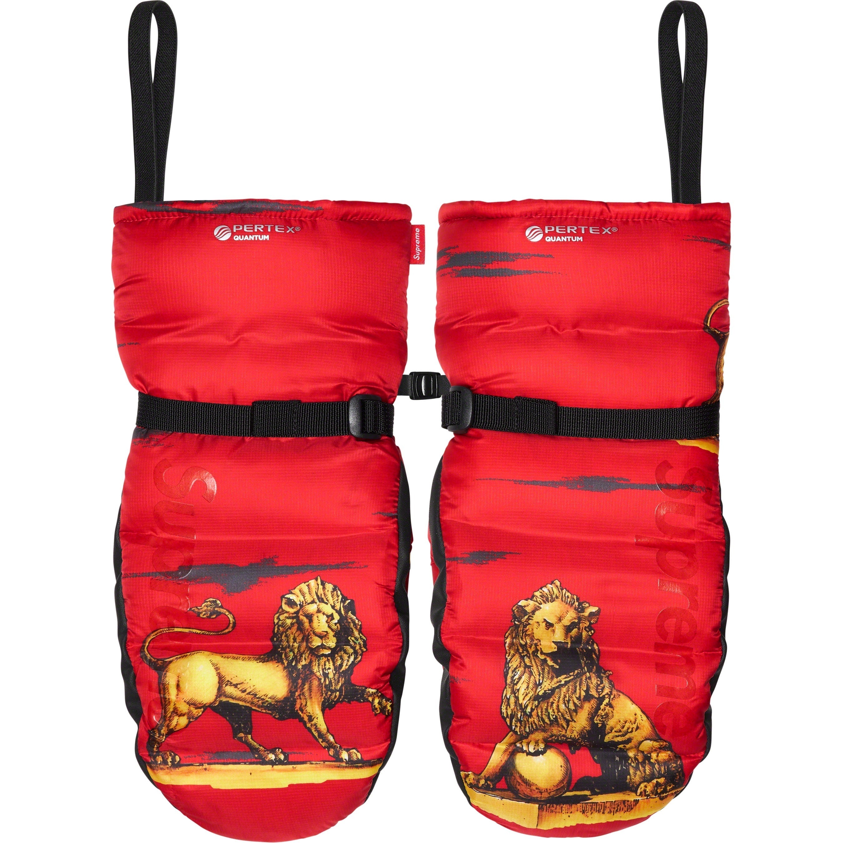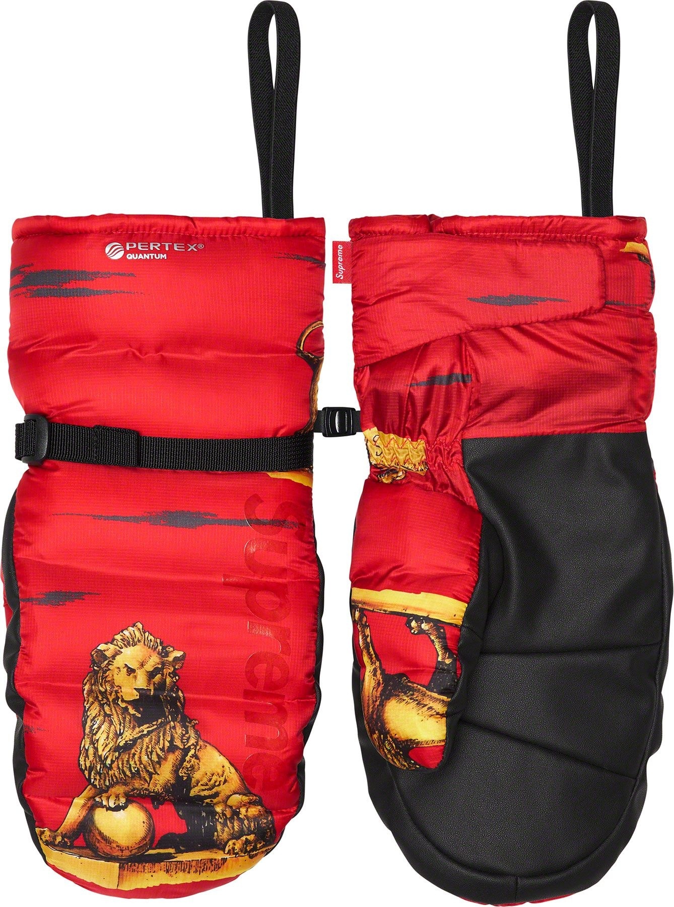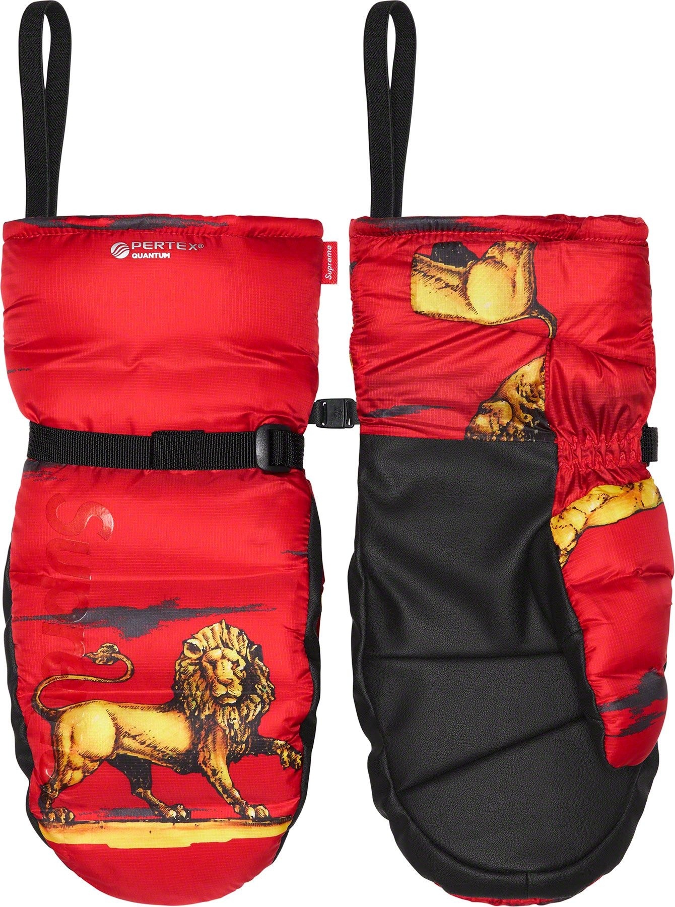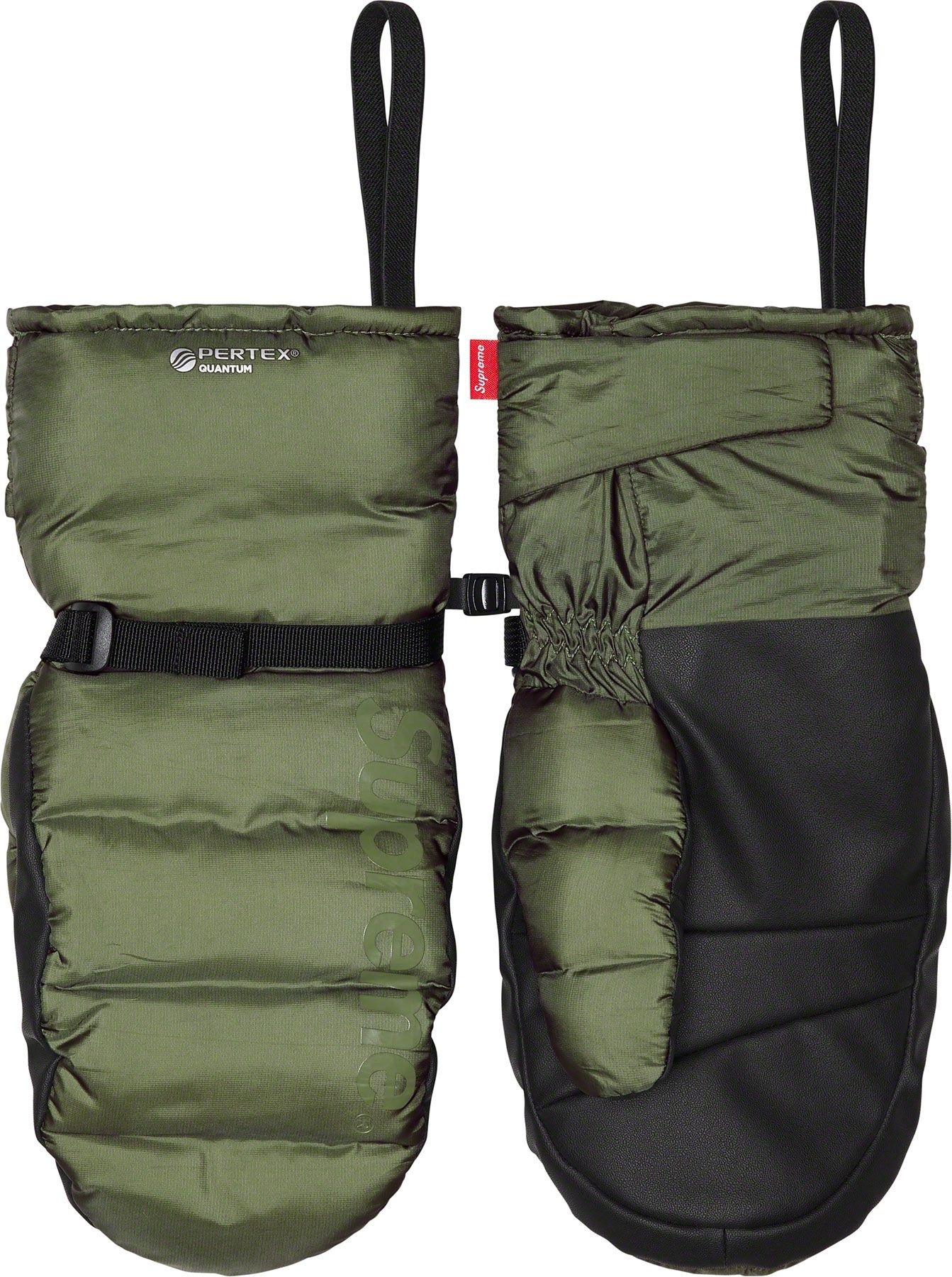 Water resistant Pertex® nylon with down insulation. Webbing strap and velcro flap closure at wrist. Printed logos on top and wrist.