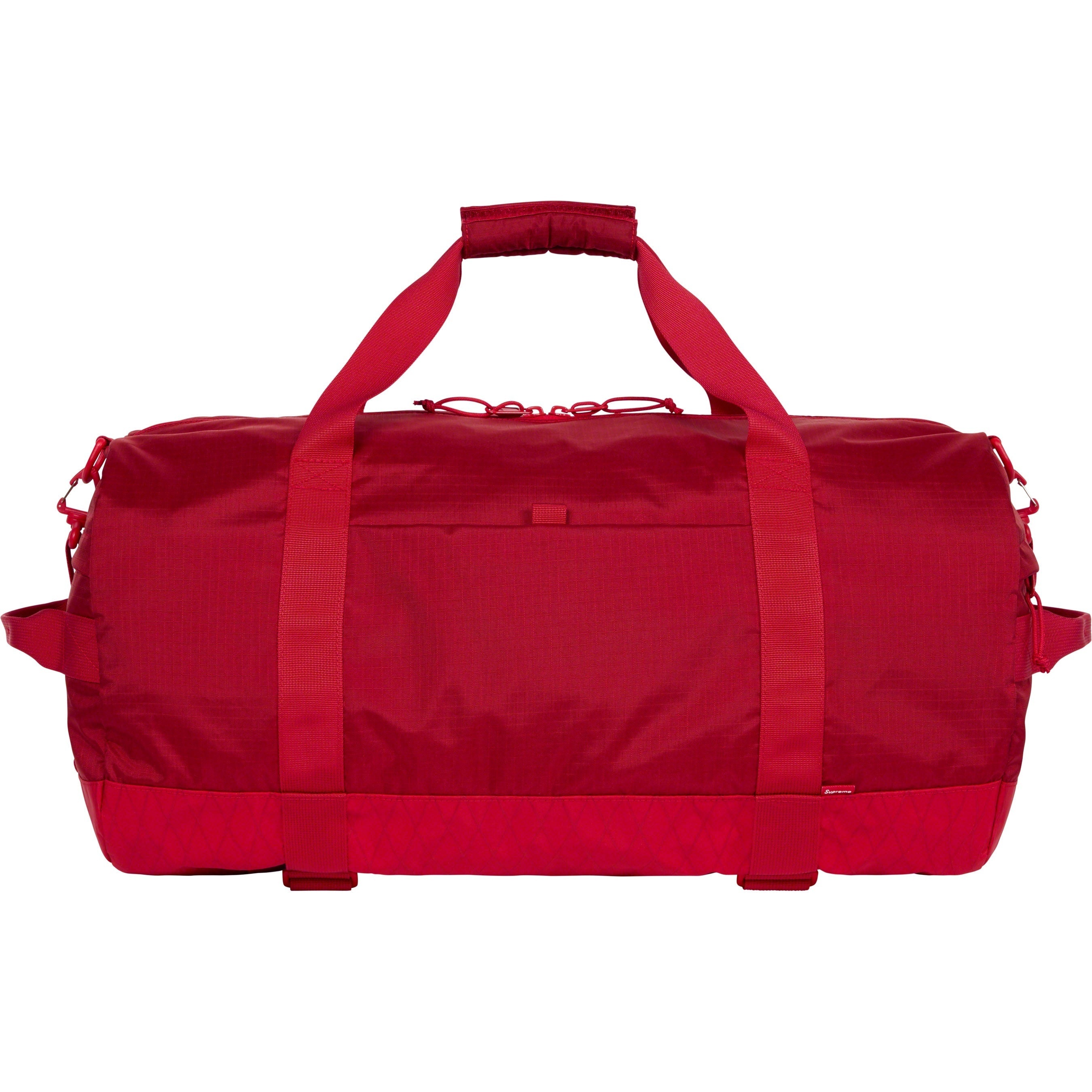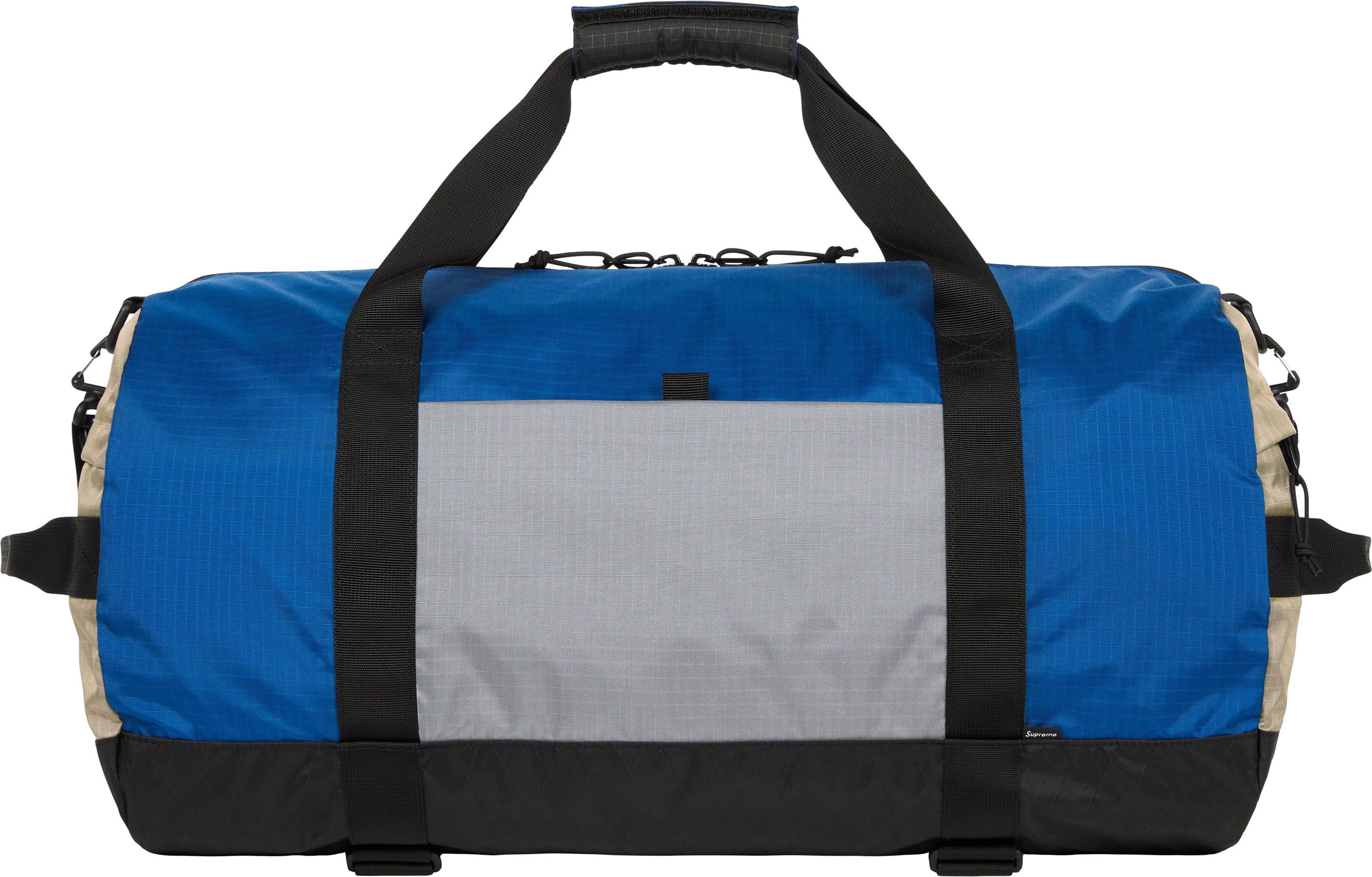 Water resistant nylon ripstop with X-Pac® laminated base and embossed logo lining. Main zip compartment with interior zip mesh pocket. Velcro mesh pouch pocket at front and velcro stash pocket at back. Zip pockets at sides. Adjustable shoulder strap and webbing handles with velcro closure. Velcro straps at bottom for skateboard carry. 3M® Reflective molded logo webbing and woven logo label at front. 42L.