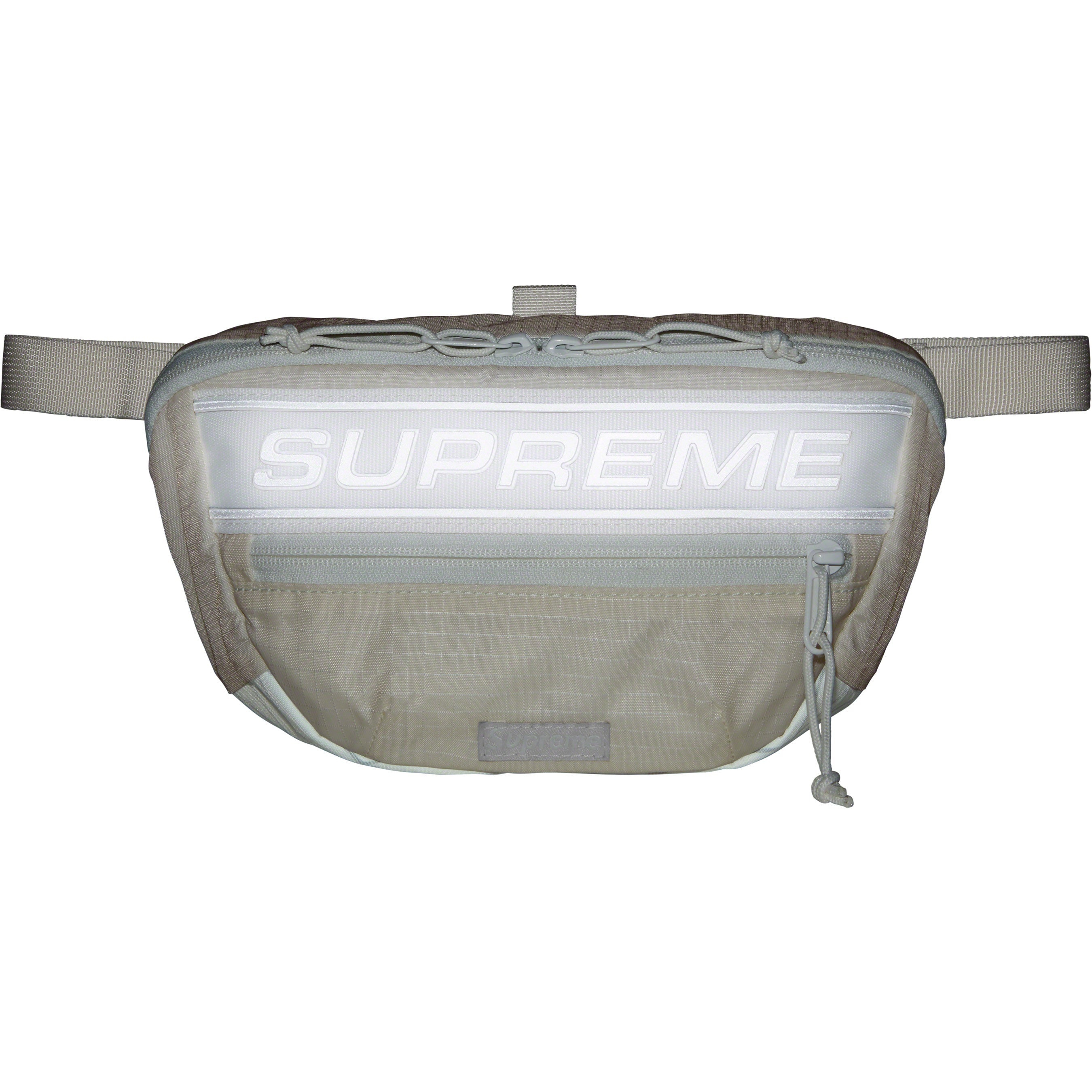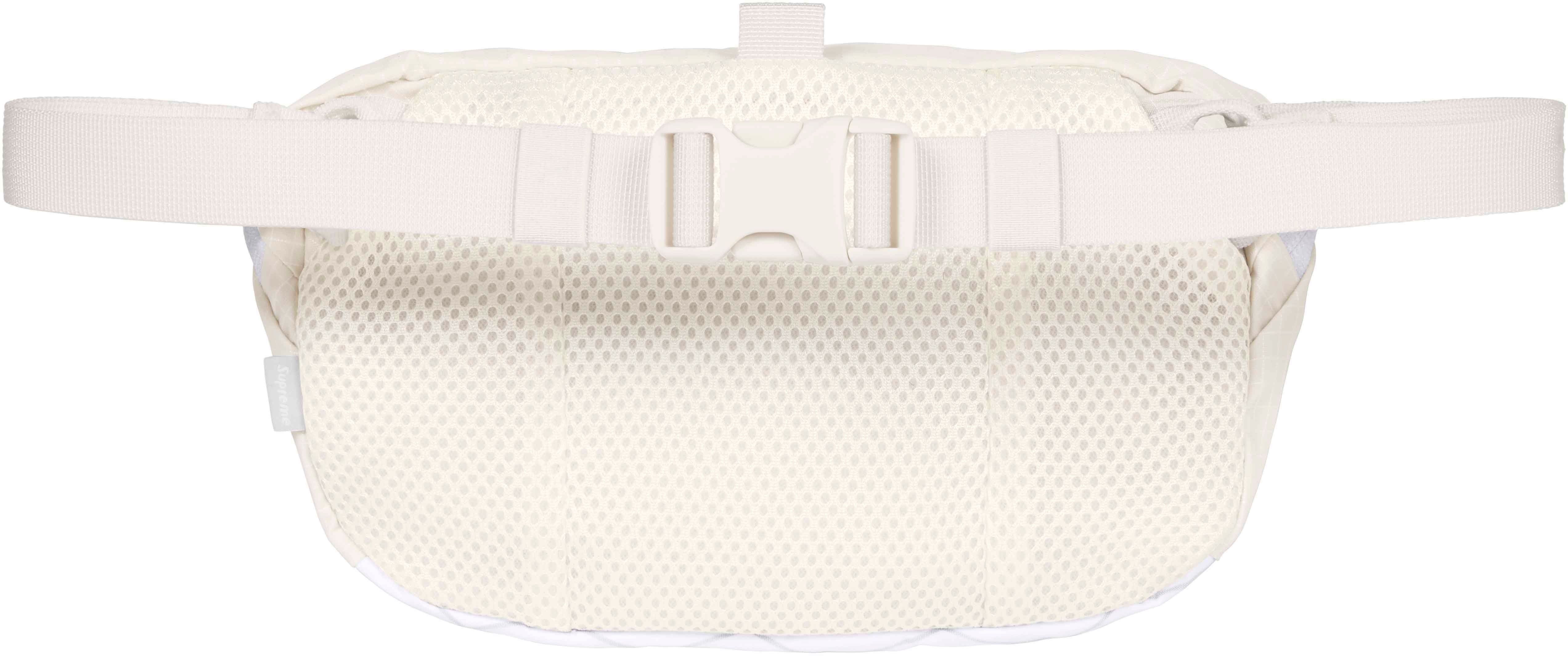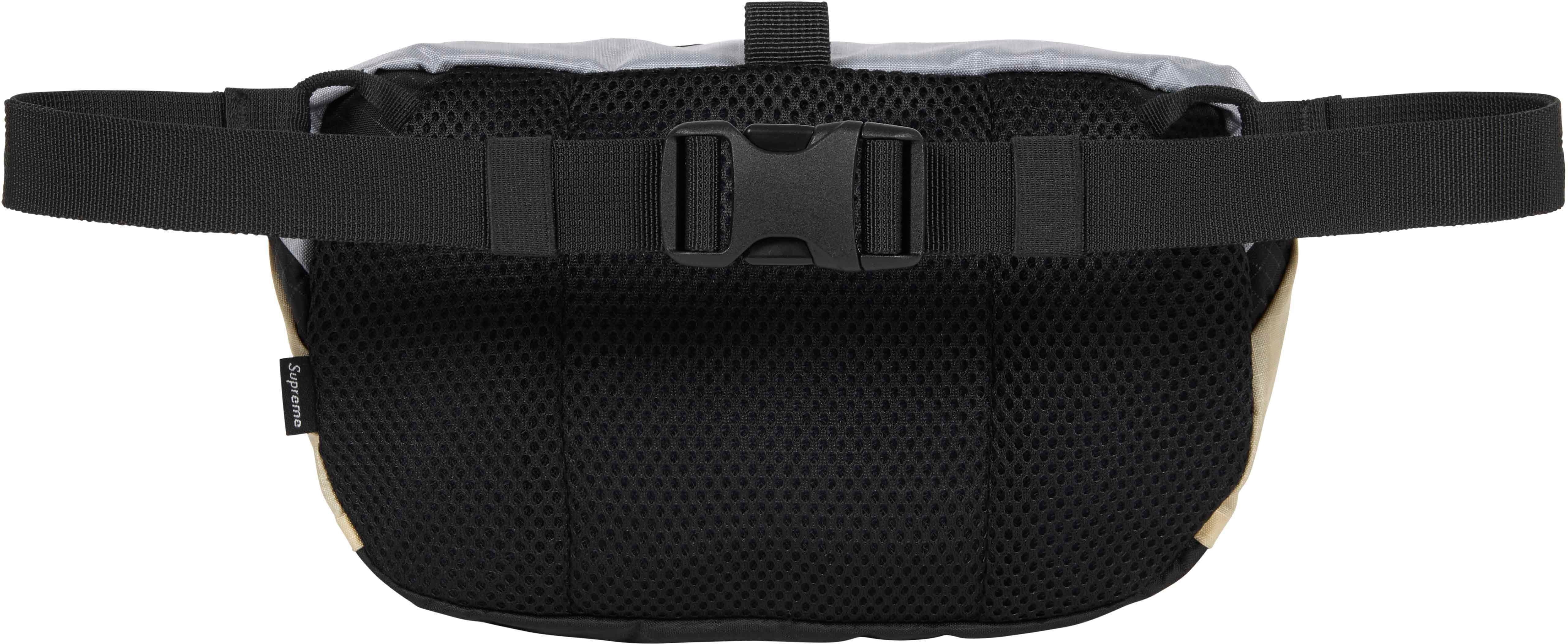 Water resistant nylon ripstop with X-Pac® laminated base and embossed logo lining. Main zip compartment with interior mesh zip pocket and organizer pocket. Zip pocket at front and stash pocket at back. Padded mesh back panel with adjustable waist strap and buckle closure. 3M® Reflective molded logo webbing and woven logo label at front. 3L.