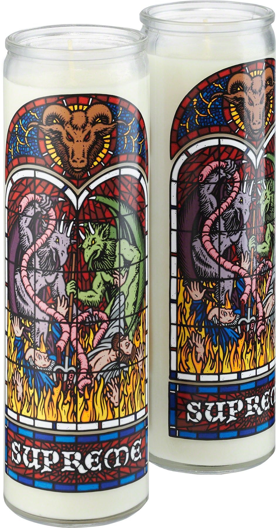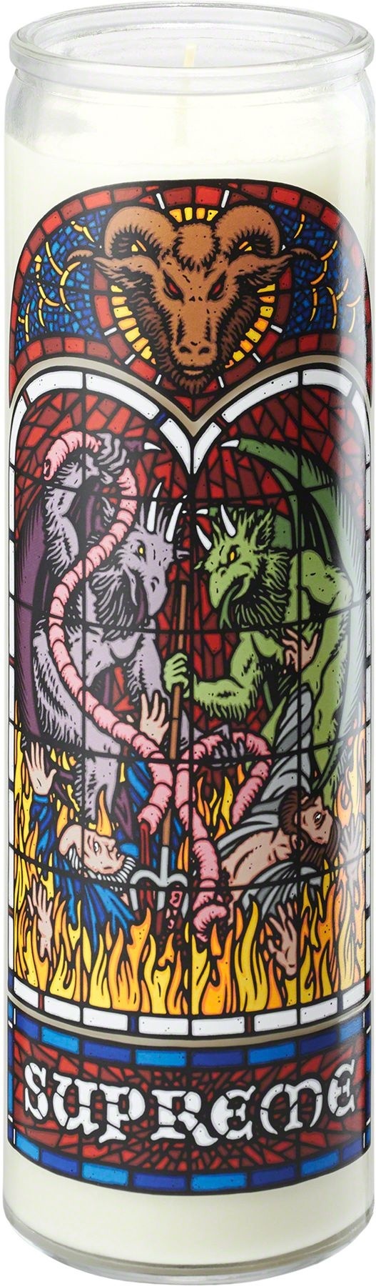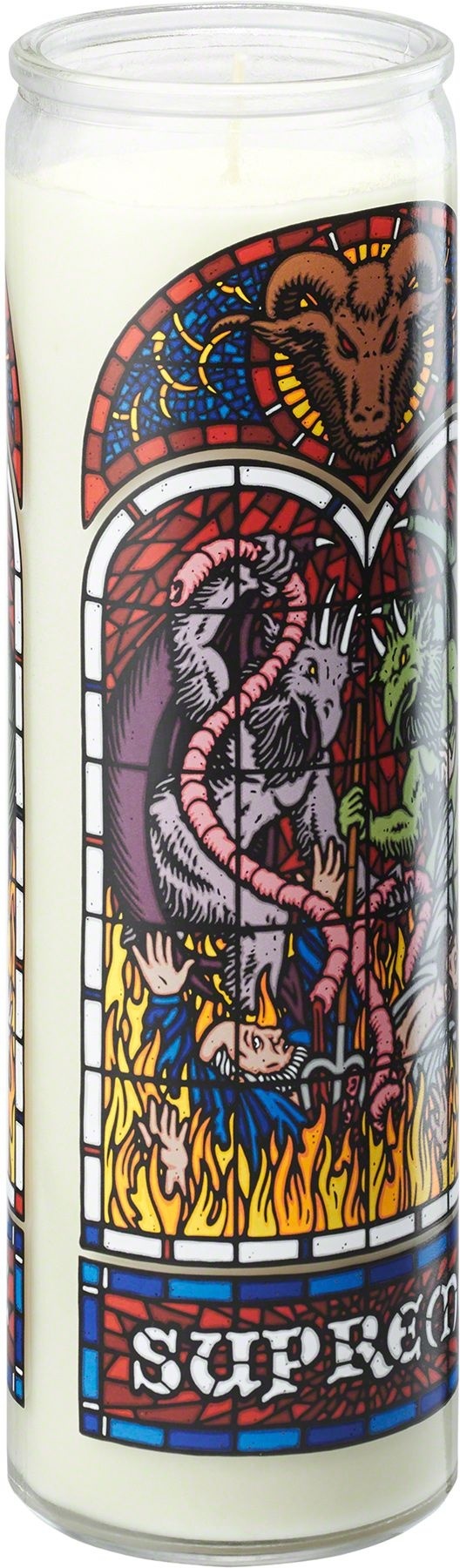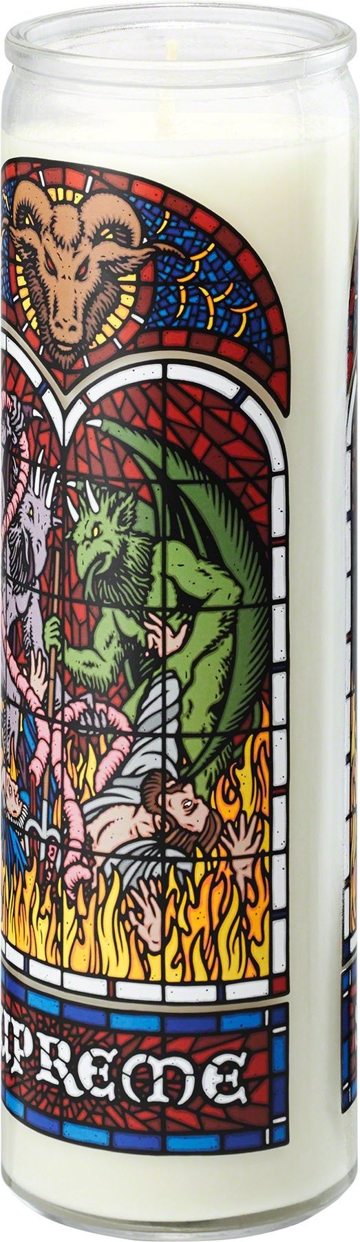 Soy candle with printed graphic on glass candle holder. 8". Original artwork by Sean Cliver.