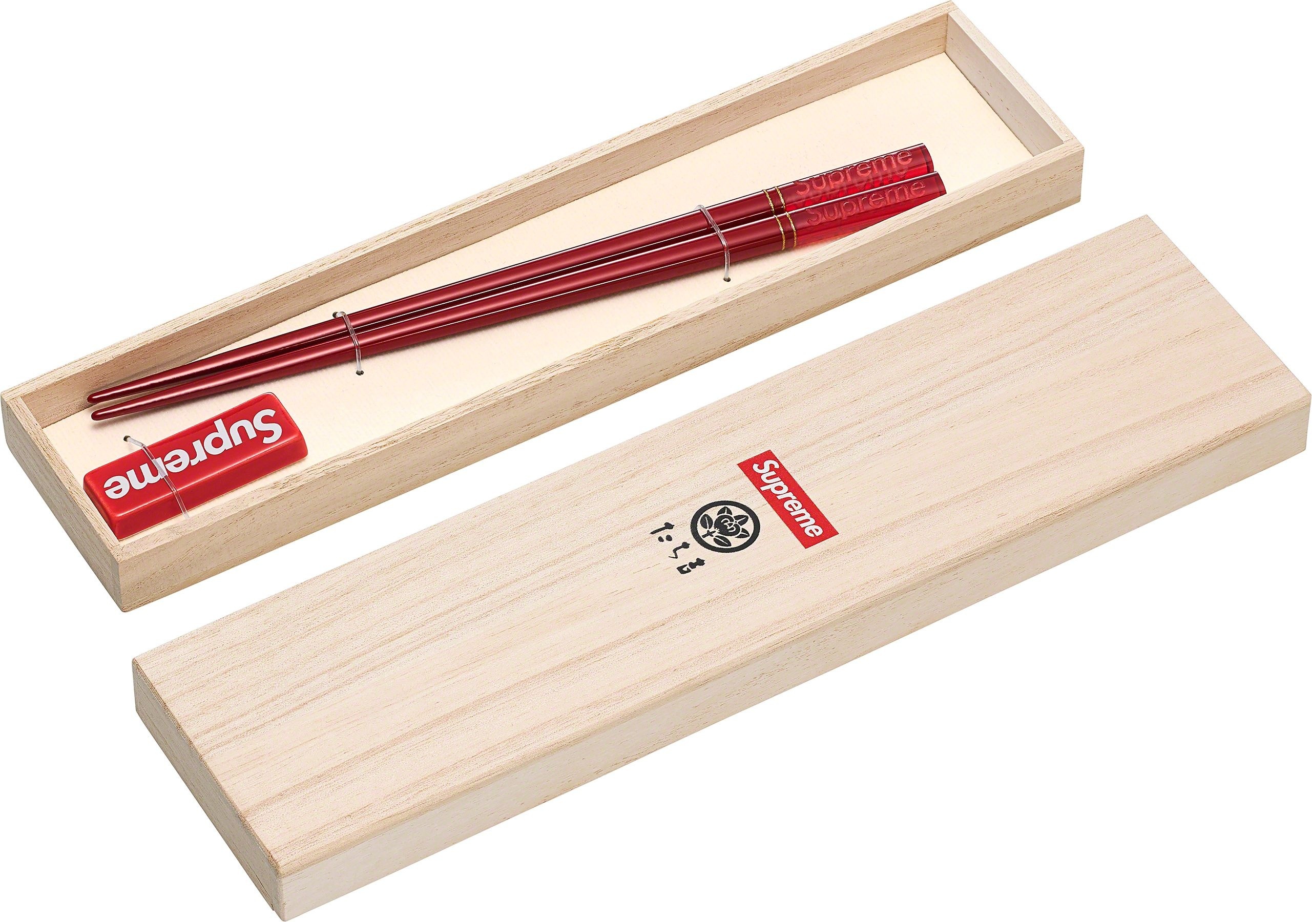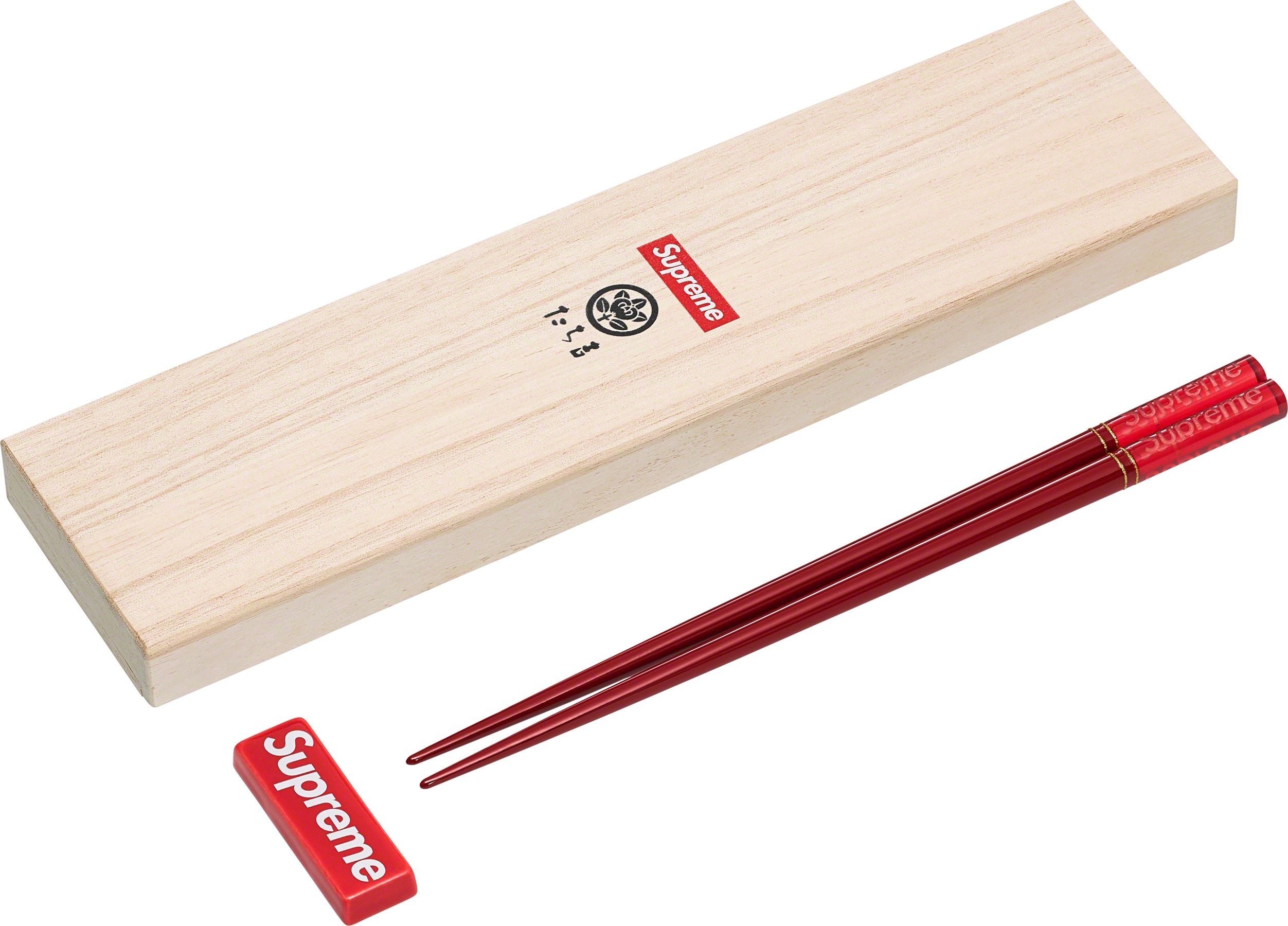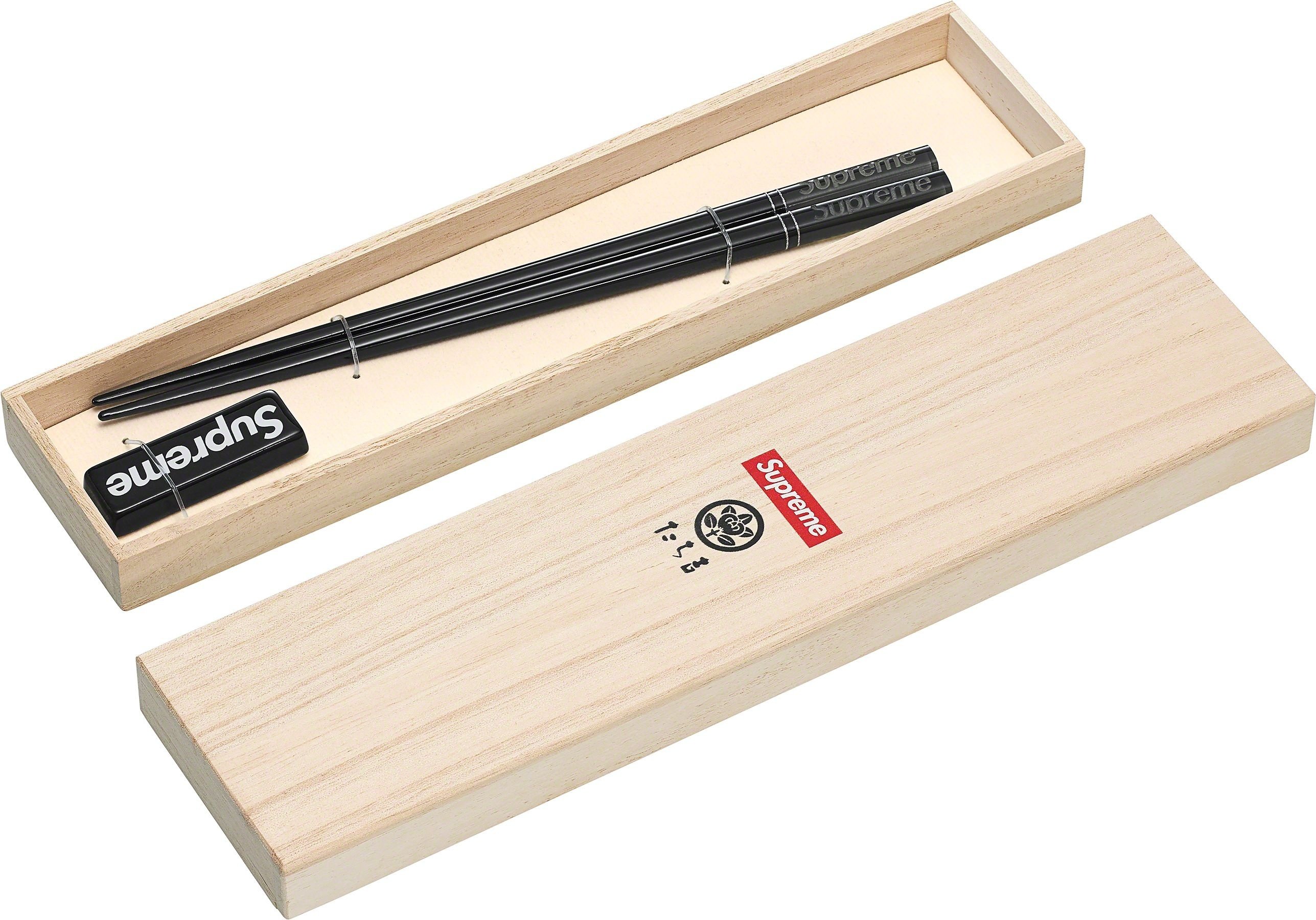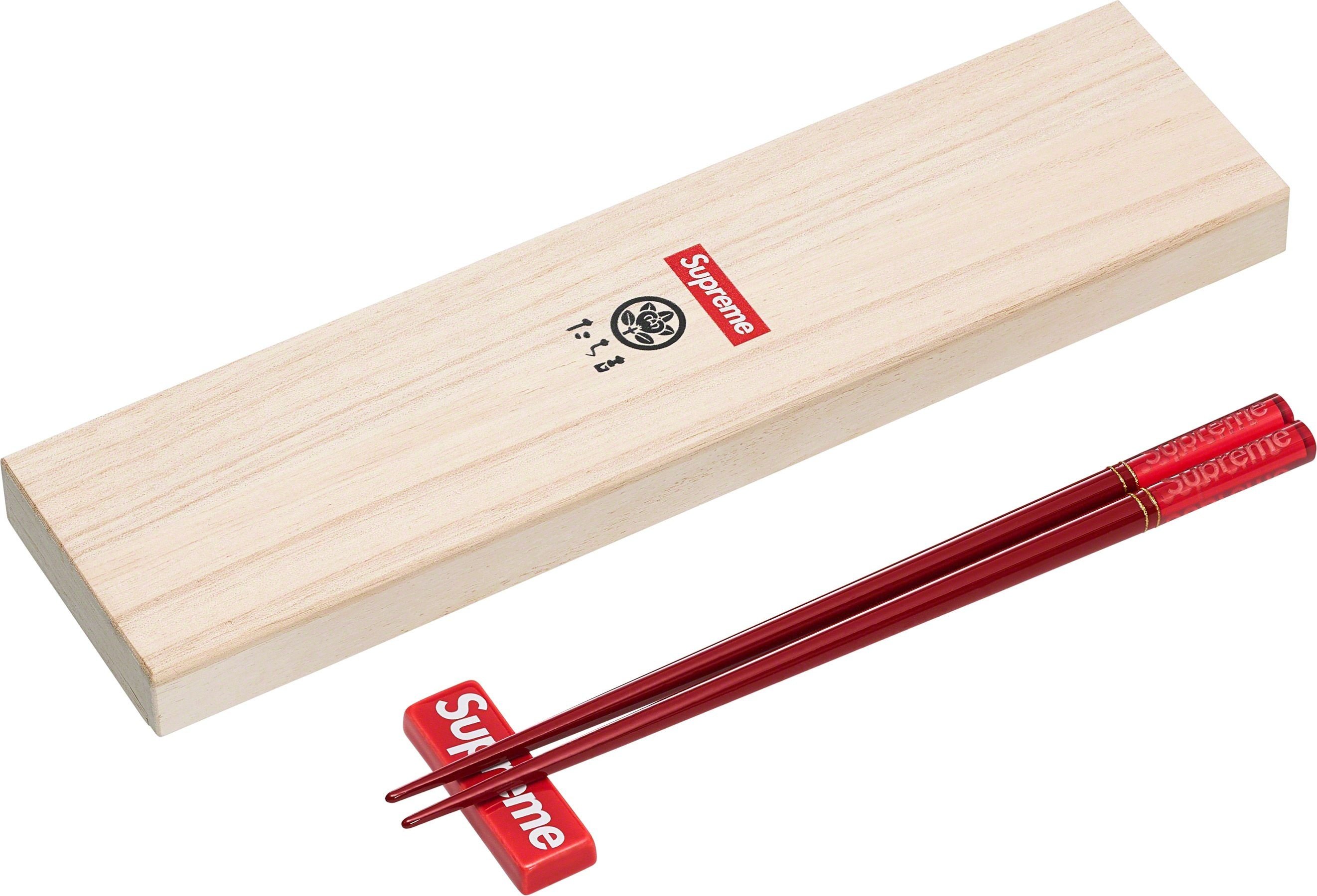 8.3" chopsticks with engraved logo. 2.1" porcelain logo chopstick rest and printed logo box. Sold as a set.