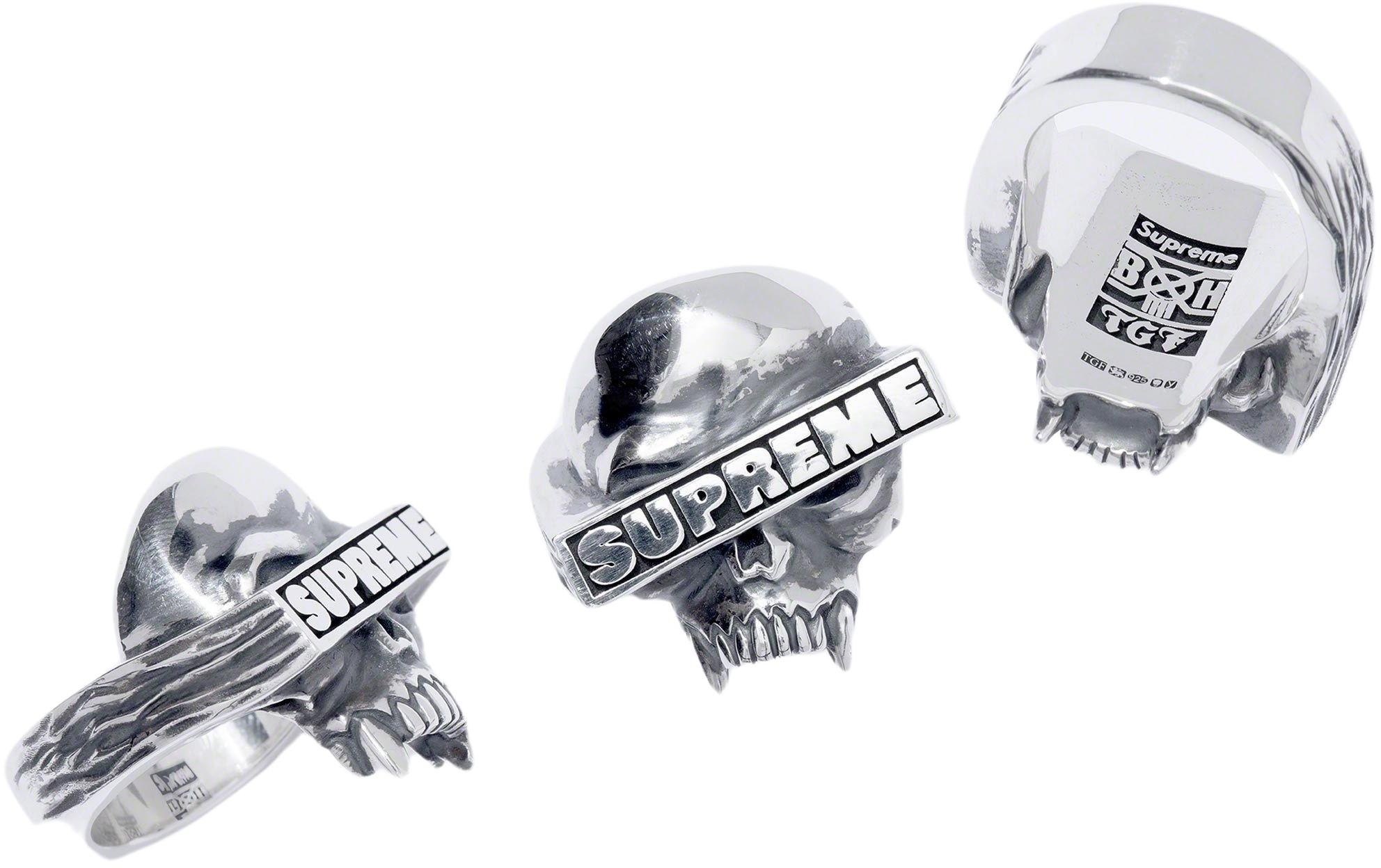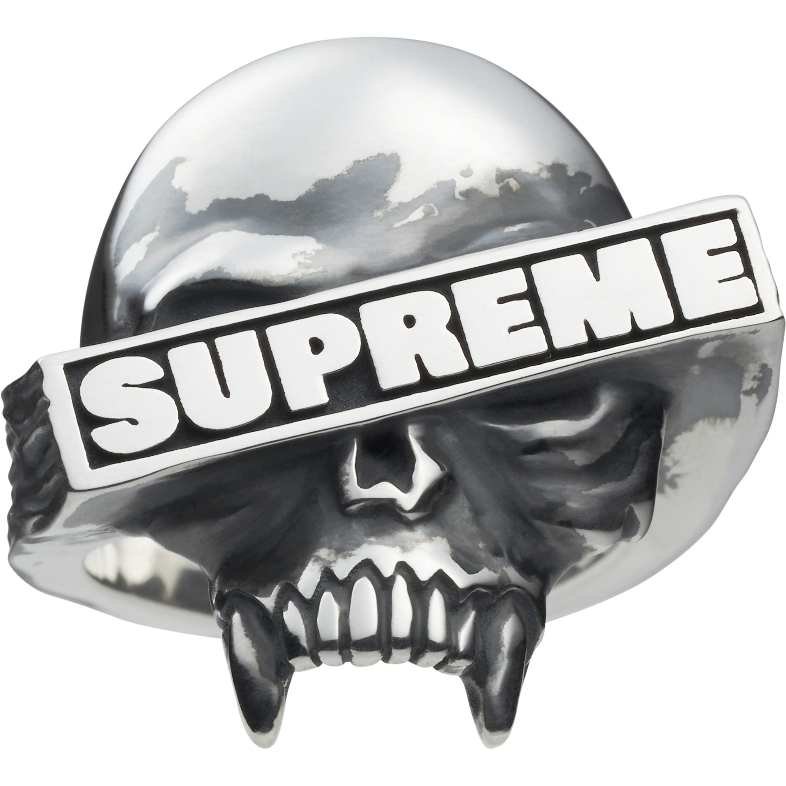 Sterling silver ring with molded graphic and stamped logo on back. “Made by The Great Frog exclusively for Supreme.”