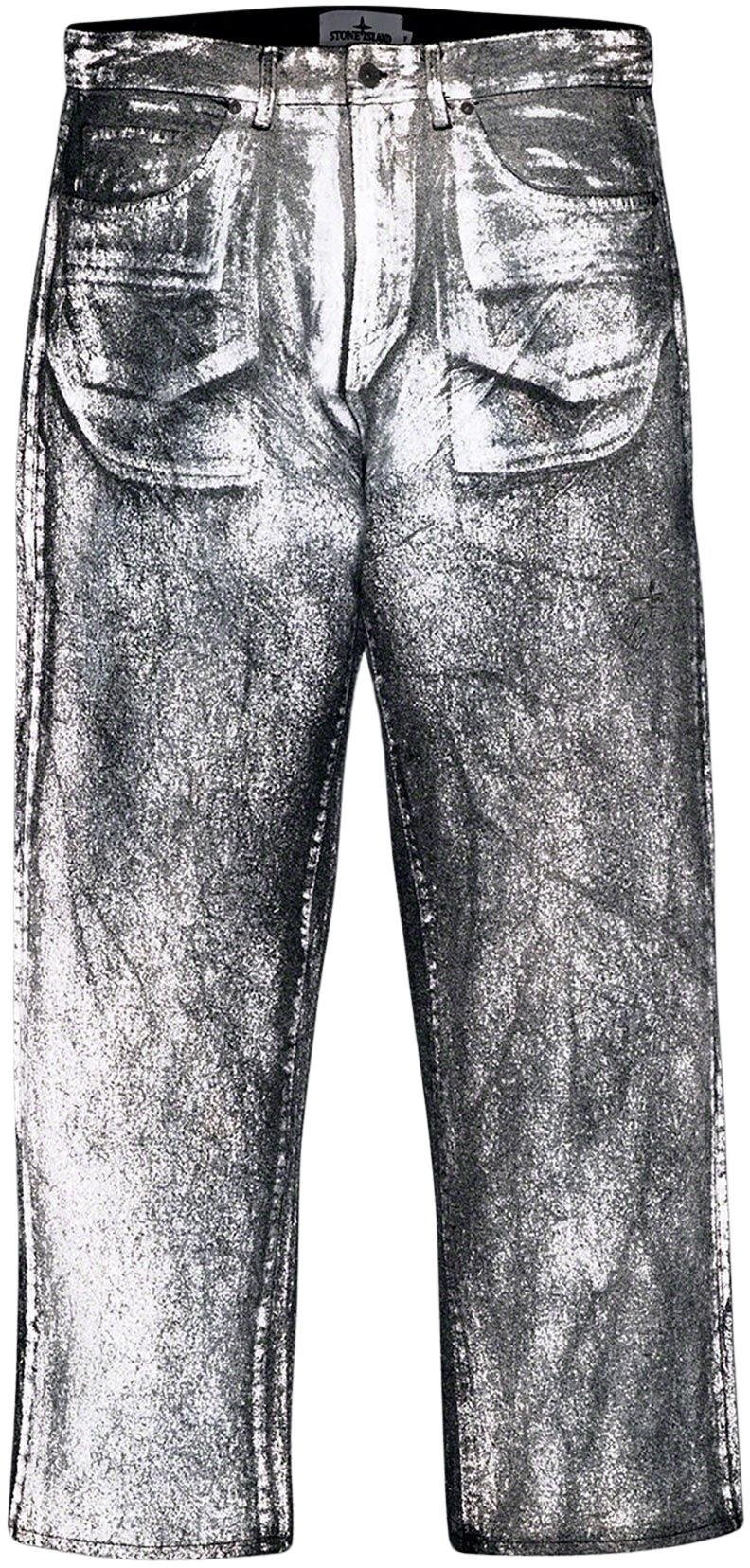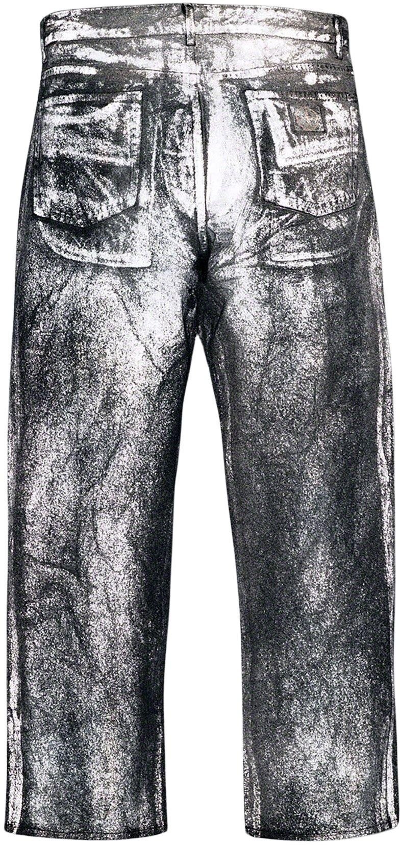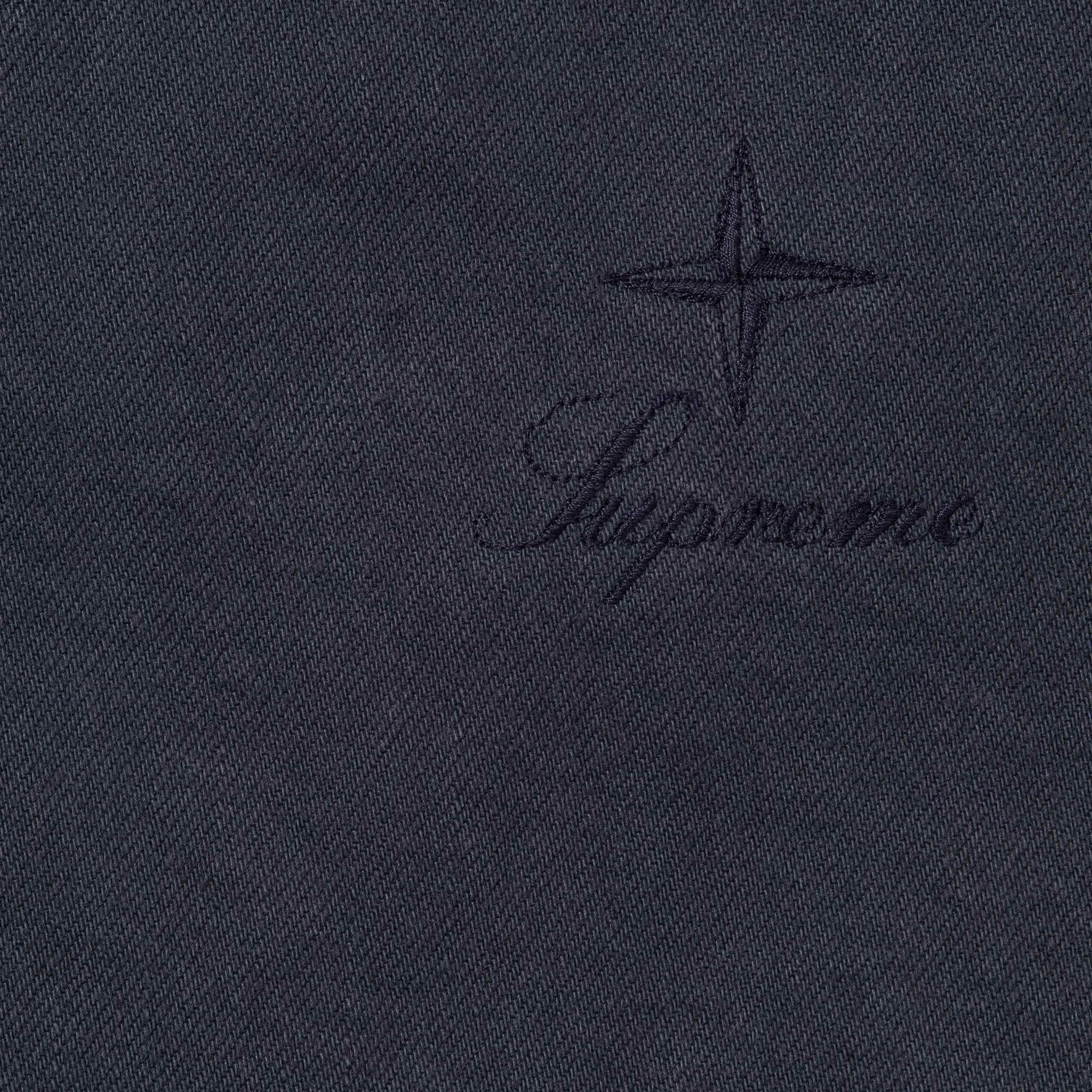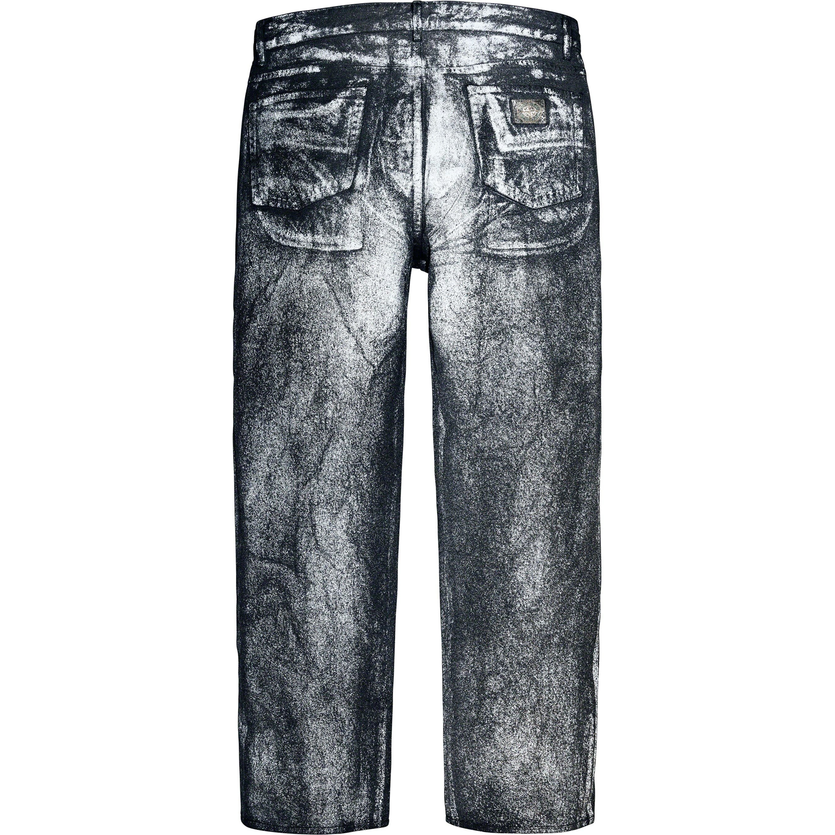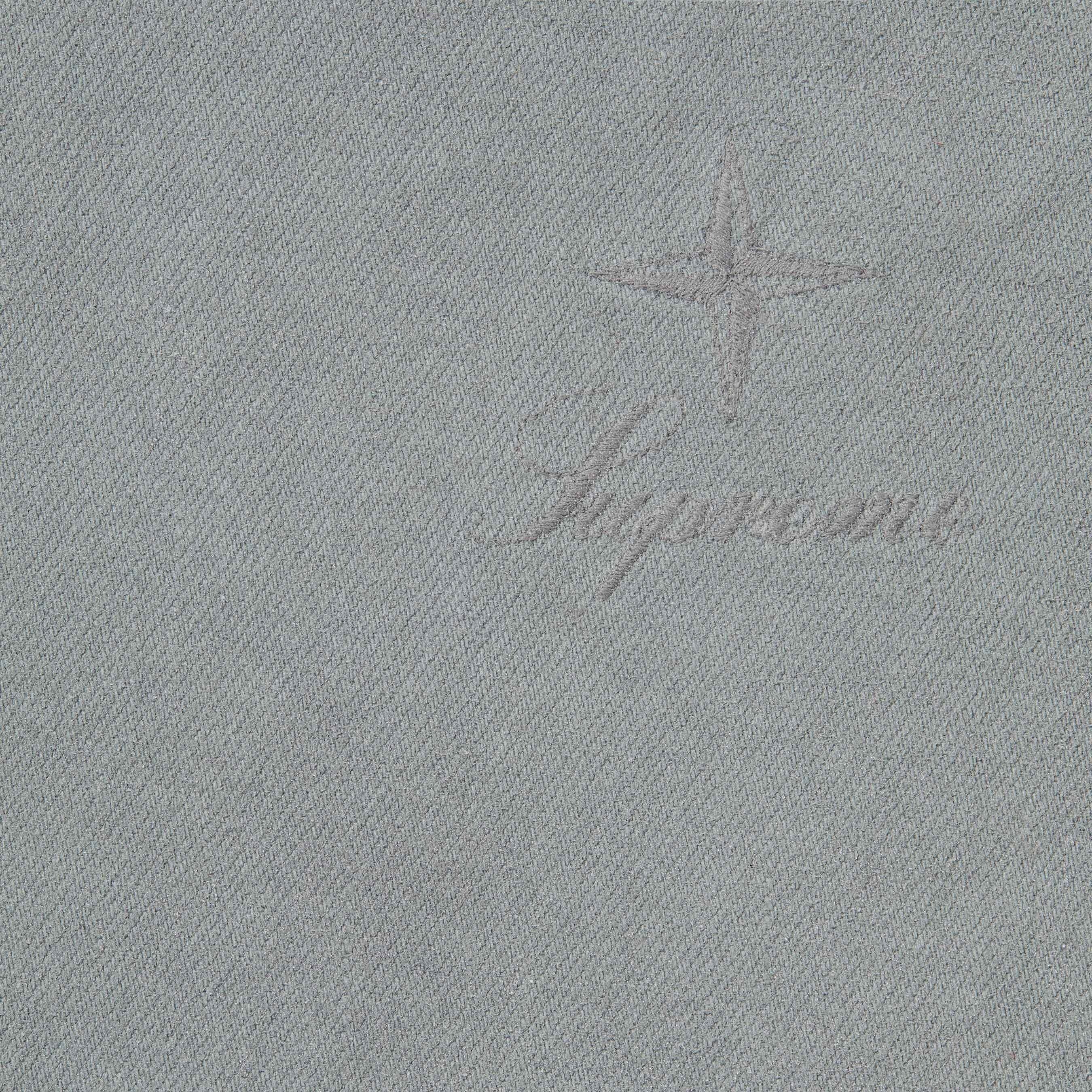 All cotton bull denim with garment dye treatment. Classic 5-pocket style with zip fly, single coin pocket, embroidered logos at thigh and Stone Island® patch on back pocket. Made exclusively for Supreme.