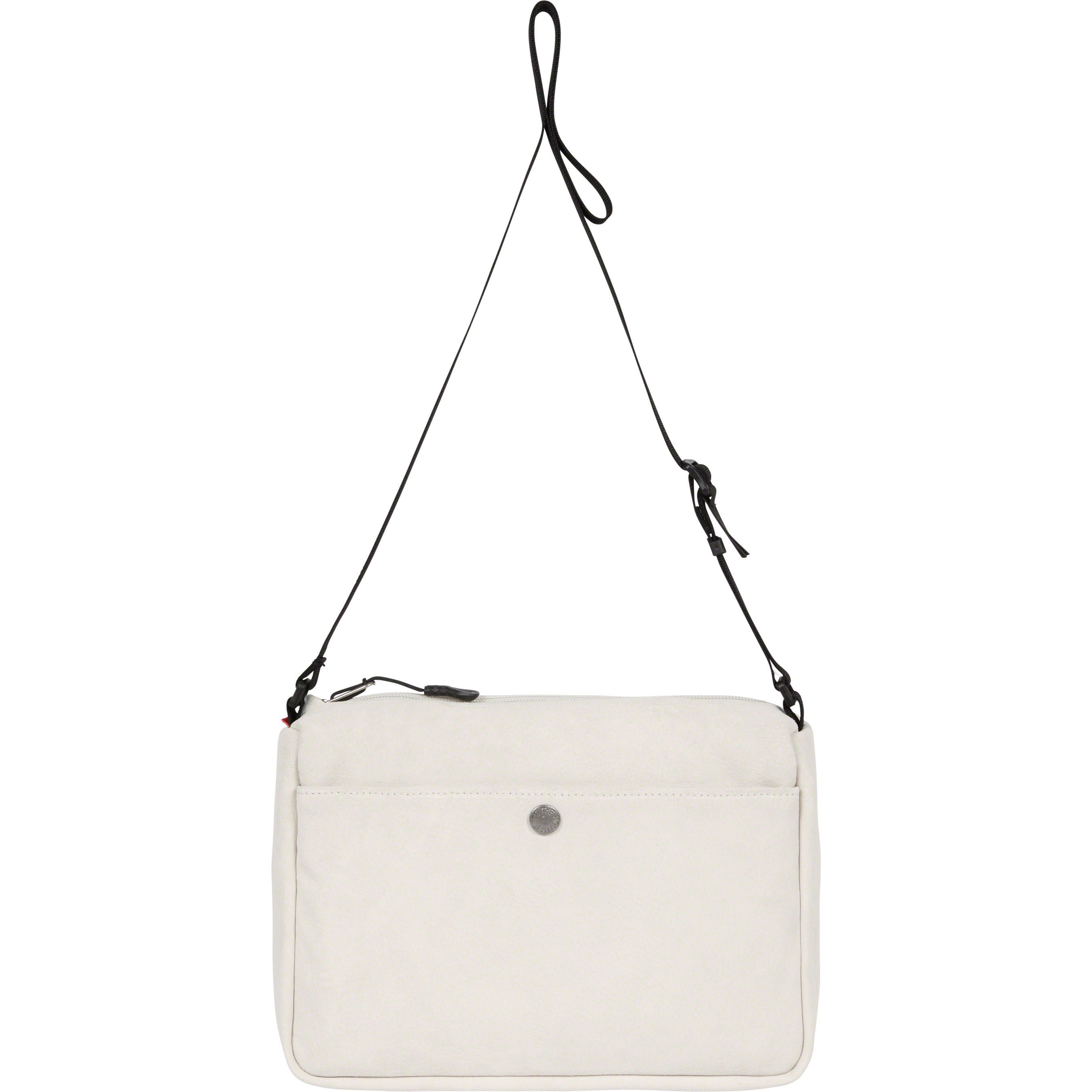 Premium suede with nylon lining. Main zip compartment with interior velcro patch pocket and zip stash pocket. Adjustable shoulder strap. Embossed logos at lower front. 6L. Made exclusively for Supreme.