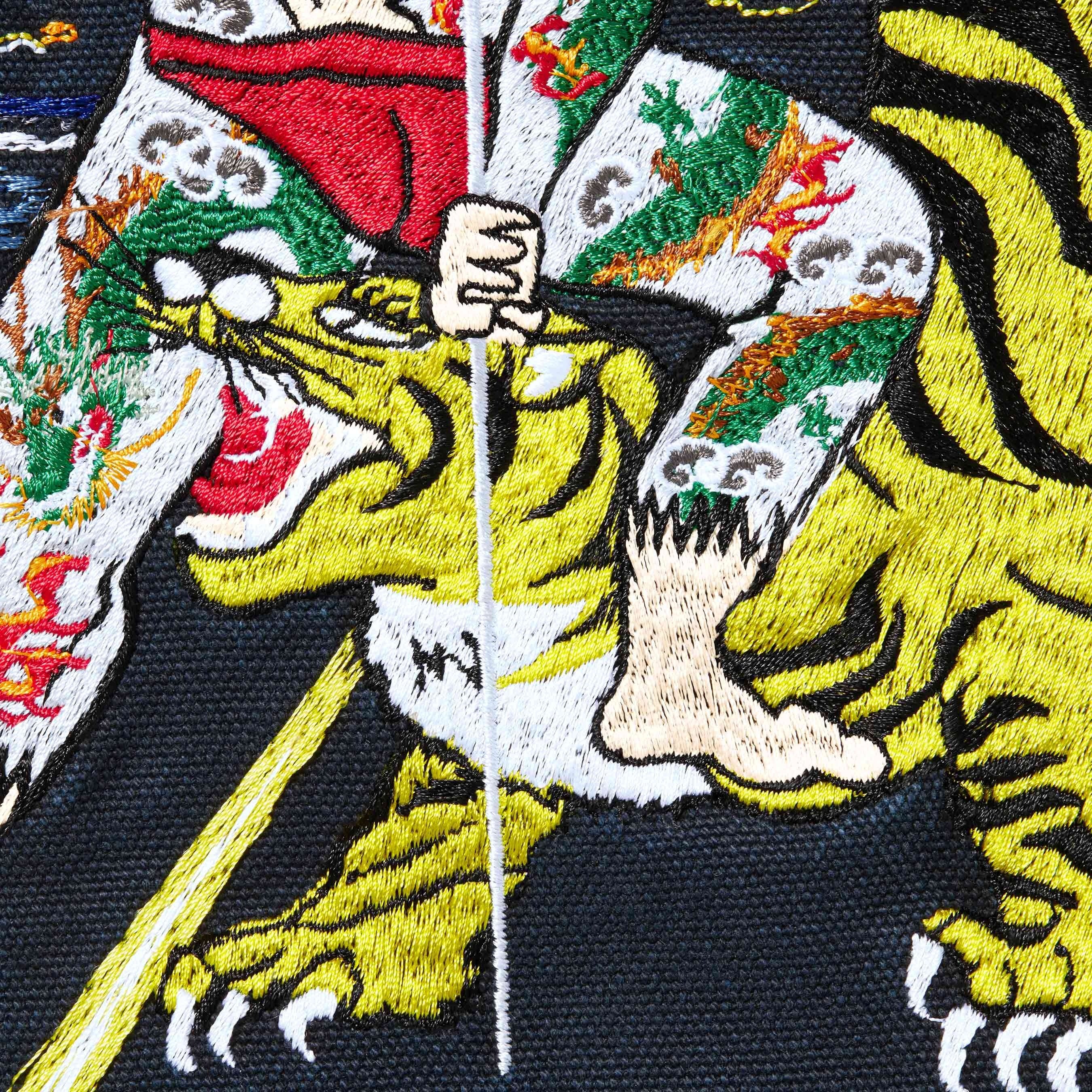 All cotton canvas with 3M® Thinsulate™ insulation and quilted cotton poplin lining. Full zip closure with patch pockets at lower front and interior chest pocket. Knit rib cuffs and hem. Embroidered logos and graphics at chest, shoulders, hood, sleeves and back. Original embroidered artwork by AOI.