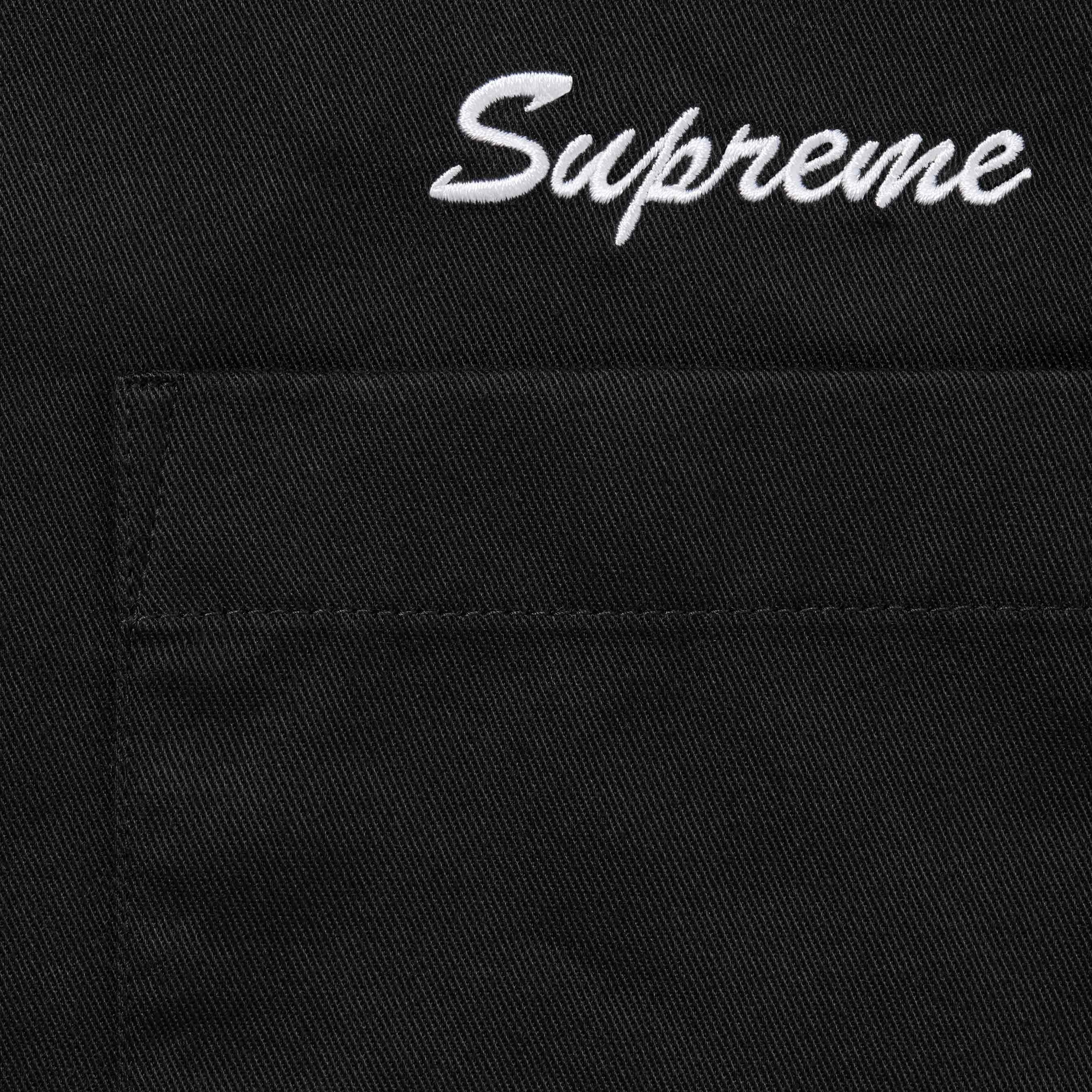 Cotton blend twill with single chest pocket. Embroidered graphic on chest and printed graphic on back. Original artwork by Margaret Keane.