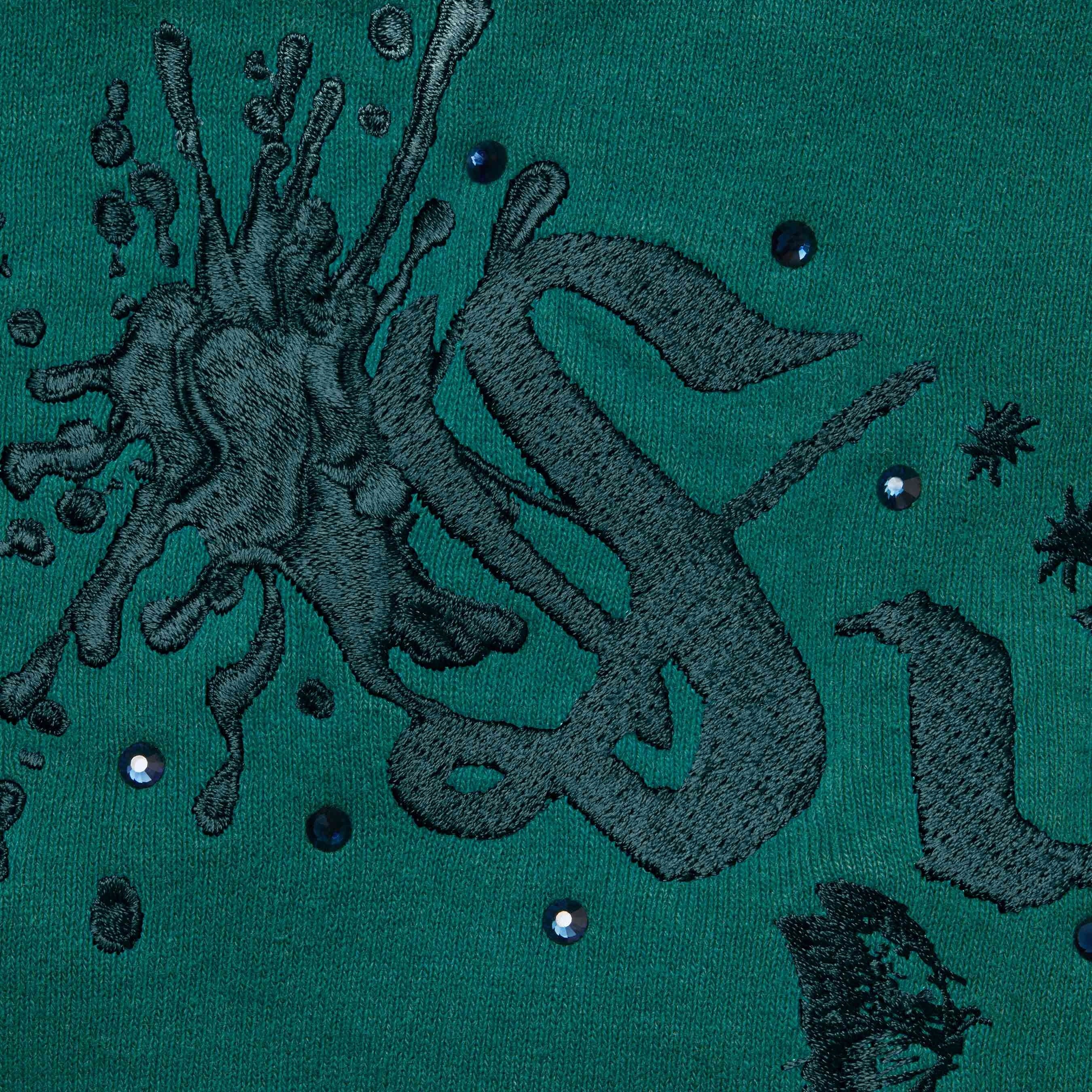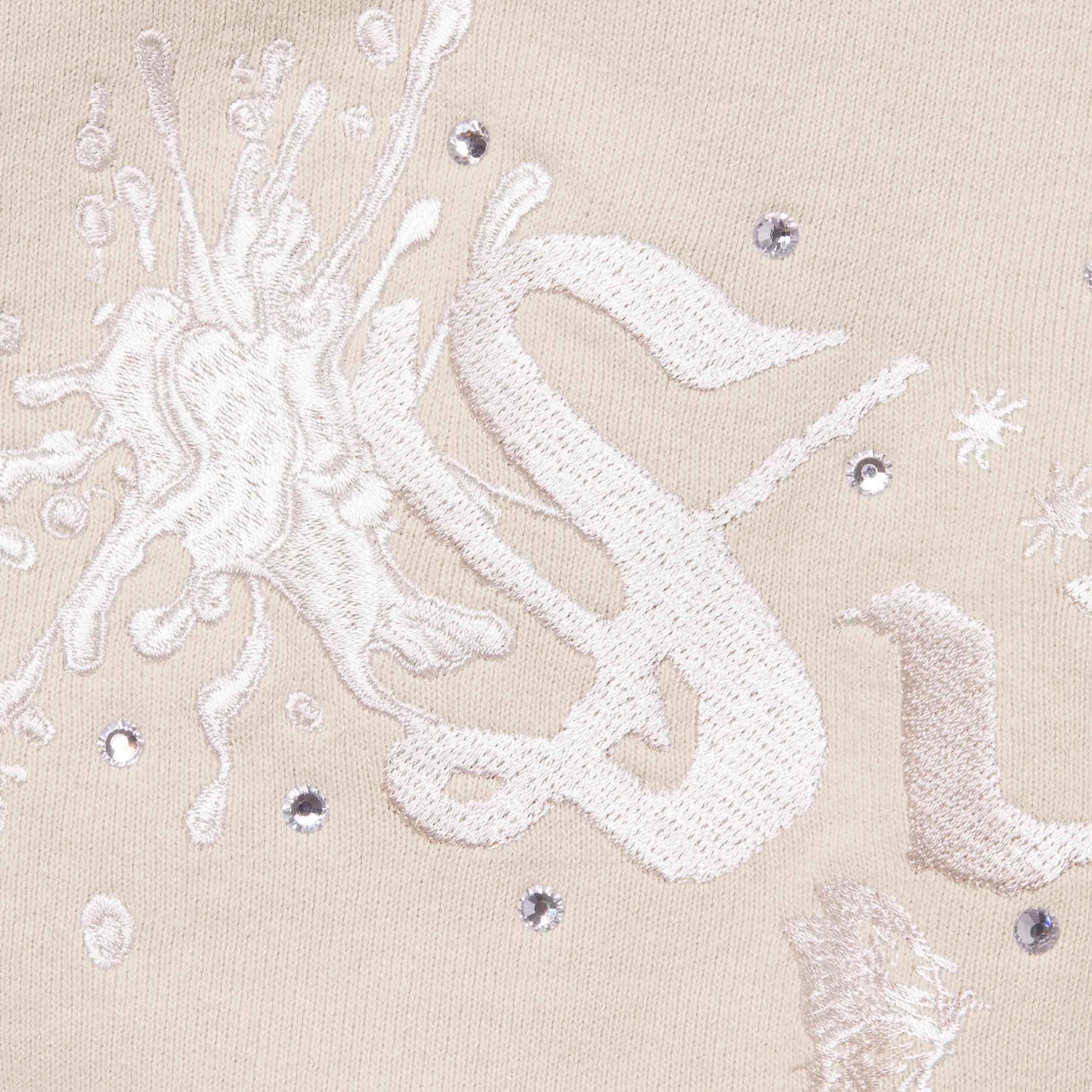 Brushed-back fleece with full zip closure and pouch pocket. Embroidered graphics with rhinestone appliqué on hood and sleeves. Embroidered logo on back hem. Original embroidered artwork by AOI.
