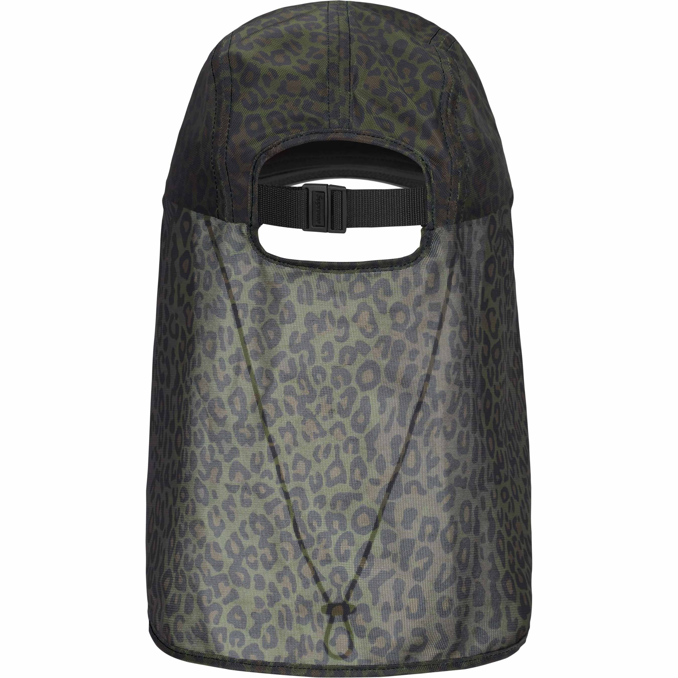 Poly mesh Supreme camp cap with sunshield and removable drawcord closure.