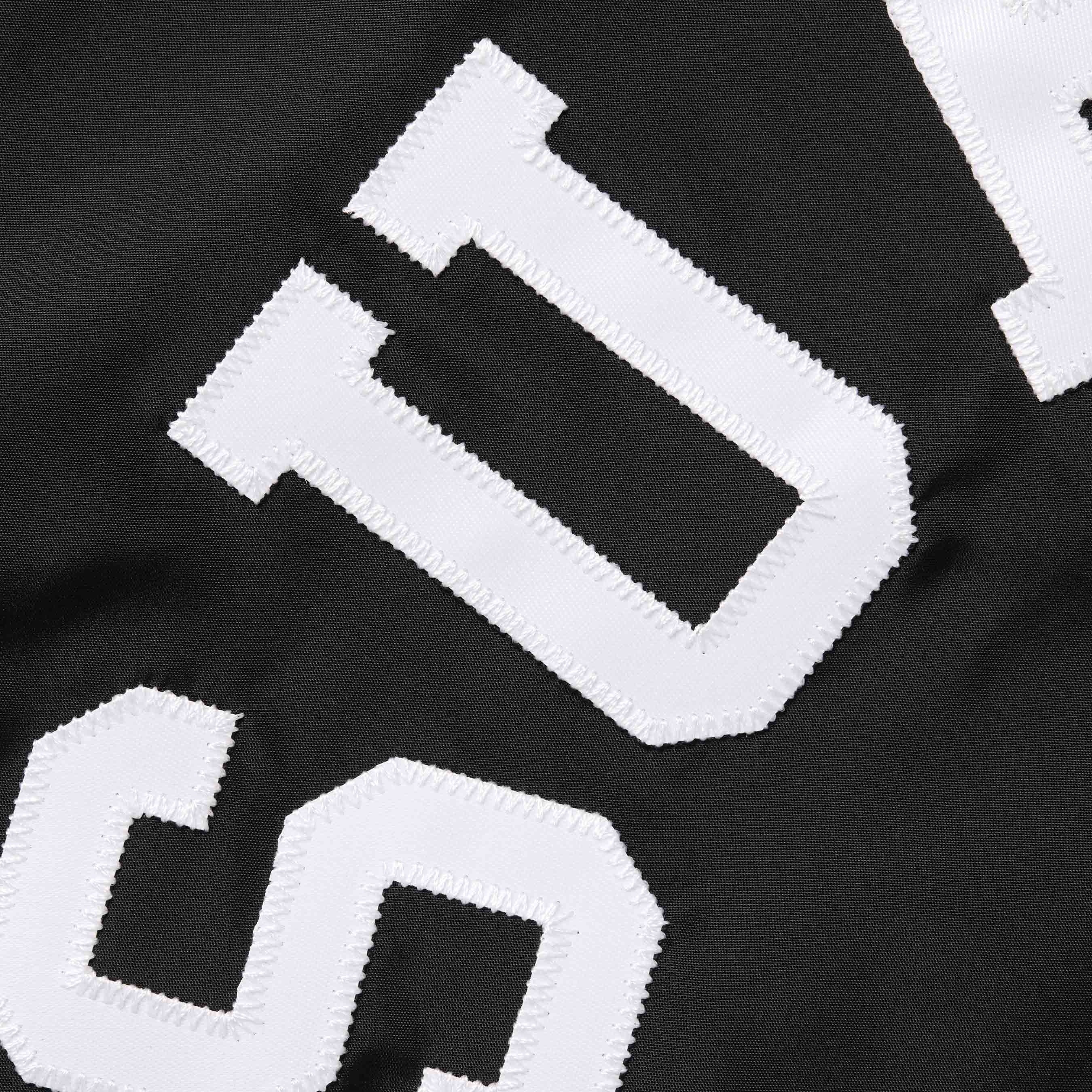 Nylon with cotton jersey lining and taffeta sleeve lining. Snap front closure with welt hand pockets at lower front and interior chest pocket. Interior drawcord at hem and snap closure at cuffs. Embroidered patch on cuff and tackle twill logo appliqué at back. Made exclusively for Supreme.