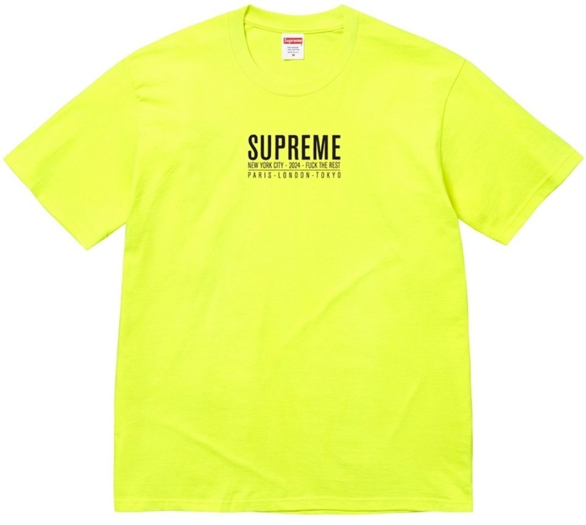 All cotton classic Supreme t-shirt with printed logo on front.