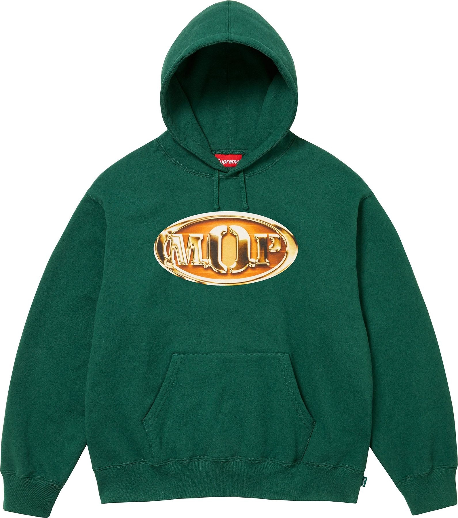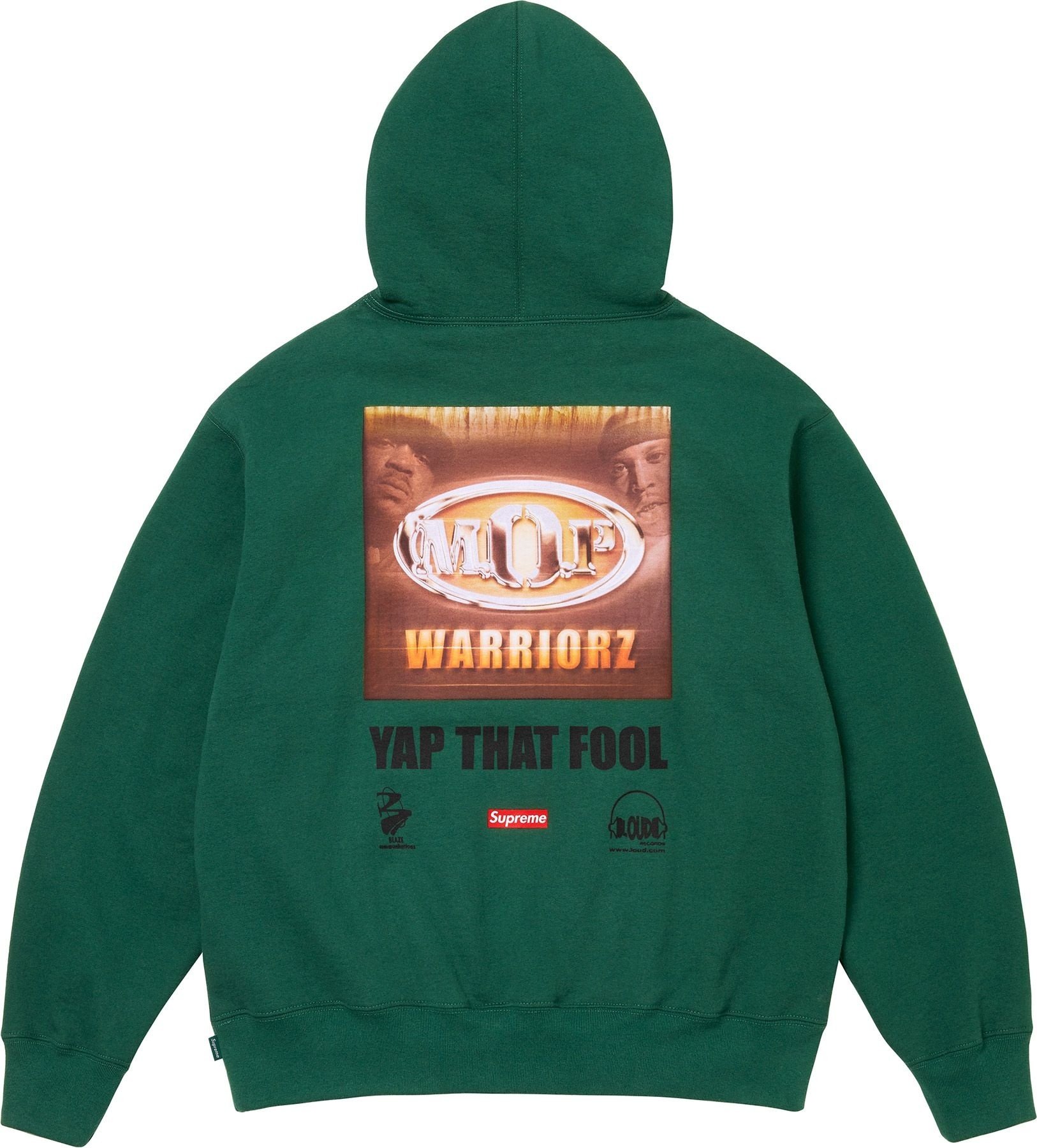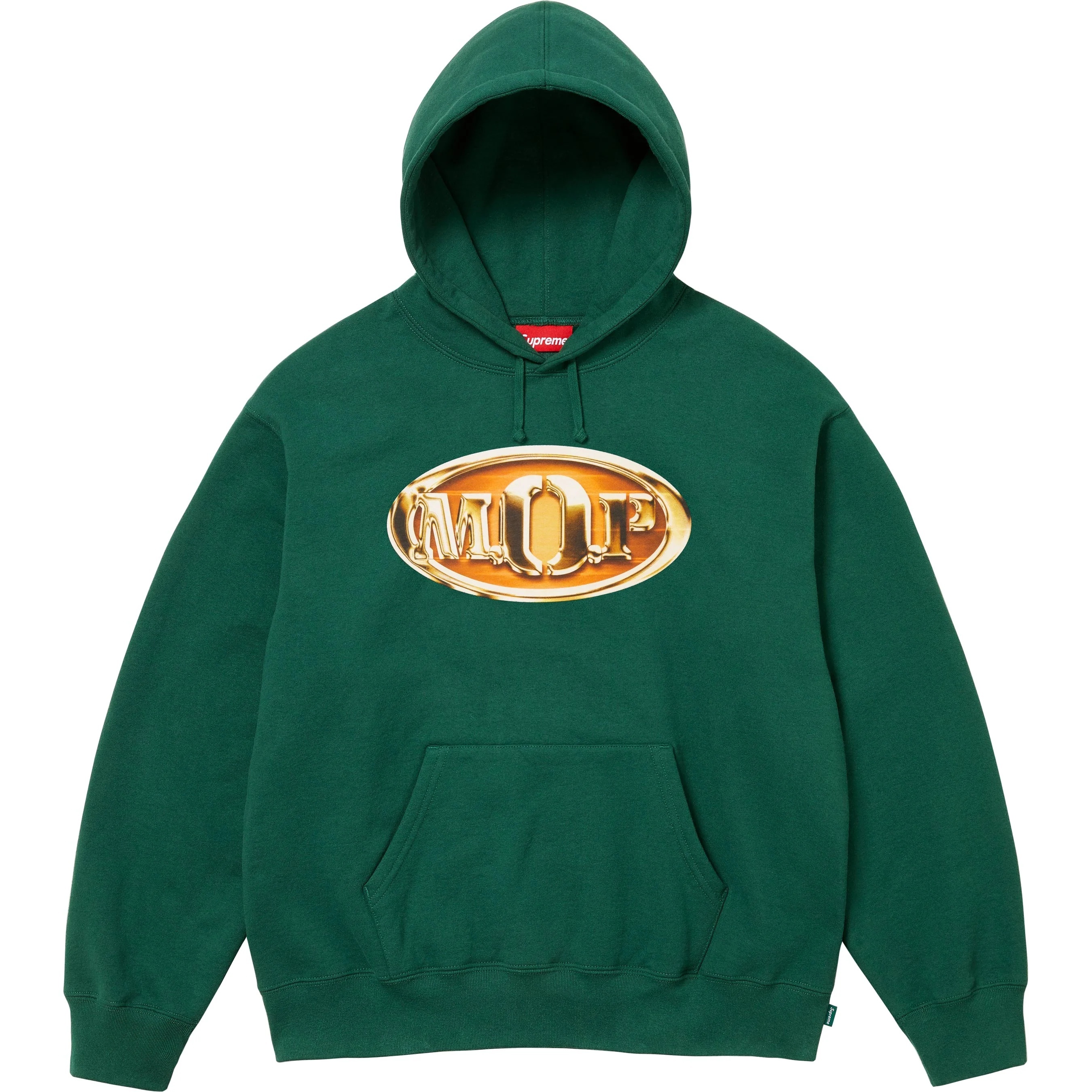 Heavyweight crossgrain brushed-back fleece with pouch pocket. Printed graphic on chest and back.