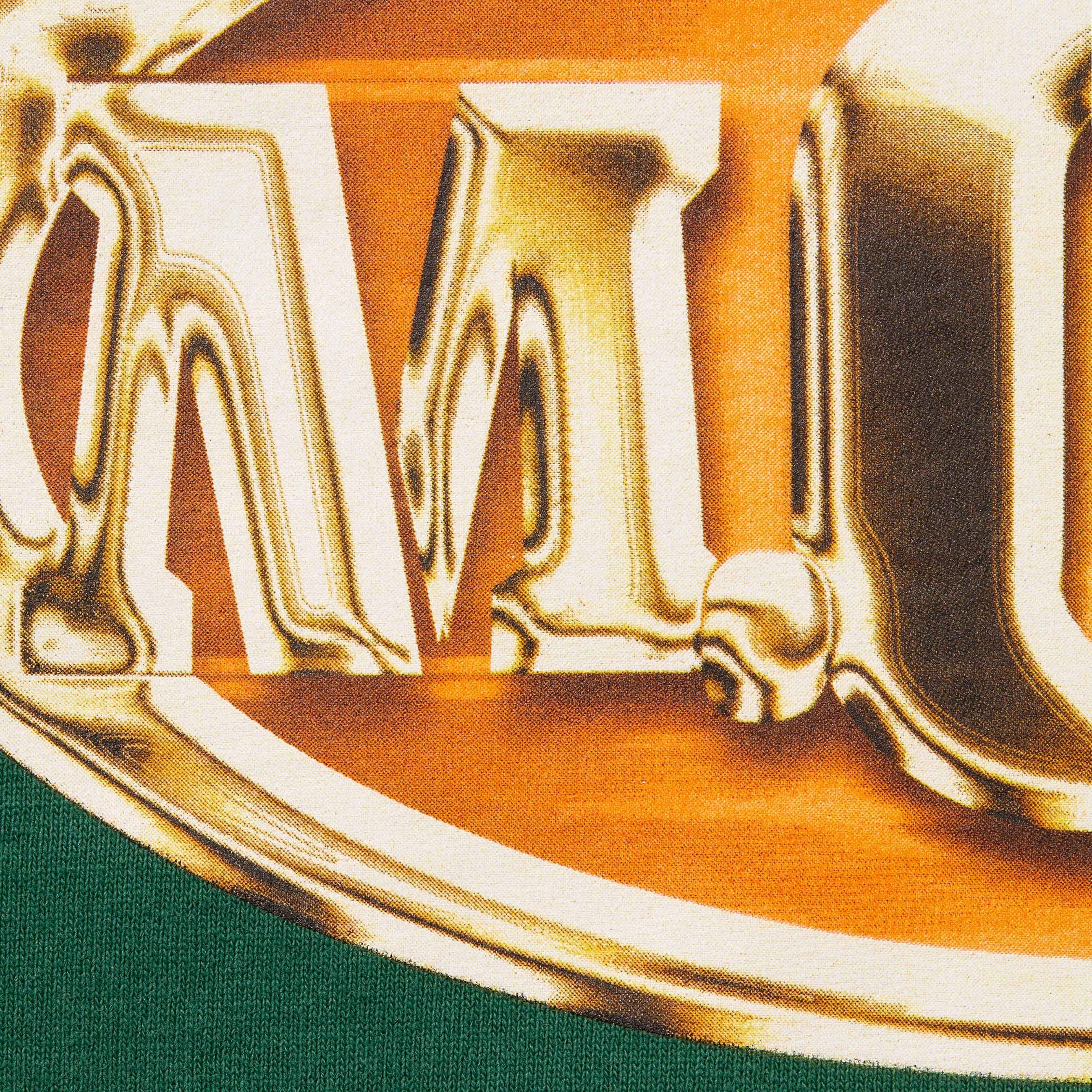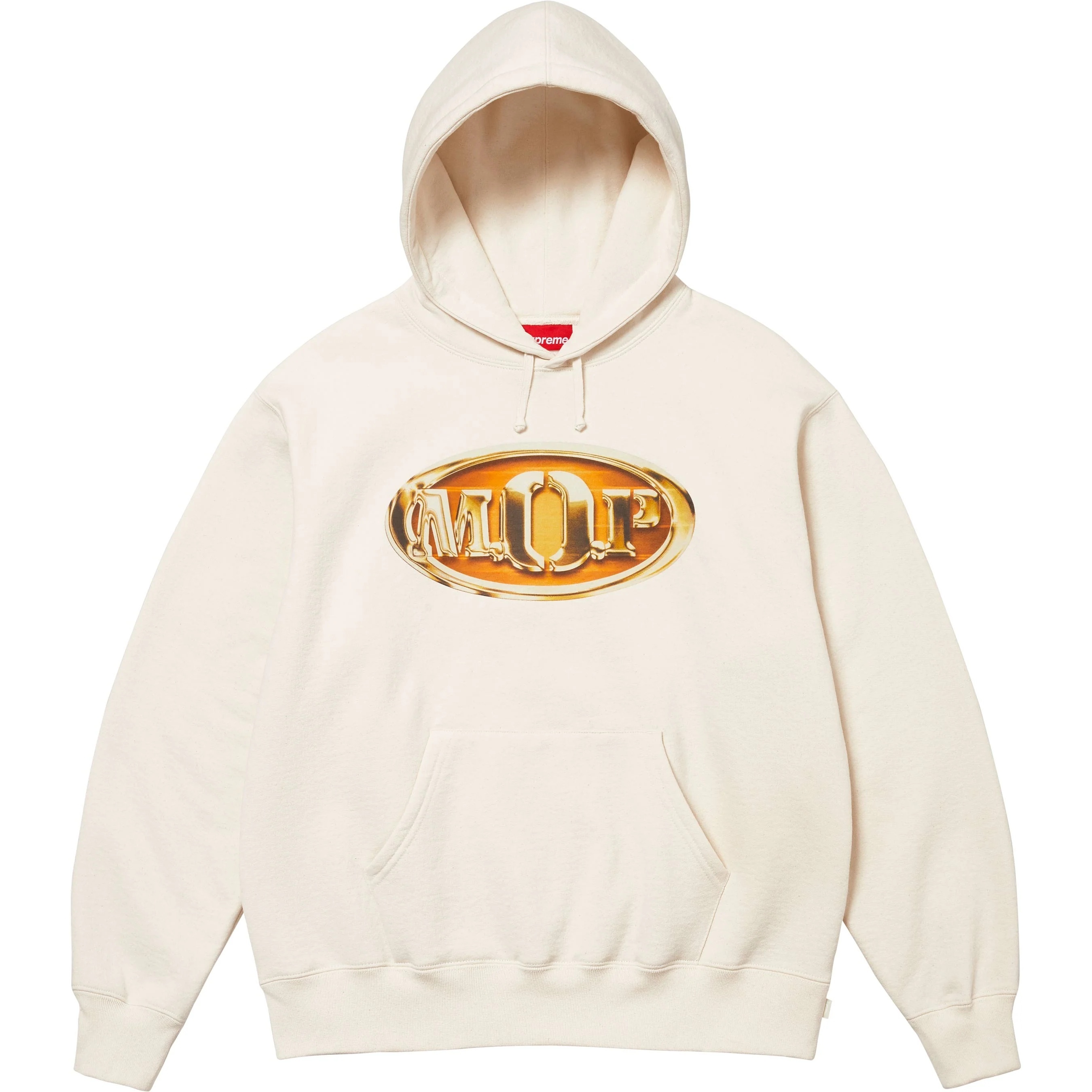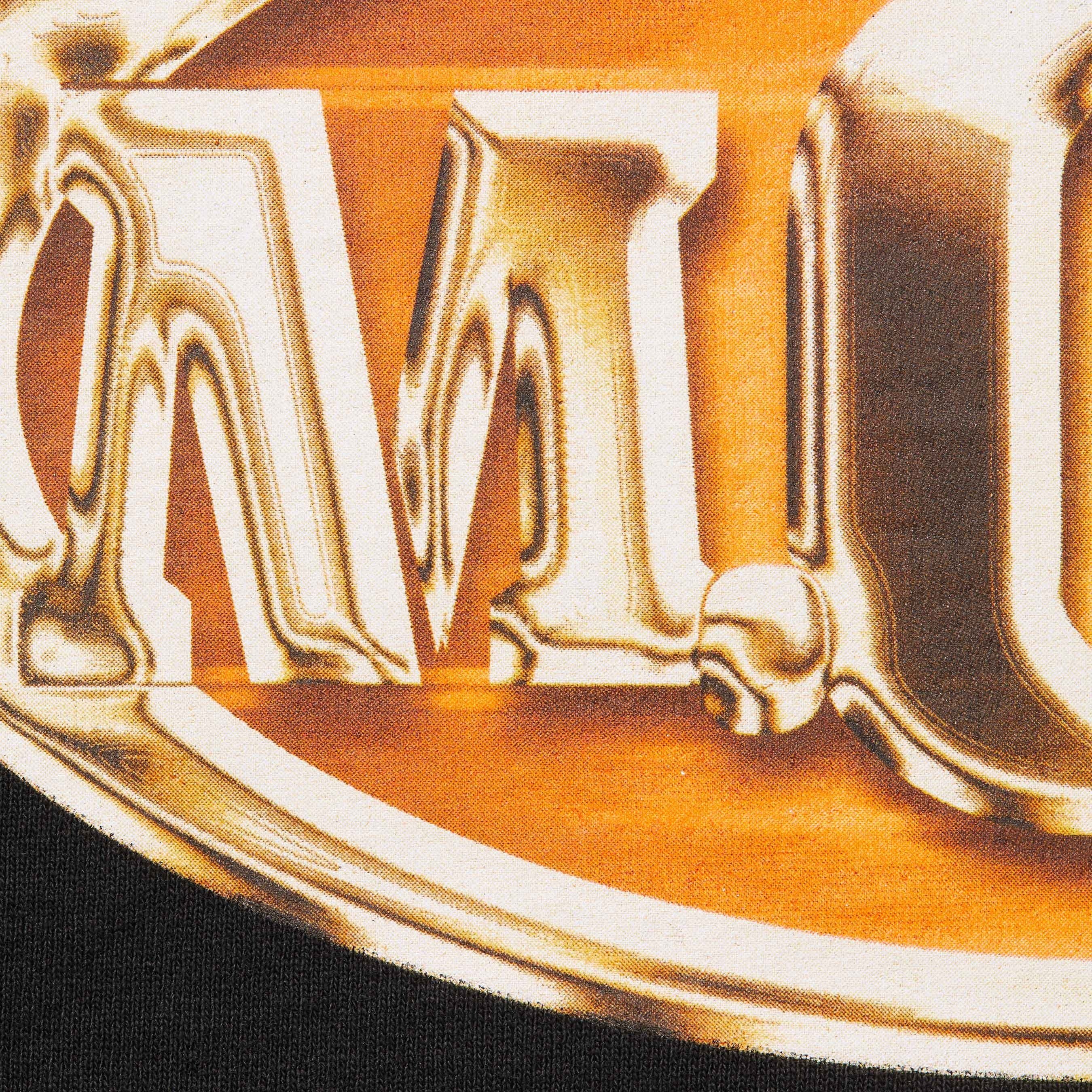 Heavyweight crossgrain brushed-back fleece with pouch pocket. Printed graphic on chest and back.