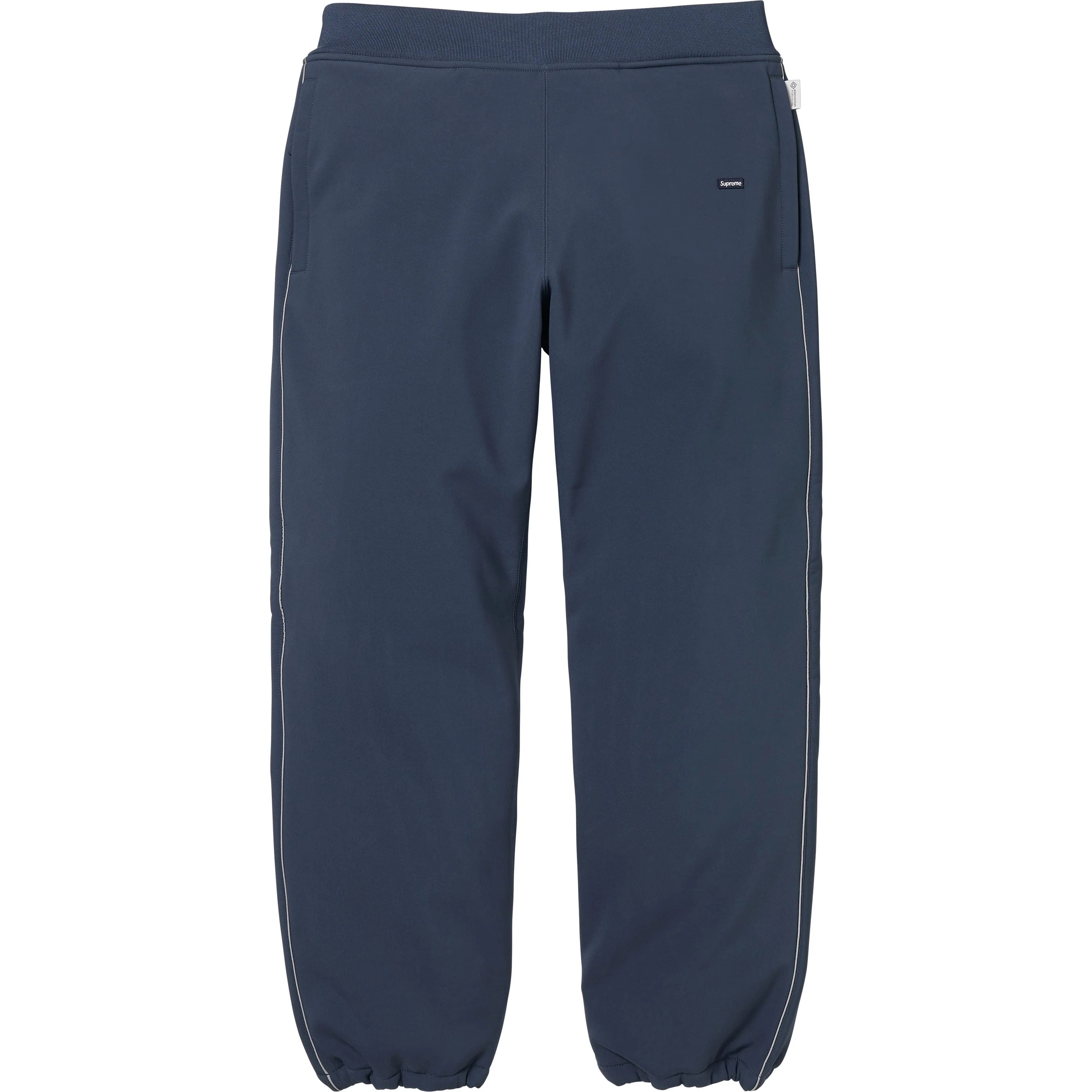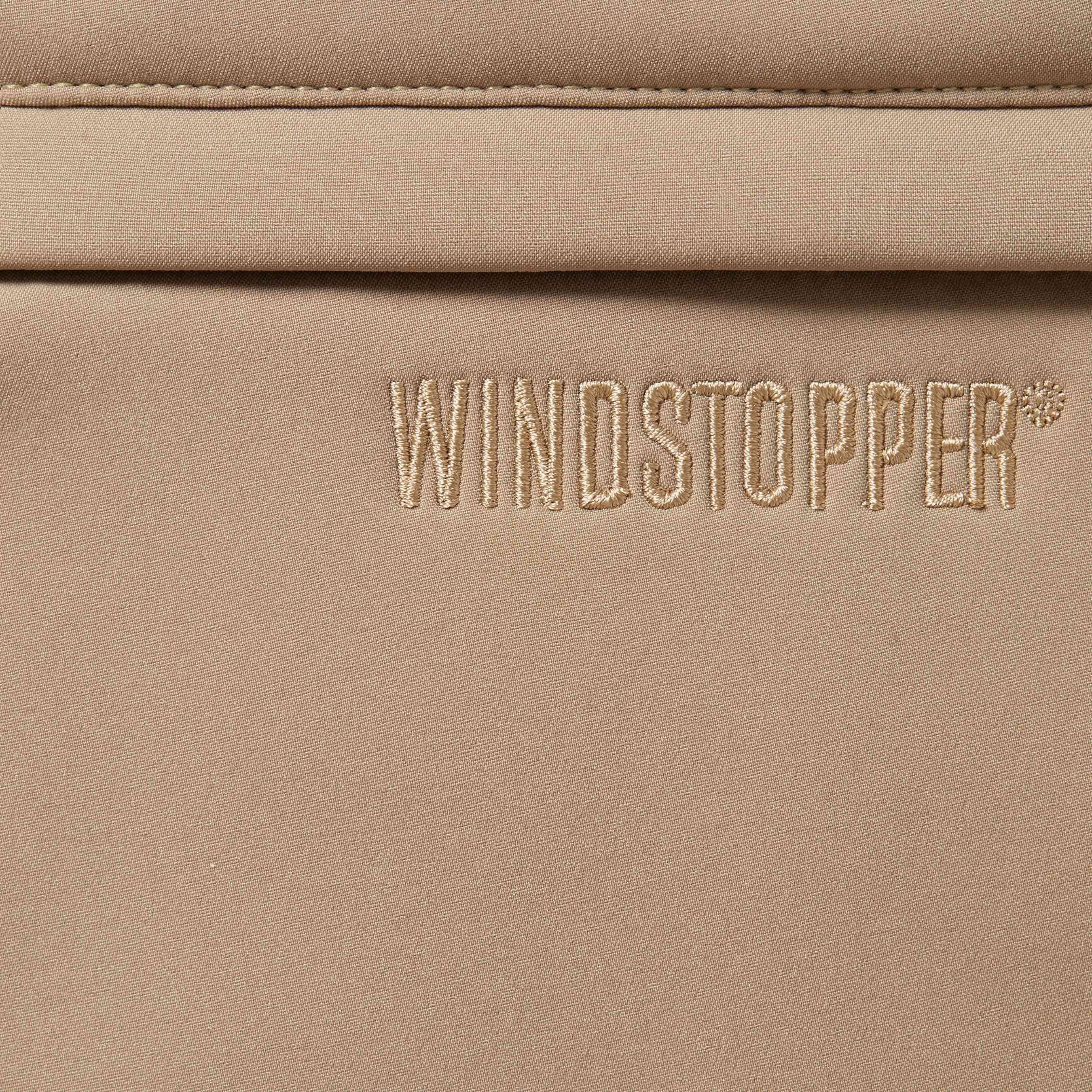 Water resistant GORE® WINDSTOPPER® poly shell with fleece bonded backing. On seam zip hand pockets and single back zip pocket. Knit rib waistband with interior drawcord and interior elastic shockcord at cuffs. 3M® Reflective piping at sides. Embroidered logo patch at thigh and embroidered logo on back pocket.