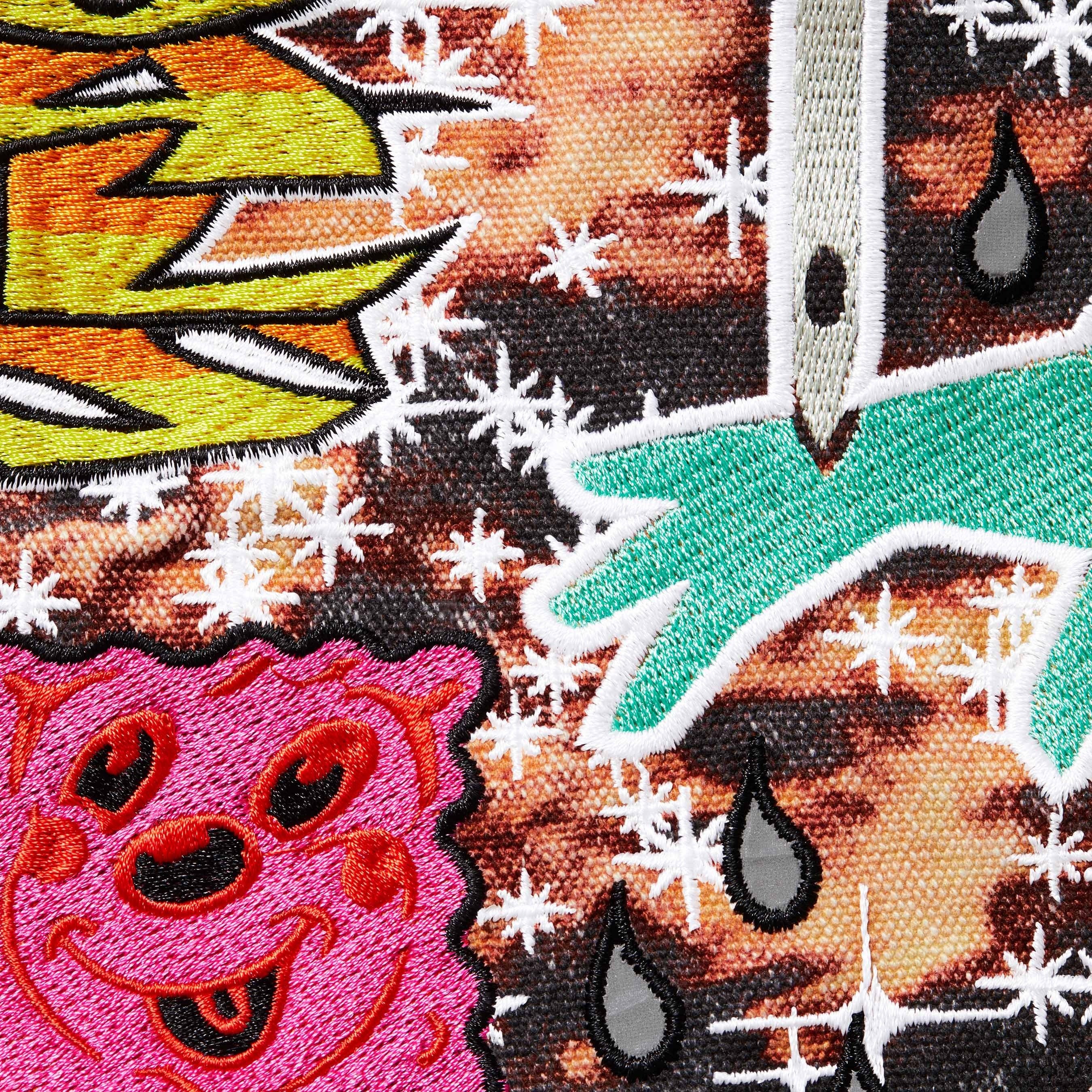 All cotton canvas with 3M® Thinsulate™ insulation and quilted cotton poplin lining. Full zip closure with pouch pocket at lower front and interior chest pocket. Knit rib cuffs and hem. Embroidered graphics and 3M® Reflective appliqué throughout back. Original embroidered artwork by AOI.