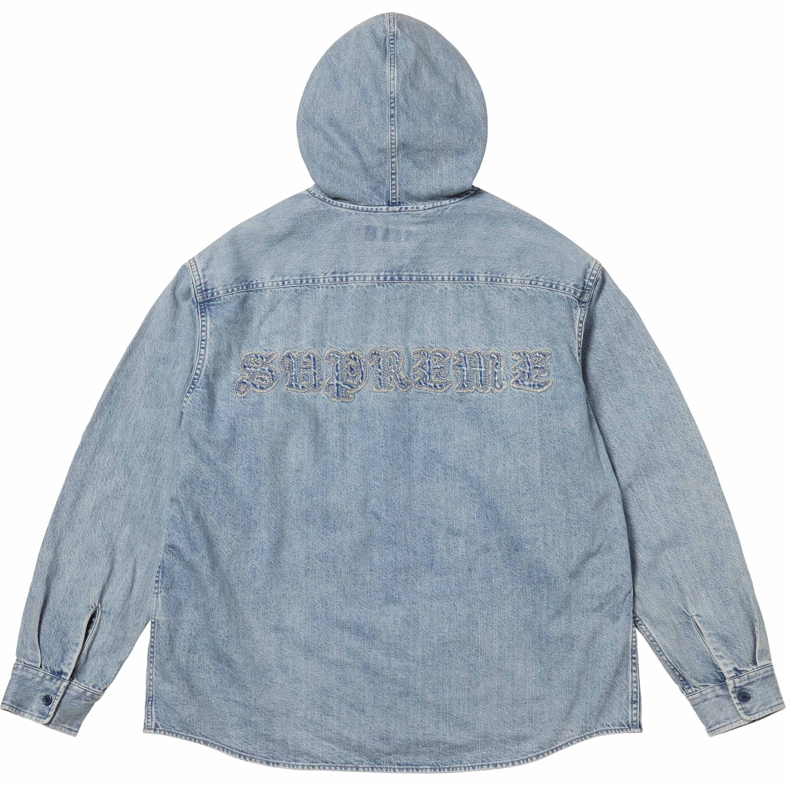 All cotton denim with utility pockets at chest. Embroidered logo on pocket and logo appliqué at back.