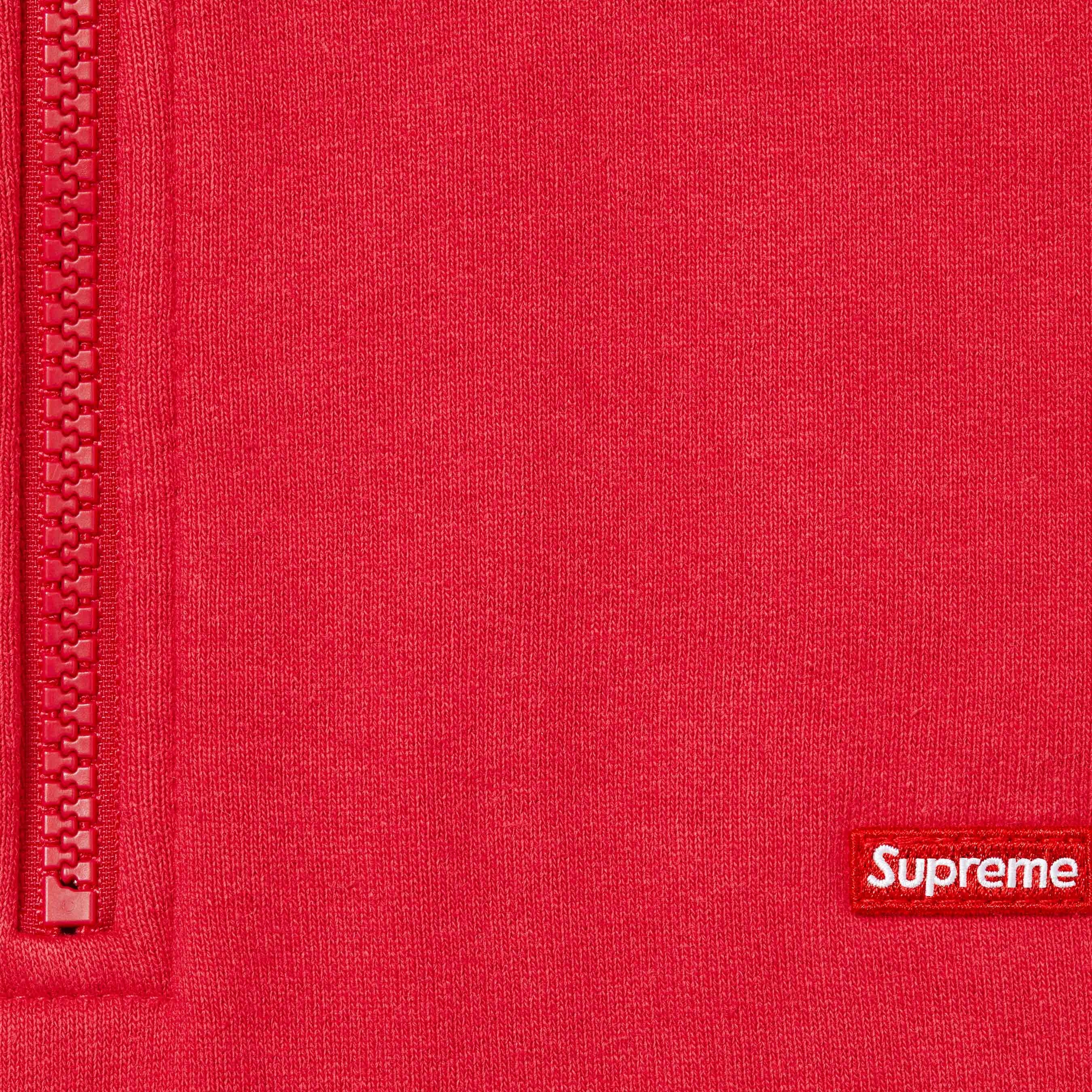Brushed-back fleece with half zip closure and on seam hand pockets at lower front. Embroidered logo patch on chest.