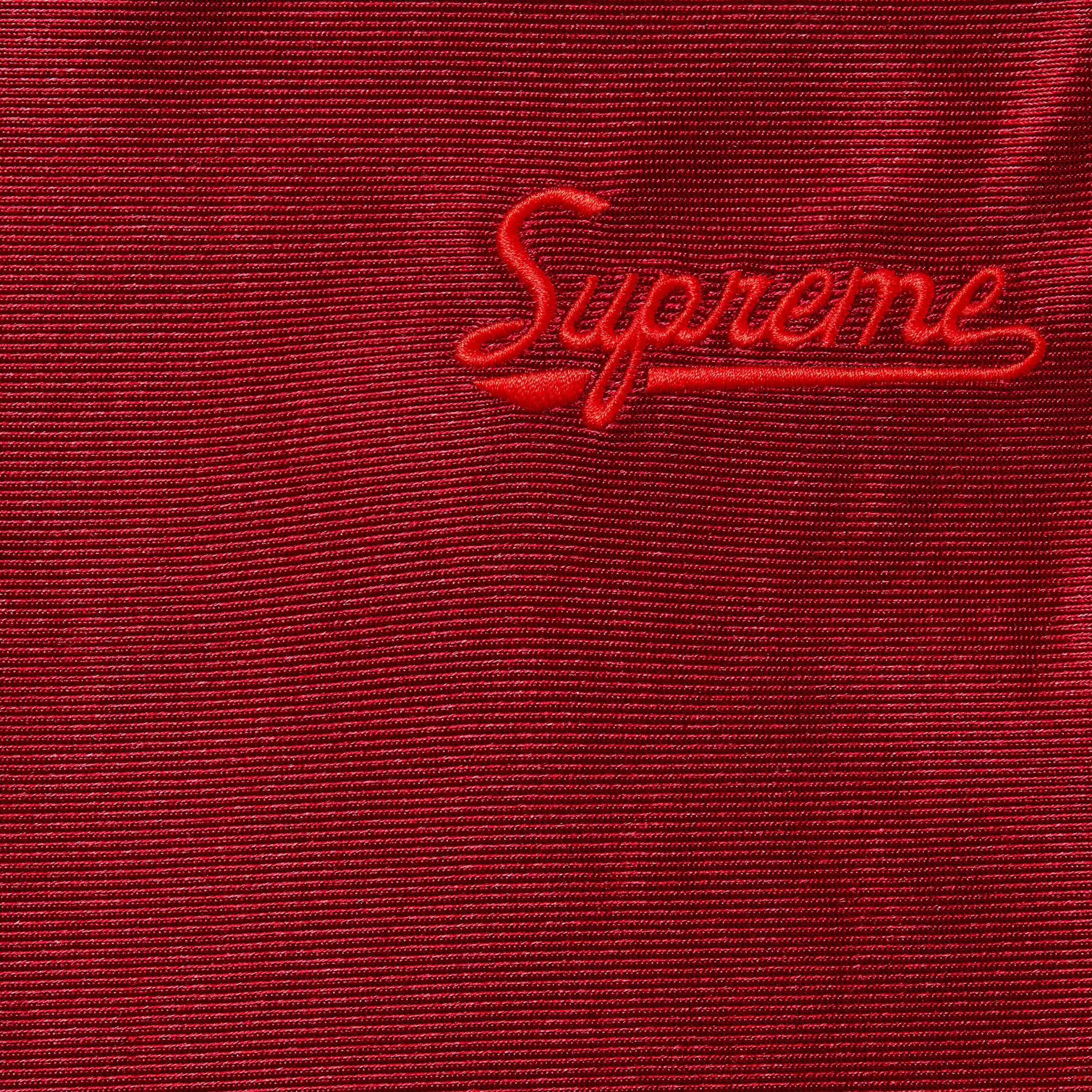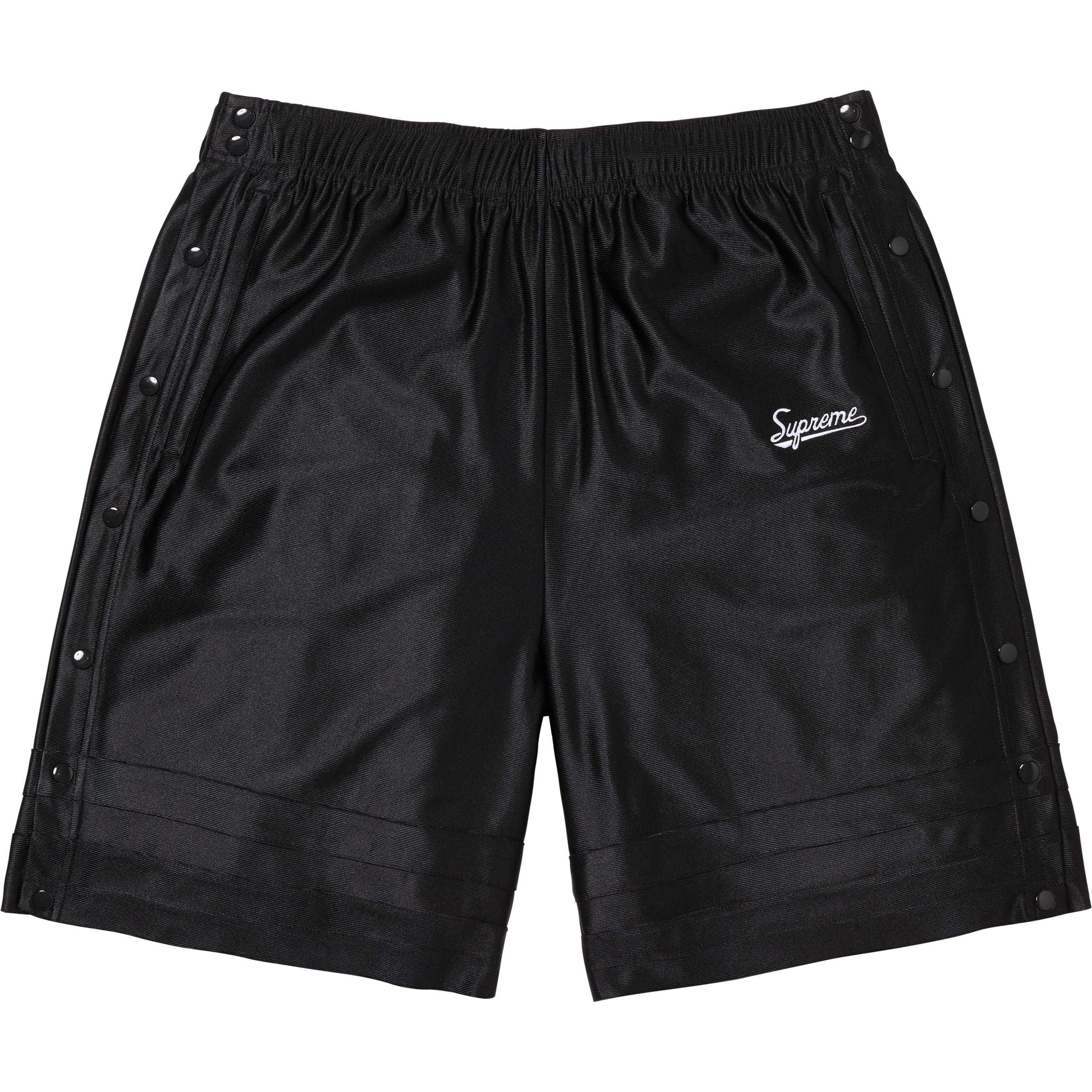 Poly dazzle with full-leg side snap opening. Welt zip hand pockets and single back zip pocket. Elastic waistband with interior drawcord. Embroidered logo at thigh.