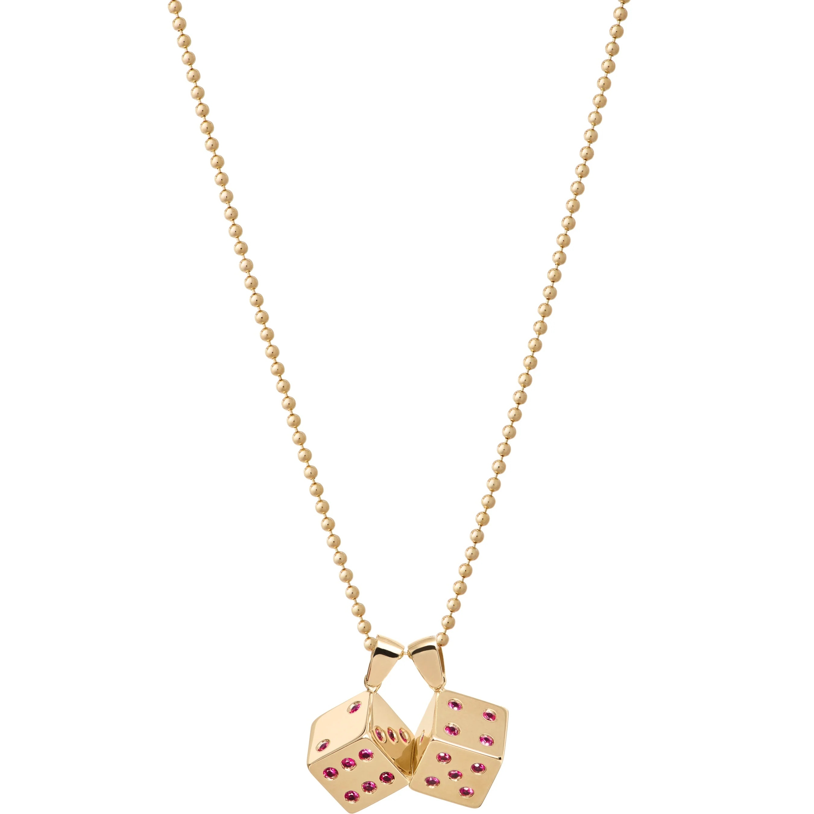 14K gold pendants with inset rubies. 22" 14K gold ball chain with 0.21" pendants. Engraved logos at side. Made exclusively for Supreme.