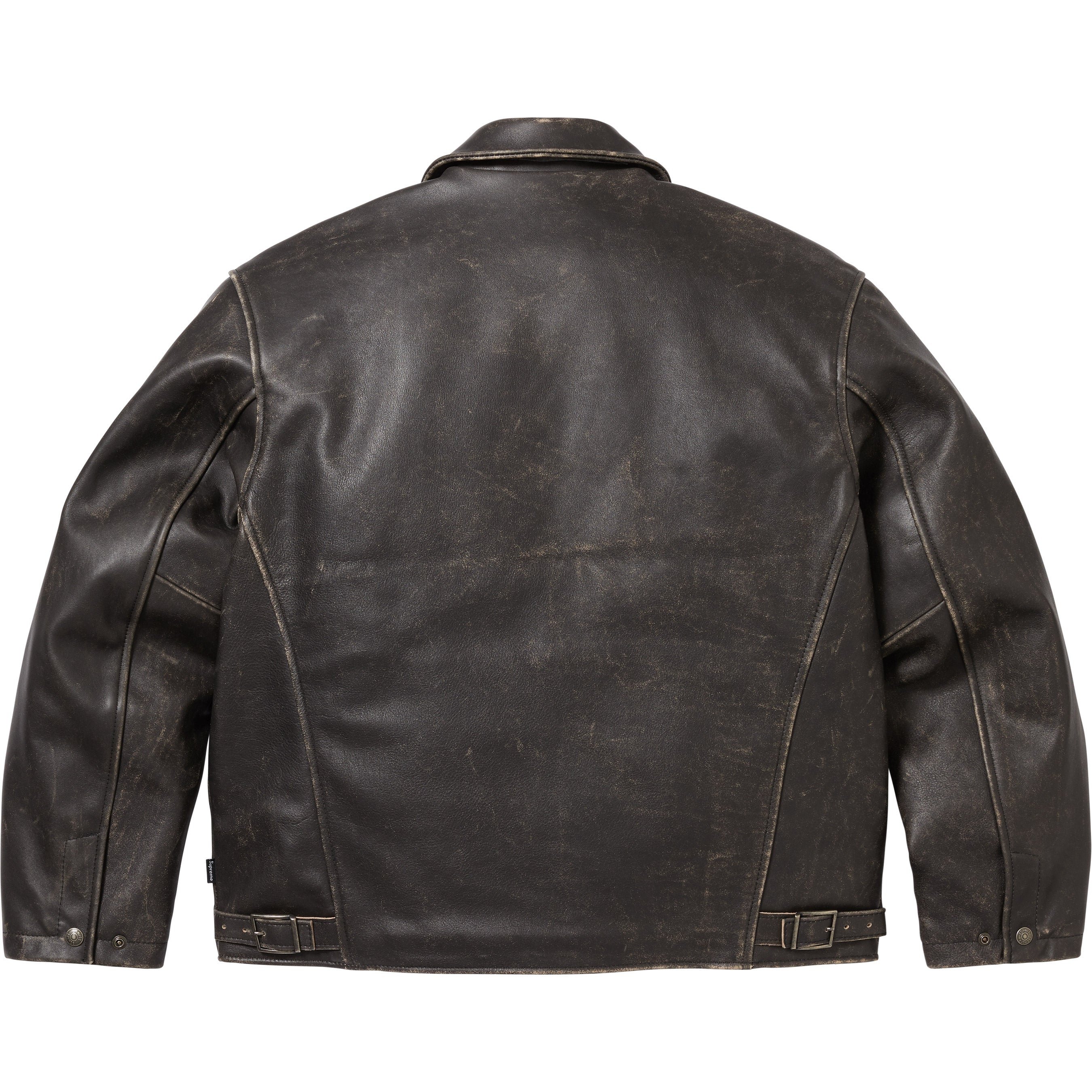 Cowhide leather with quilted nylon lining. Full zip closure with double welt hand pockets at lower front and interior chest pockets. Size adjusters at waist and snap closures at cuffs. Woven logo taping at interior and debossed logo at chest. Made in the USA exclusively for Supreme.