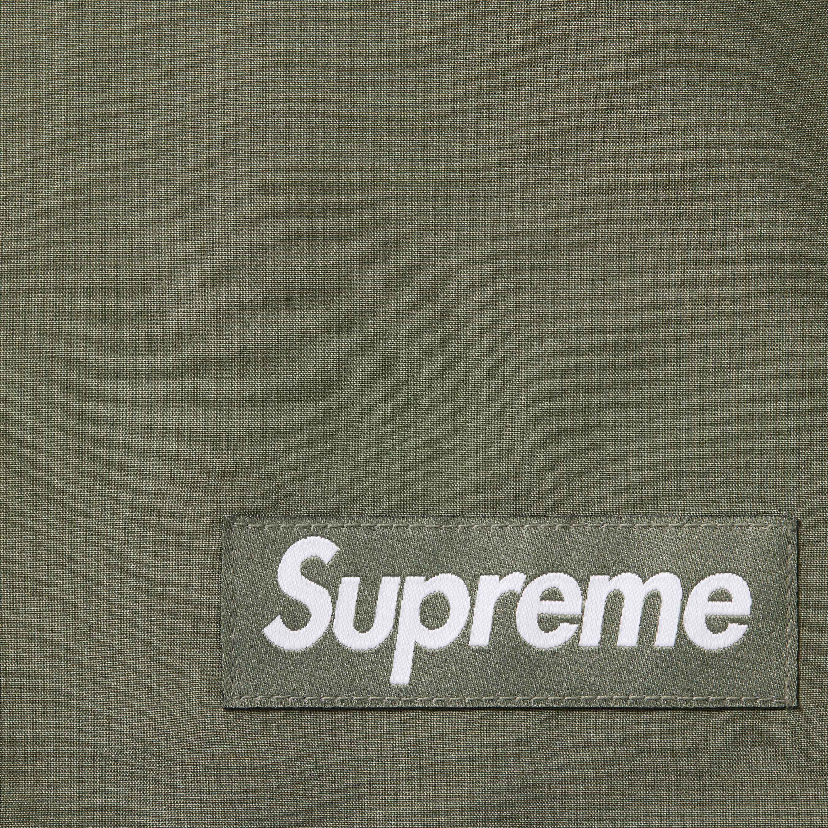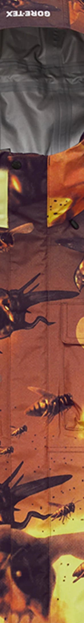 Waterproof, breathable GORE-TEX 3-Layer poly shell with taped seams and tricot backing. Full zip closure with hidden velcro placket. Welt zip hand pockets at lower front with velcro flap patch pockets at chest and interior zip pocket. Interior elastic shockcord at fixed hood and hem with velcro tab adjusters at elastic cuffs. Woven logo label at lower front and back neck tab. Embroidered logos on hood and cuff. Laser cut logo at hood.