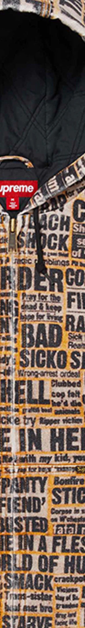 All cotton canvas with printed graphic. 3M® Thinsulate™ insulation, quilted cotton poplin lining and quilted taffeta sleeve lining. Full zip closure with pouch pocket at lower front and interior chest pocket. Knit rib cuffs and hem. Original artwork by Dash Snow.