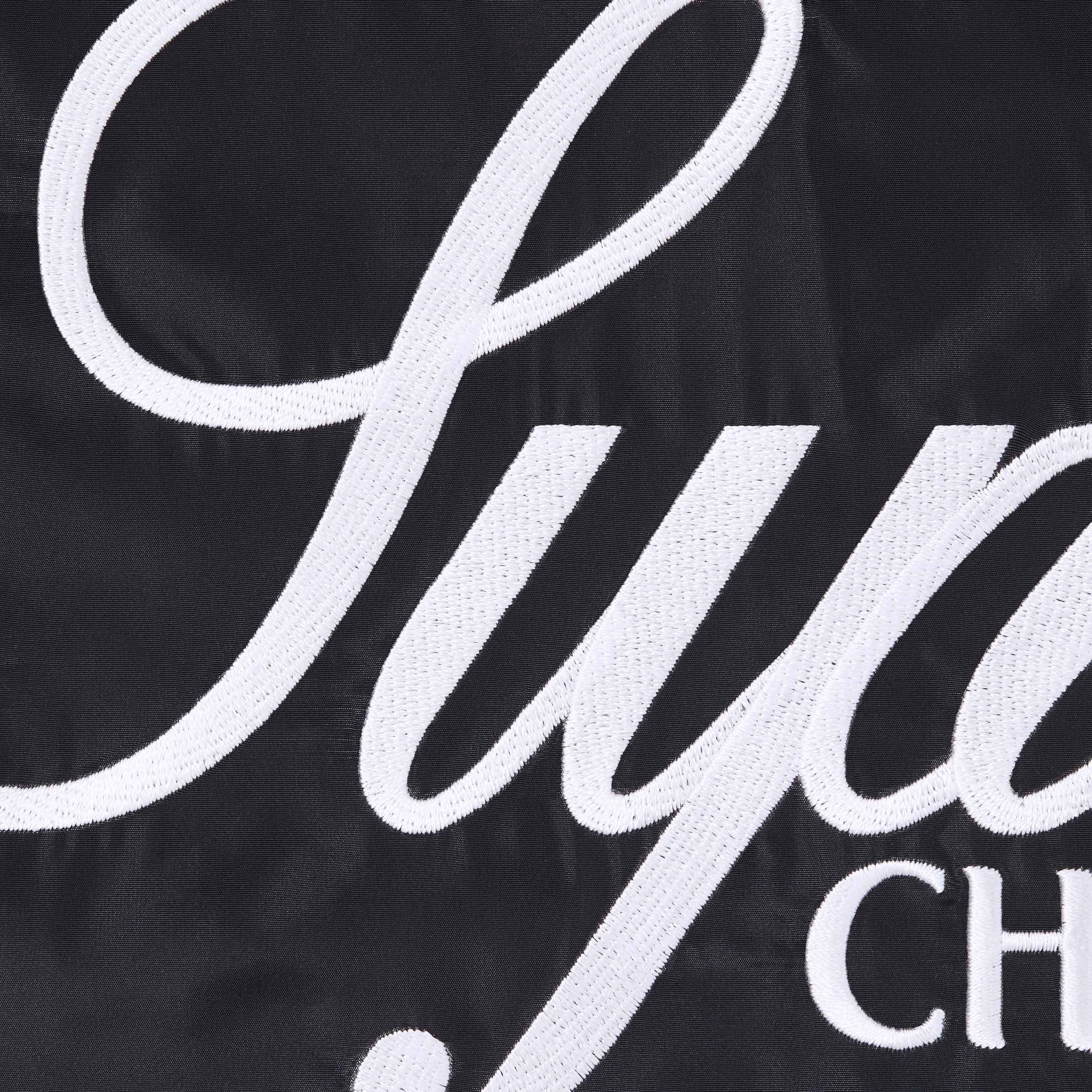 Water resistant poly with mesh lining and taffeta sleeve lining. Full zip closure with welt zip hand pockets at lower front and interior chest pocket. Interior elastic shockcord at hem with elastic cuffs. Embroidered logos on chest and back neck. Woven patch on chest.